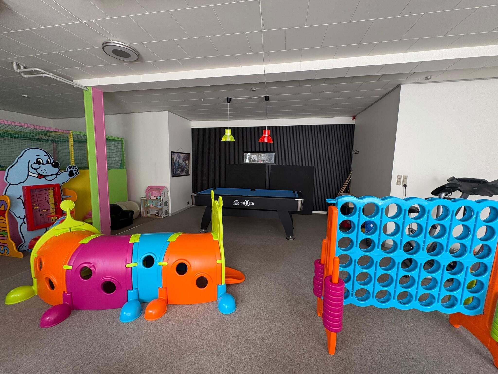 Her er huset som har alt til den store familie med børn! Huset er over 400kvm og indeholder 3 badeværelser, 6 soveværelser med dobbeltsenge, mulighed for opredning til 2 ekstra på madras (desuden en weekseng og en højstol) - en stor fælles stue og spiseområde samt 2 køkkener begge med opvaskemaskine og et kæmpe aktivitetsrum med pool bord, bordtennis, air hockey, infrarød sauna, fodboldbord, boldebassin og meget mere. Udendørs finder man en stor privat have på hele 3500kvm også med forskellige aktiviteter for både børn og voksne samt en havestue. Der er fri badeland og bowling/tennis m.m. tilknyttet dette hus som der kan læses mere om på www.svøem-leg.dk alt TV er streaming (smart tv).