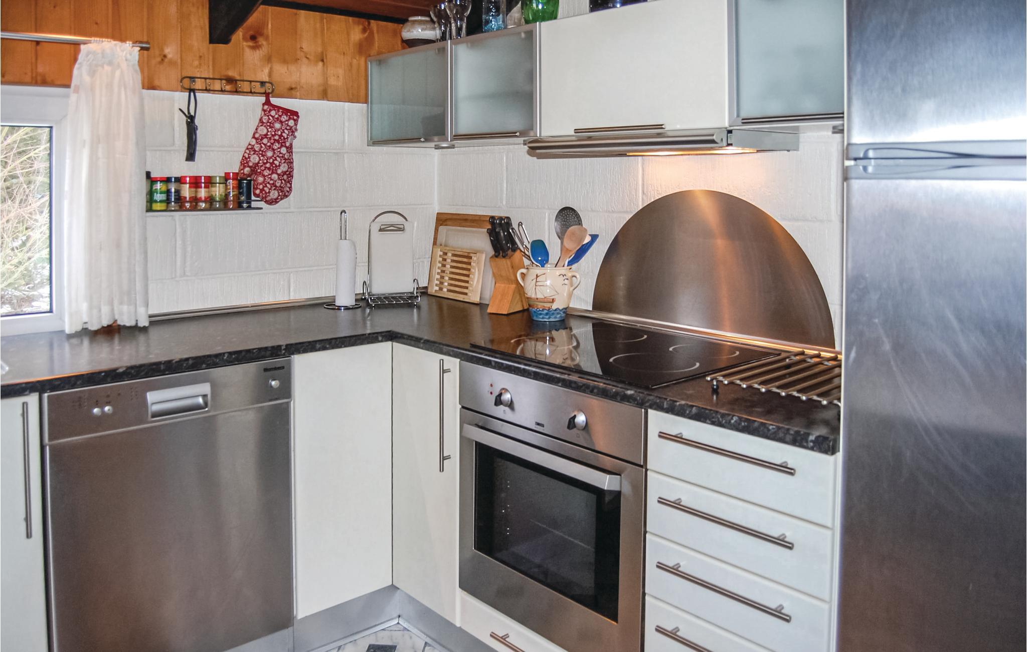 Glæd jer til hyggelige stunder foran brændeovnen, masser af fred og ro læsning på den behagelige sofa eller selskabelige spilleaftener med familien i dette hyggelige feriehus. Tilbered jeres livretter sammen i det moderne køkken og planlæg jeres næste udflugt i den indbydende spiseplads.