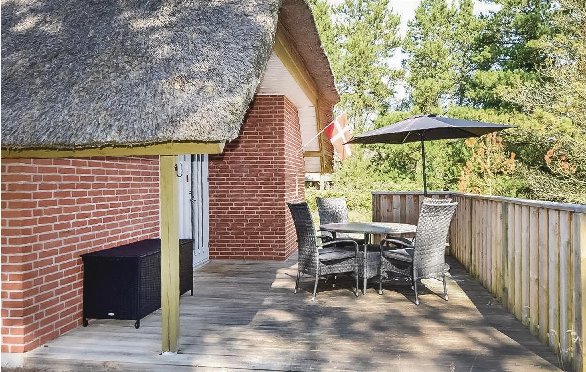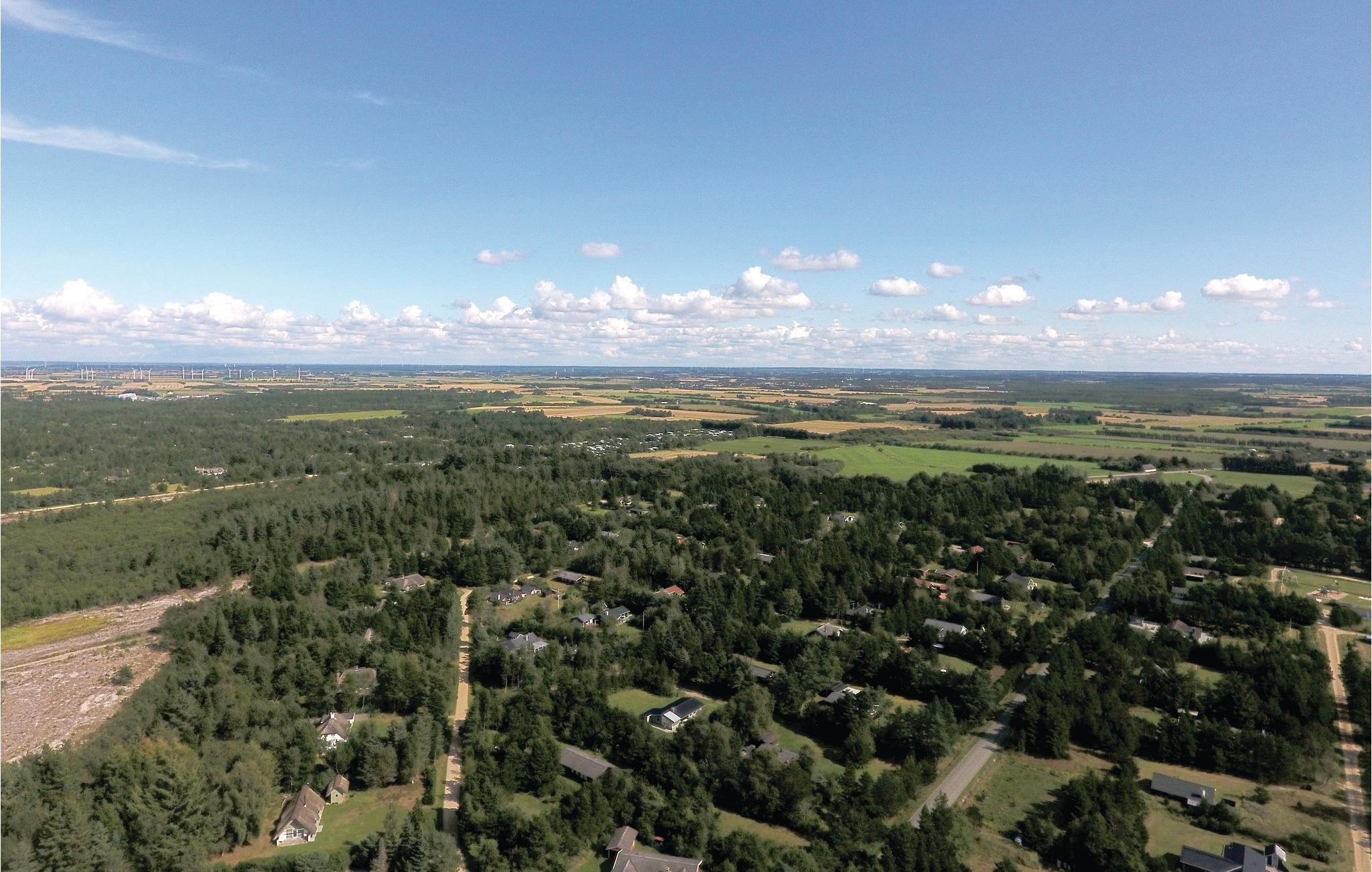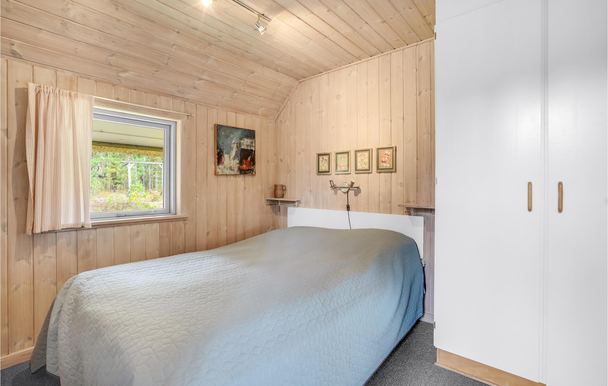 Dette hyggelige og velholdte sommerhus er beliggende på en 3000 m² stor, ugenert naturgrund med græsarealer, lyng og høje fyrretræer. Huset har mange bekvemmeligheder bl.a. fibernet med mange udenlandske og danske tv-kanaler samt gratis internetforbindelse. Førstesalen er indrettet meget børnevenligt med Playstation, film, spil, legoklodser og legetøj. Glæd jer til at besøge det lokale badeland med wellness- og sportsaktiviteter for alle. I nærhedne er også en stor, fælles udendørs legeplads og boldbane (75 m).