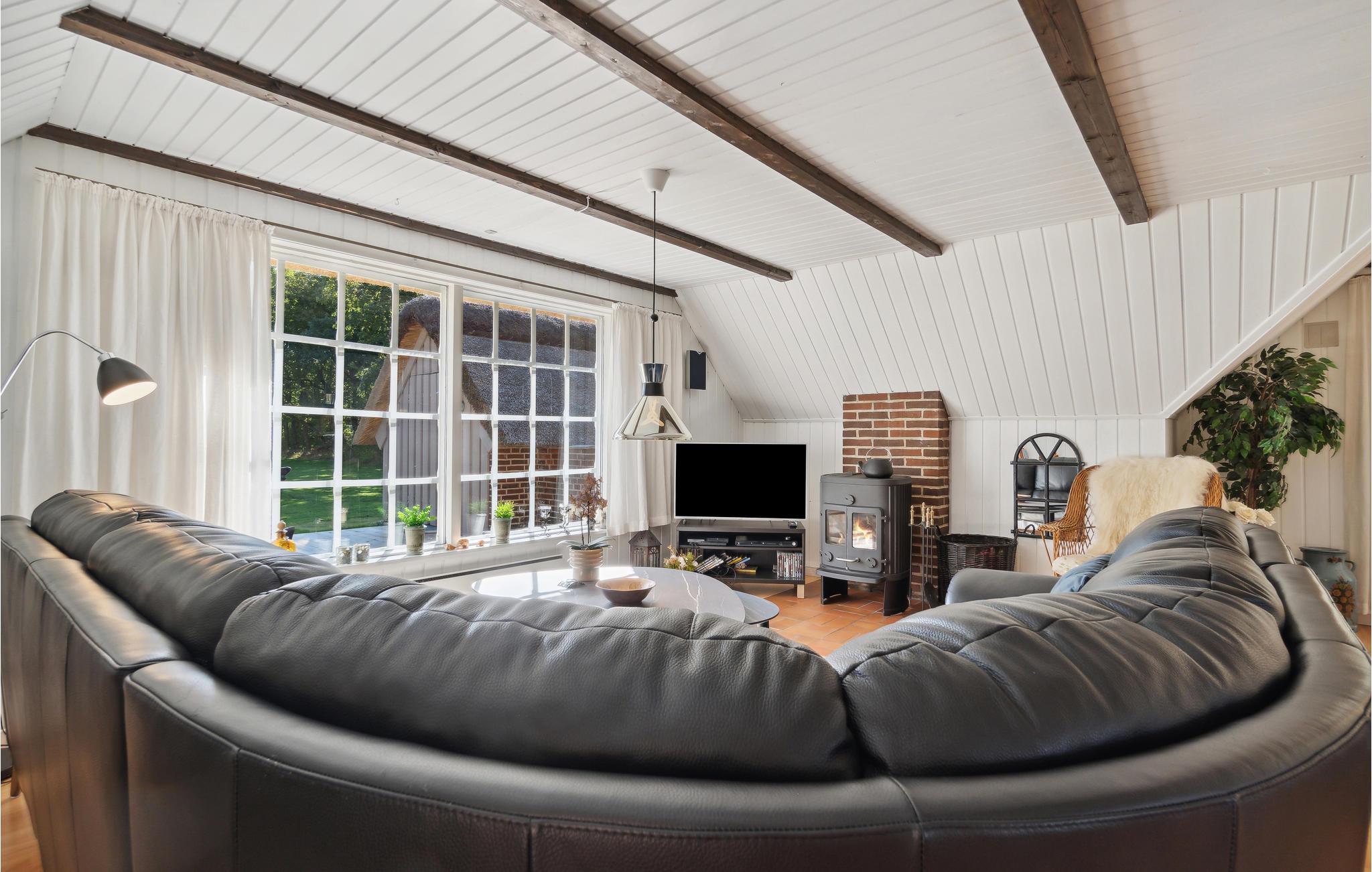 Stråtækt, hyggeligt sommerhus beliggende på en stor, delvis lukket naturgrund. Dejlig åben stue og køkkenområde med udgang til de to terrasser. Grunden er velegnet til børnenes leg og boldspil. Huset er beliggende tæt på Blåbjerg Klitplantage med gode vandre- og cykelruter. Andre gode aktivitetsmuligheder er den nærliggende hesteudlejning eller den flotte golfbane i Henne, hvor såvel begyndere som øvede er velkomne. Der er kort køreafstand til den skønne, hvide badestrand ved Vesterhavet, som uanset årstiden er utrolig fascinerende.