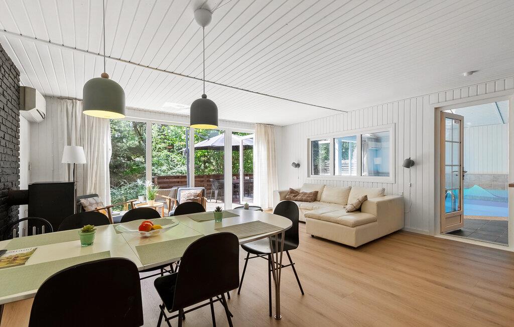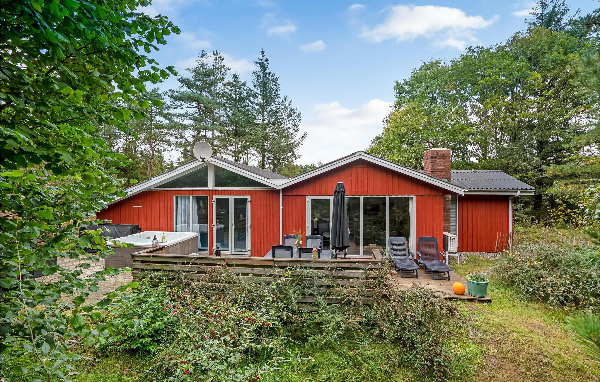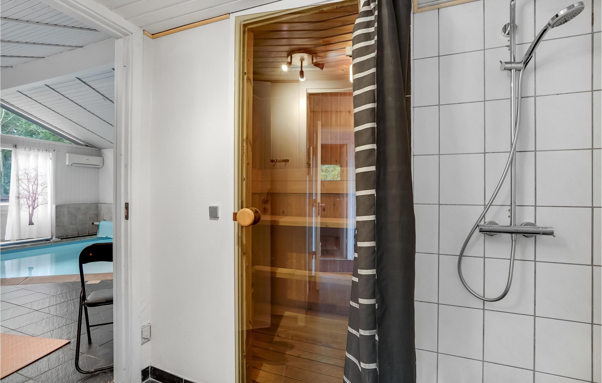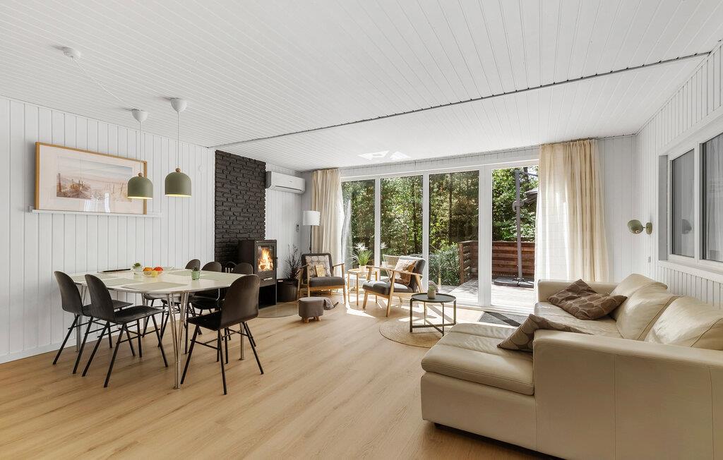Feriehuset har en fin indretning bl.a. med et godt og rummeligt køkken/alrum med brændeovn. Her findes tre soveværelser, hvoraf et har adgang fra poolrummet. Sid på terrassen og nyd ferien med et lækkert måltid mad, som I har tilberedt på grillen, mens børnene leger på den store grund.