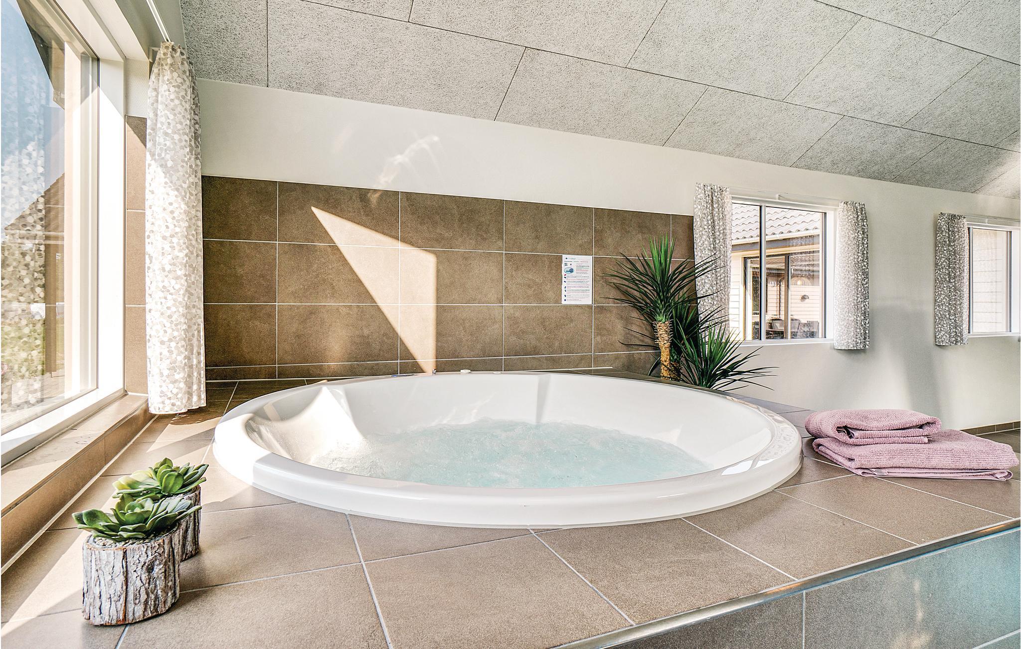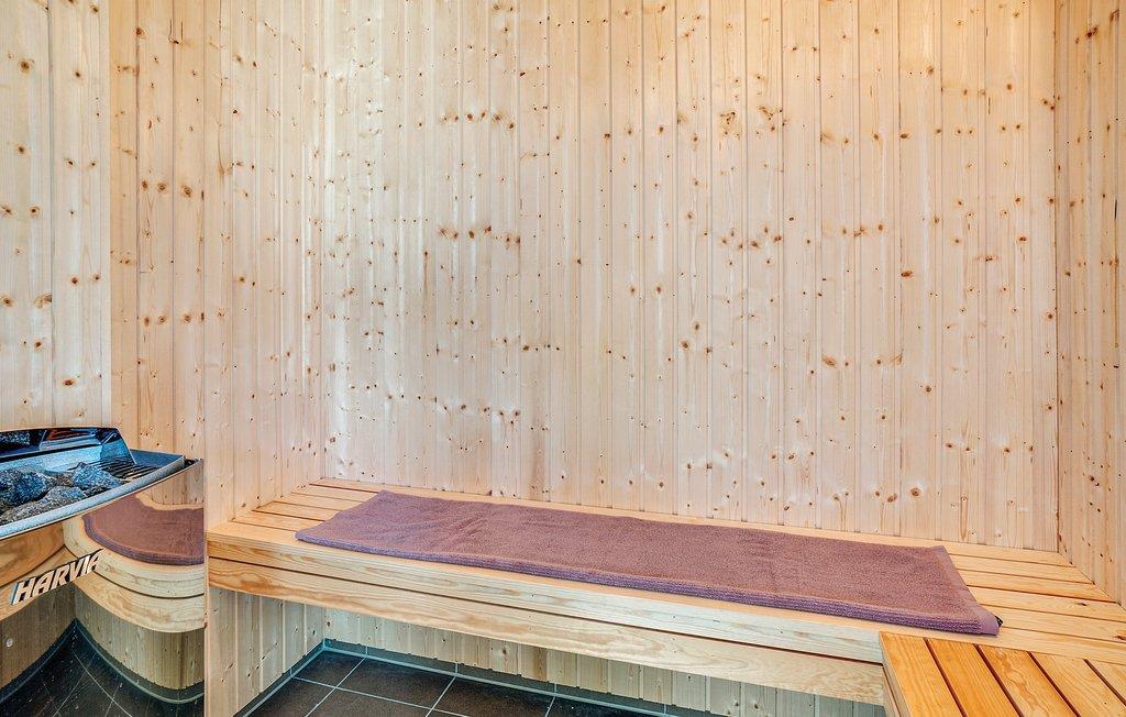 Ferie er for mange også ensbetydende med lækker mad. Køkkenet er selvfølgelig veludstyret og har både to opvaskemaskiner, to ovne, to håndvaske og rigelig køleskabsplads, så madlavning til mange mennesker ikke er en udfordring. Sommerhuset har flere wellness-faciliteter i egen poolafdeling med både spabad, sauna og en stor indendørs swimmingpool med romersk trappe, vandrutsjebane og modstrømsanlæg. I det store aktivitetsrum kan der spilles og dystes dagen lang. Her finder I både billard, bordtennis, bordfodbold og dart. I kan også tage et spil PlayStation4 eller slænge jer i husets bar. Udendørs finder I en flot delvist overdækket terrasse med grill og havemøbler, som er oplagt til en hyggelig grillaften eller afslapning i sommersolen. I haven er der gynge, sandkasse og trampolin til børnene.