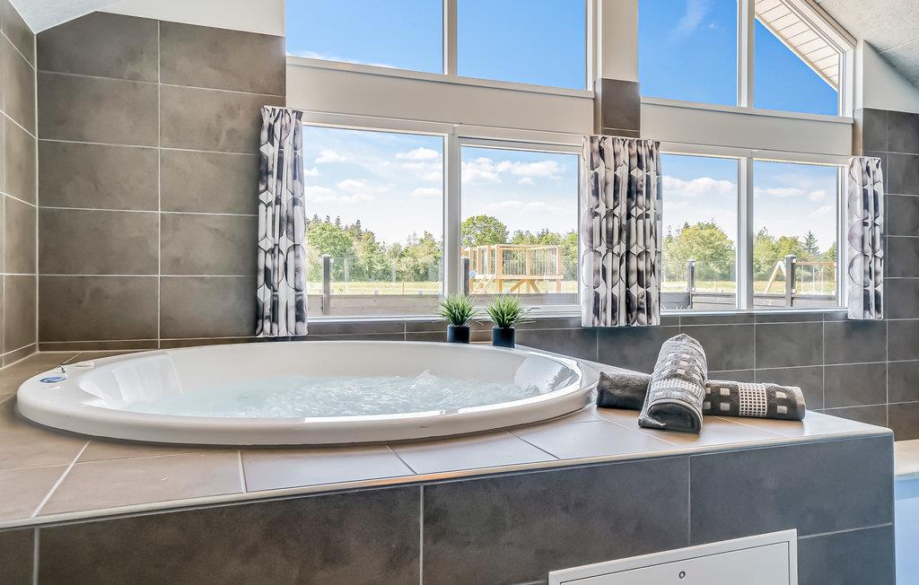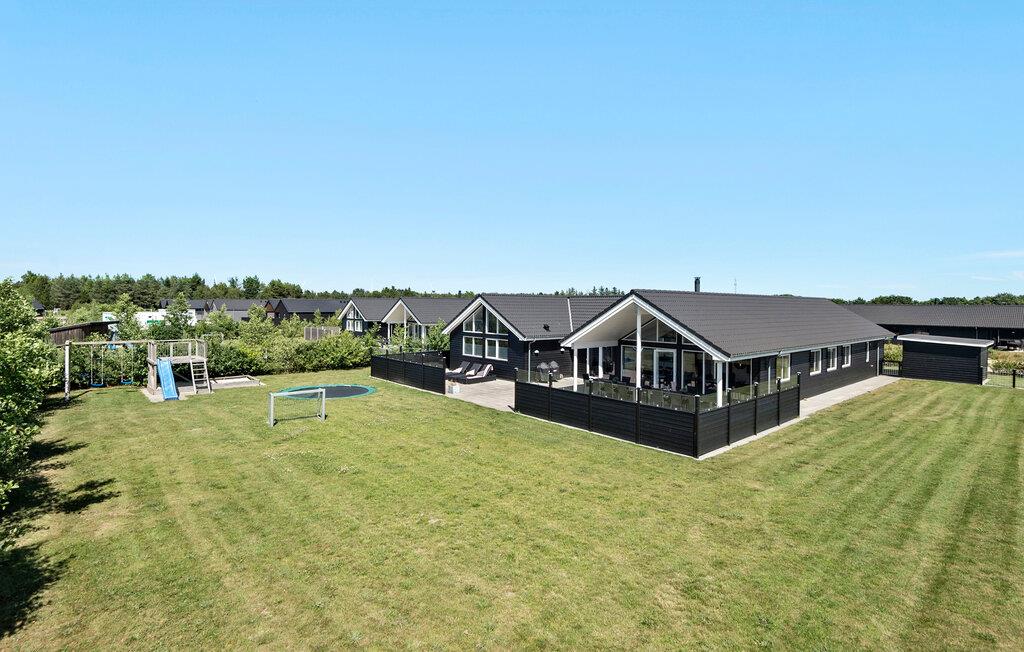 Luksuriøst feriehus i Houstrup med wellness, aktivitetsrum og indhegnet have for familier og kæledyr.