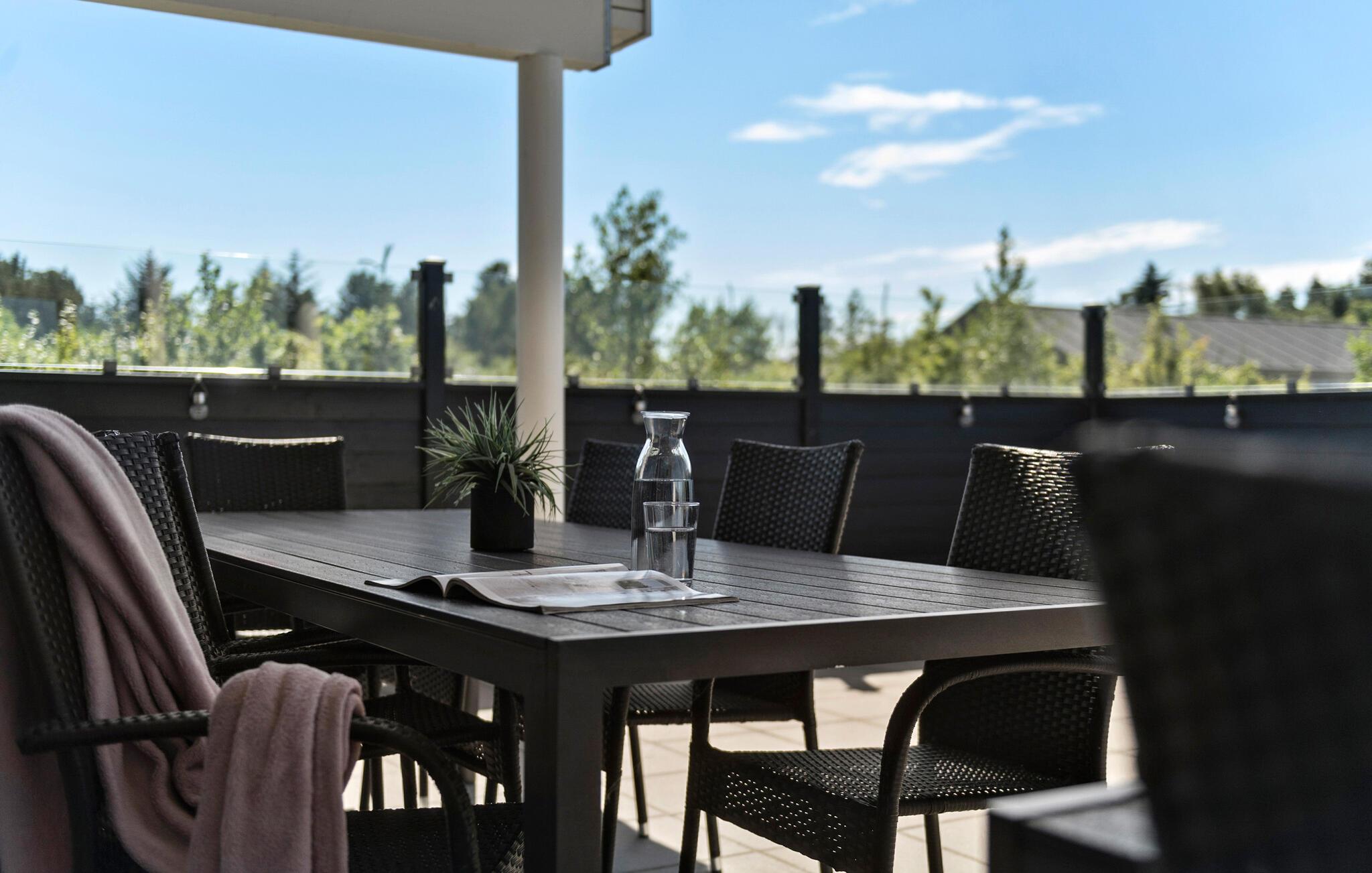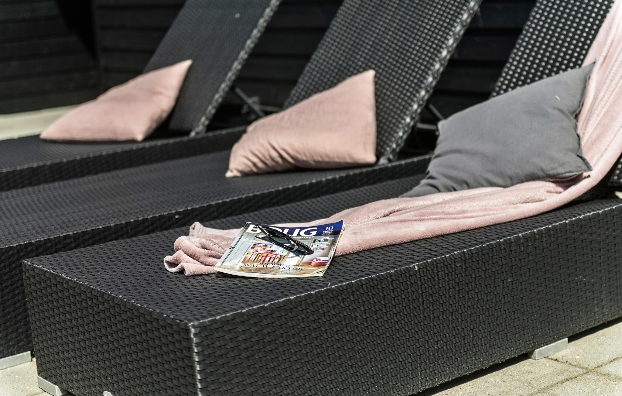 Glæd jer til at tilbringe solskinstimerne på terrassen, hvor der er havemøbler og grill. Terrassen er lukket og delvist overdækket, hvilket giver både skygge og private rammer. Børnene kan have det sjovt i haven med gynge, sandkasse og trampolin.