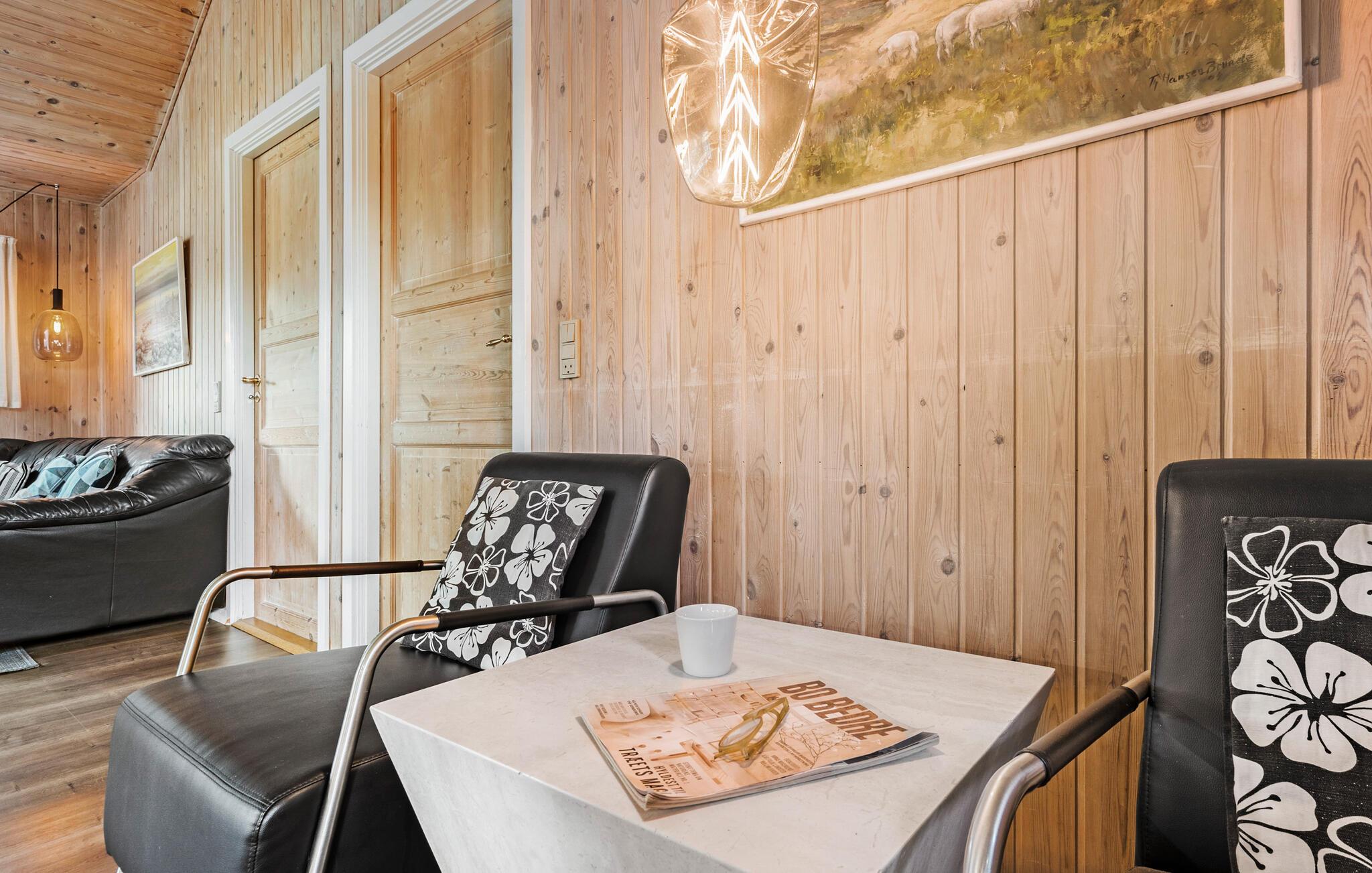 Dette hyggelige feriehus har alt, hvad I skal bruge til en afslappende ferie. I den lyse stue med brændeovn kan I se frem til stunder med fred, ro og hygge. Det veludstyrede køkken lægger op til at lave mad sammen, mens de funktionelle soveværelser sørger for afslappende nætter. Glæd jer til beroligende timer i saunaen eller spabadet og sæt hverdagen på pause.