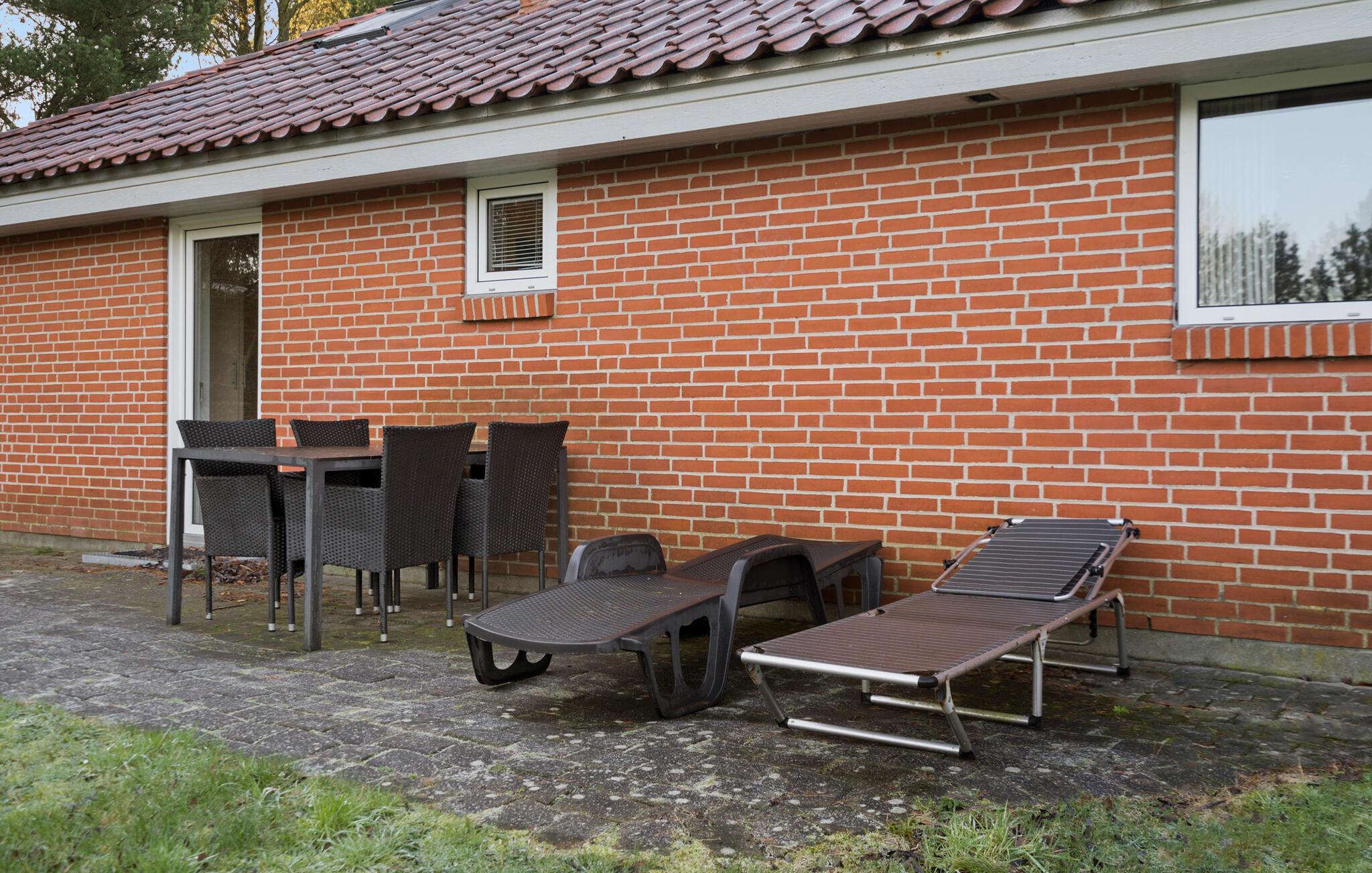 Hyggeligt feriehus i Houstrup med sauna, spabad og stor terrasse til afslapning og familiehygge.