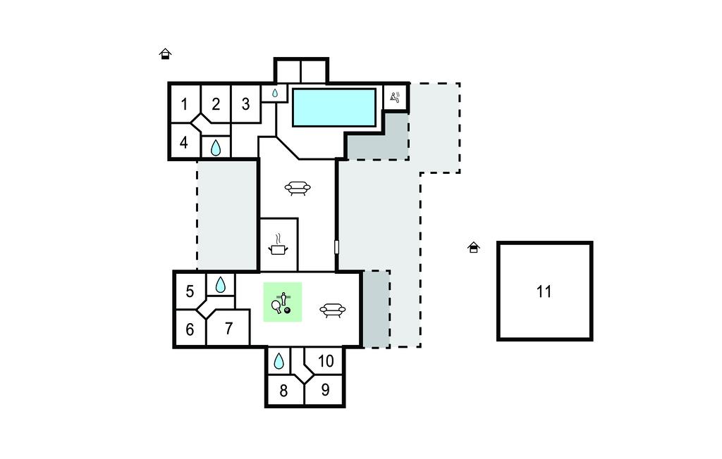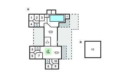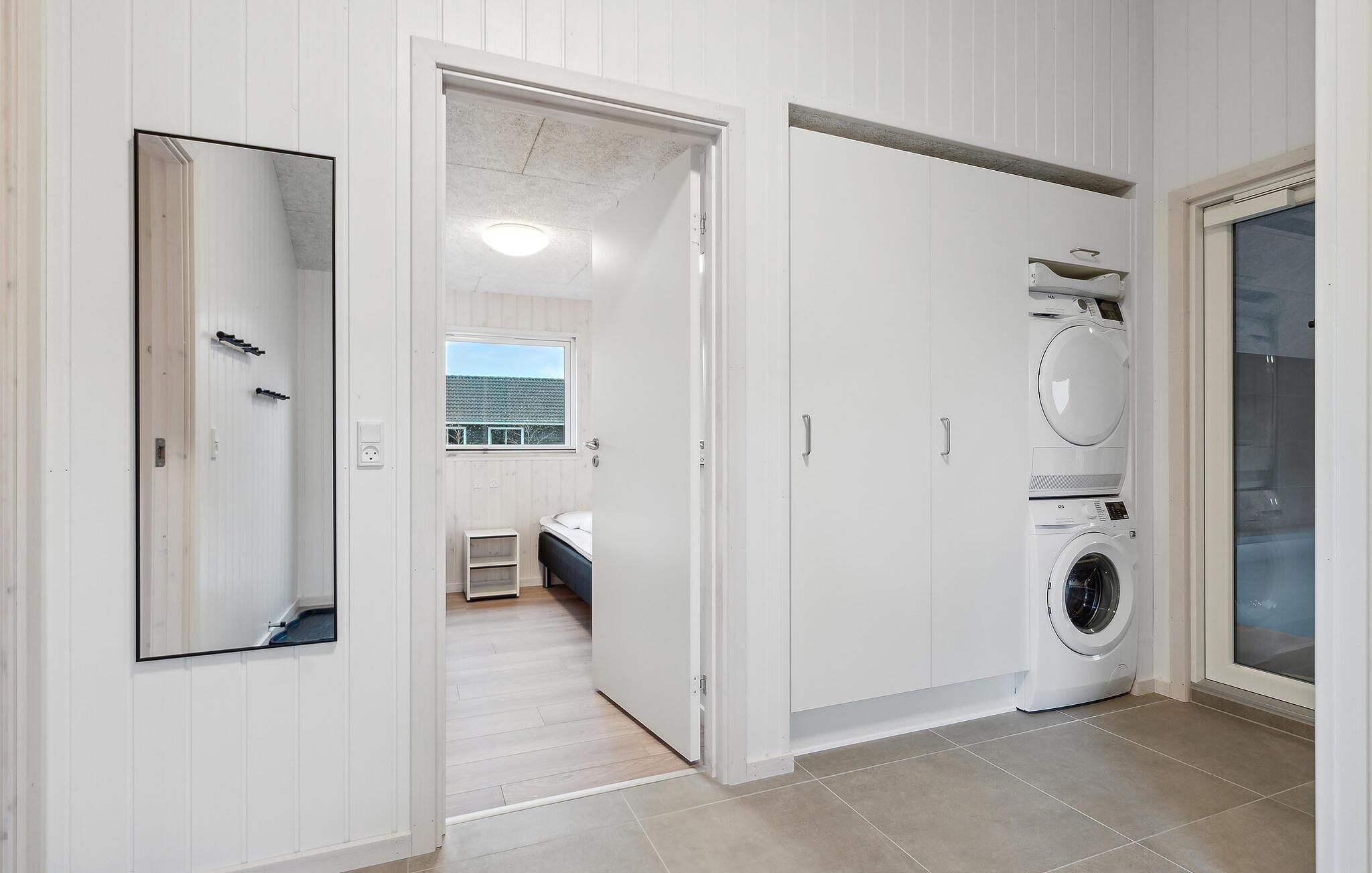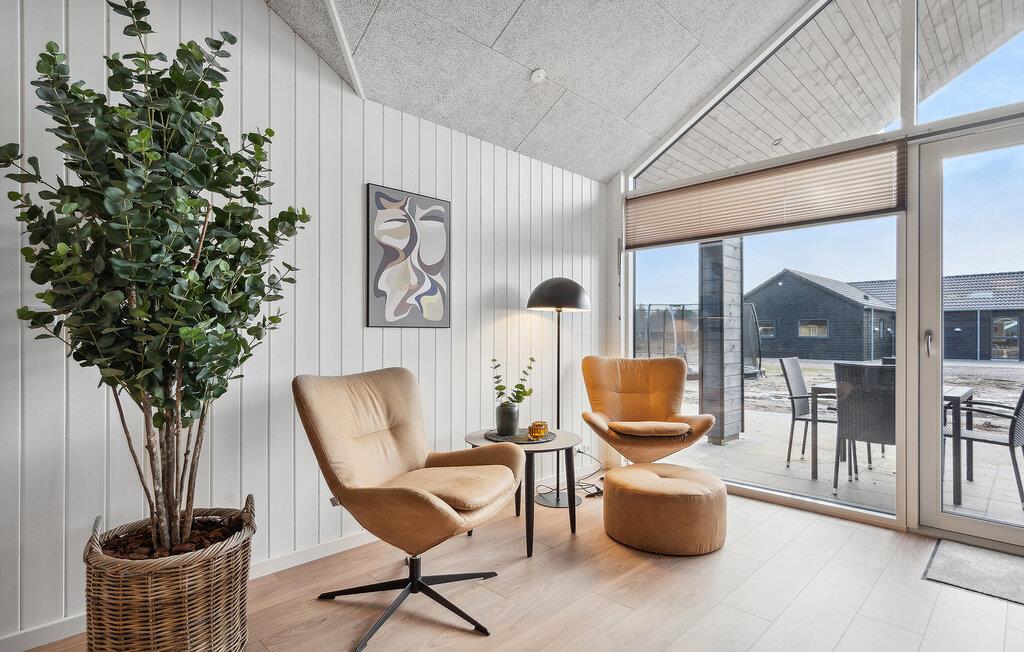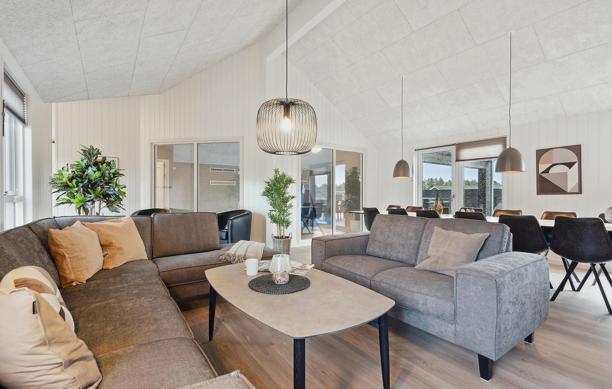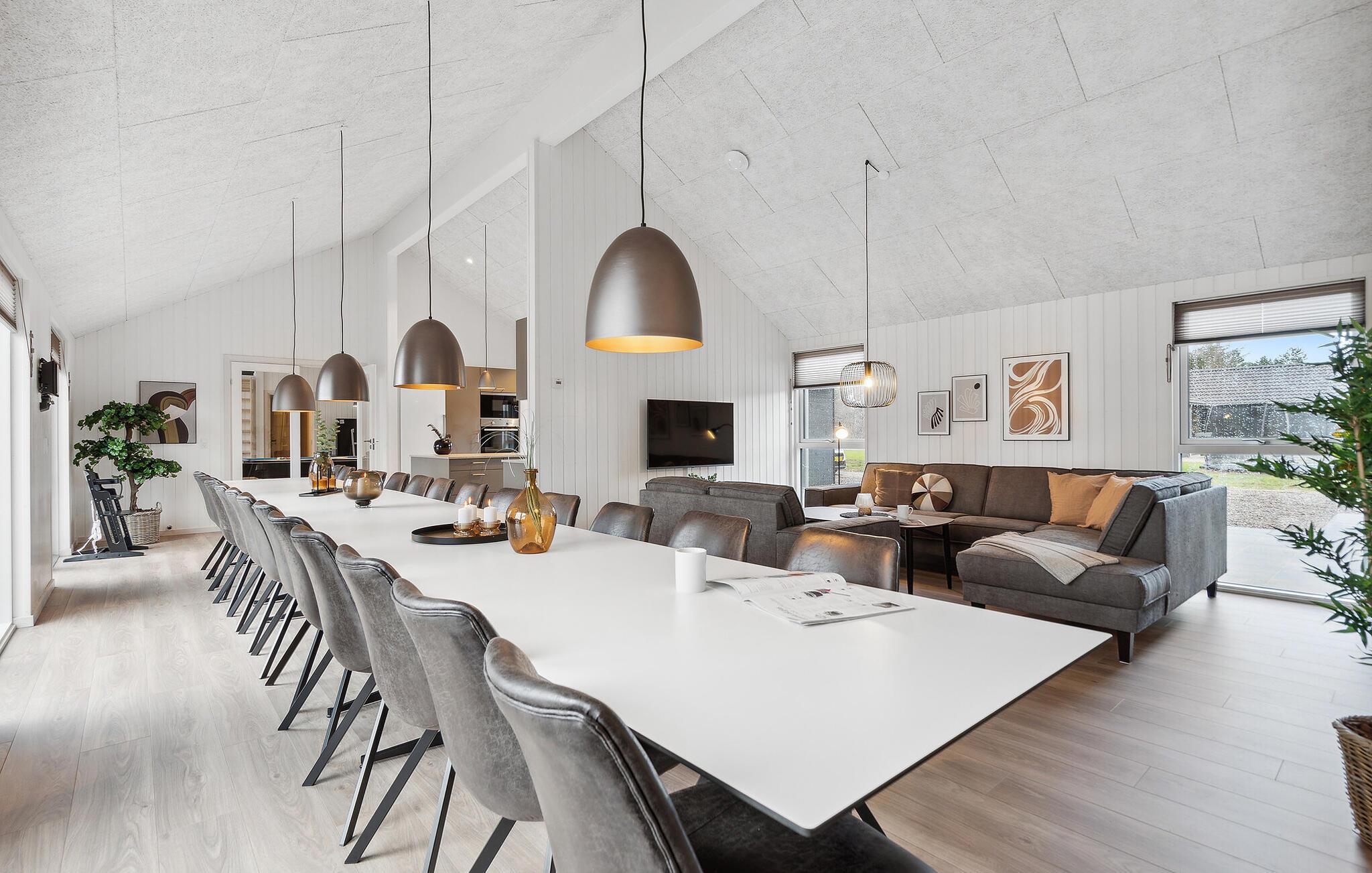 Det indre af dette sommerhus byder jer velkommen med et moderne design og rummelige, lyse værelser. Føl jer godt tilpas i den smagfuldt indrettede stue med en god film, spil billard eller Playstation5 og udfordr jer selv ved bordfodboldbordet. Forkæl jer selv med afslappende timer i jeres indendørs pool eller sauna. Tilbered kulinariske delikatesser sammen i køkkenet af høj kvalitet.