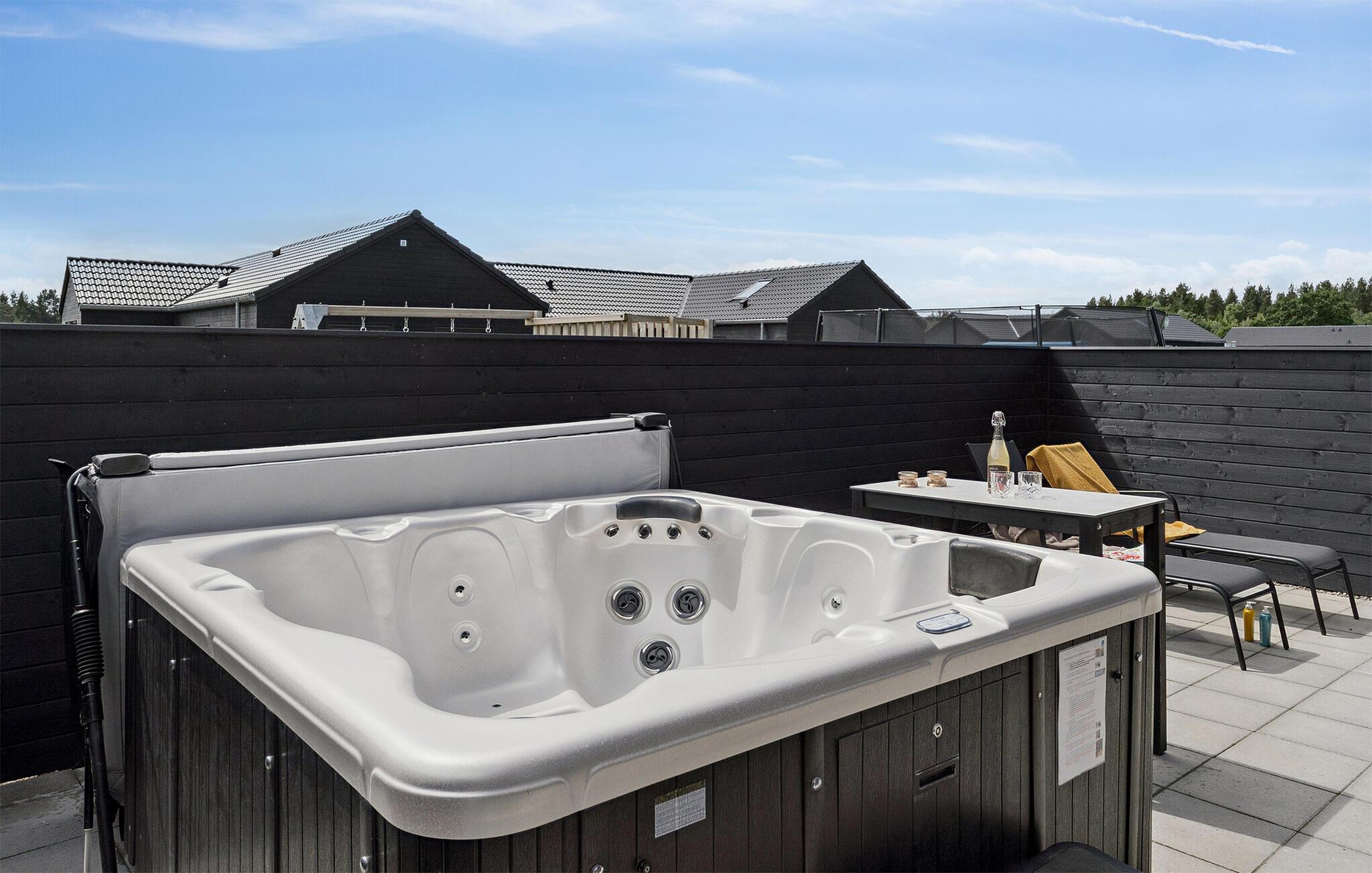 Brug jeres store terrasse med komfortable liggestole og et spabad til at slappe af i det fri og lad børnene bruge de mange legemuligheder i den velholdte have. Nyd atmosfæriske grillaftener, mens I nyder roen i omgivelserne.