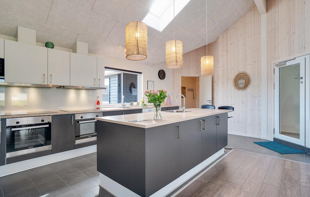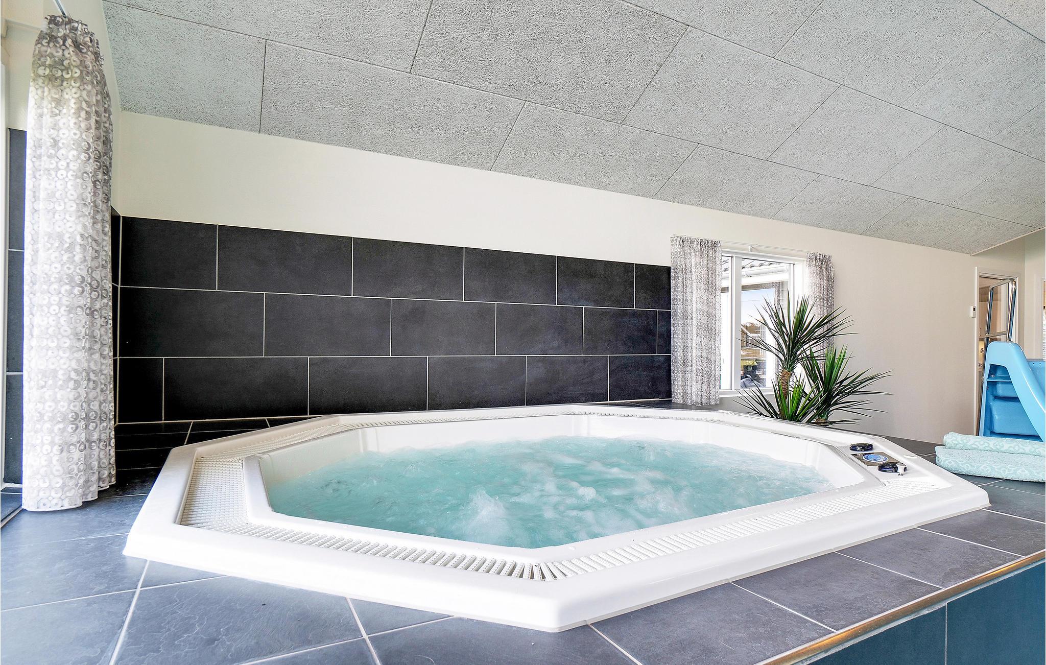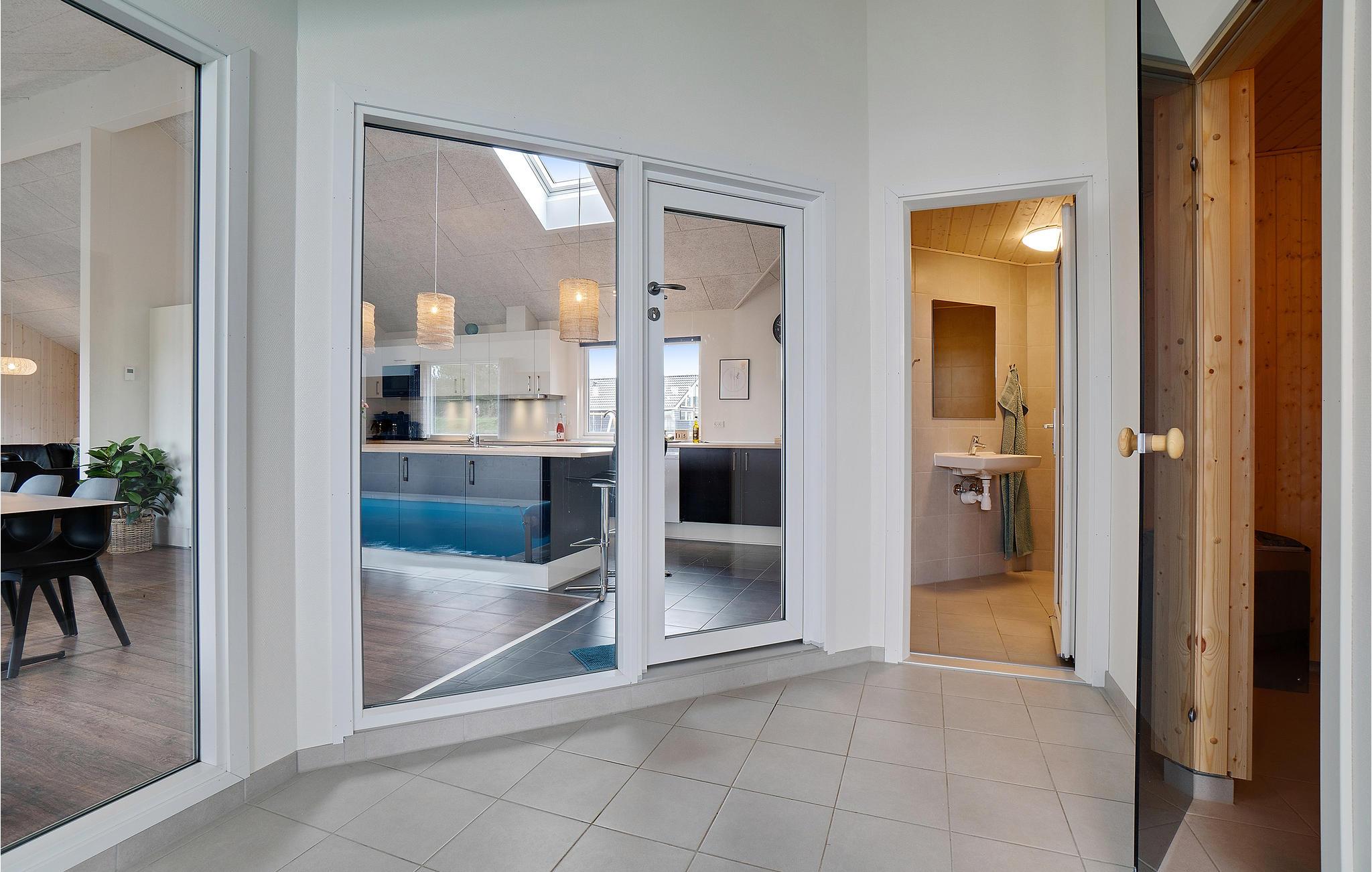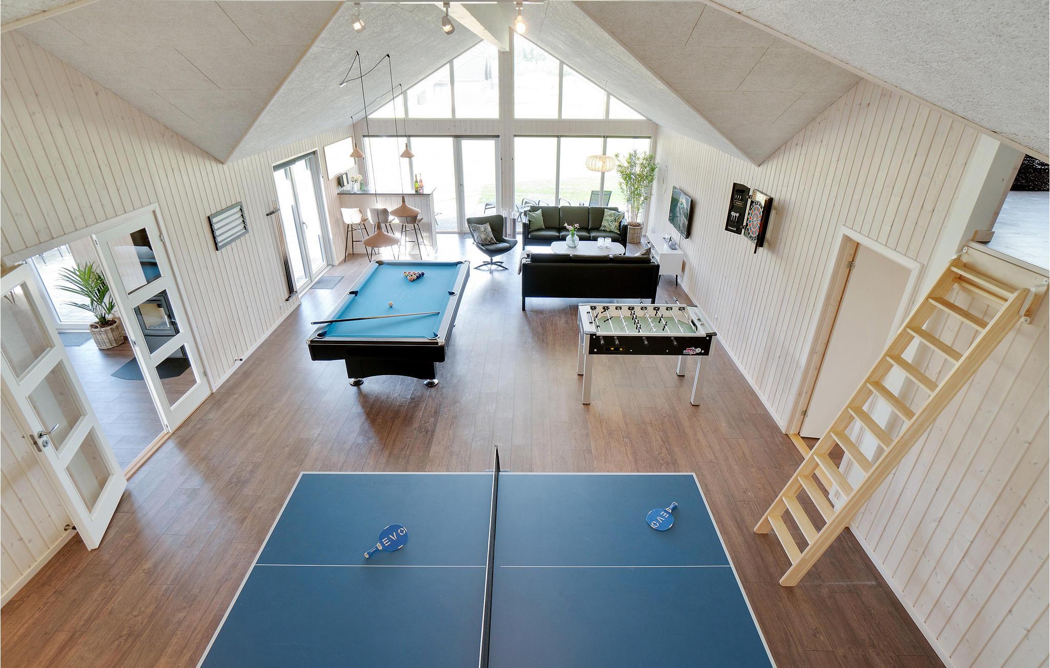 Leder I efter en komfortabel feriebolig, der tilbyder jer masser af plads og et varieret underholdningsprogram? Så har I fundet det helt rette sted. Det moderne feriehus er ideelt til jeres udvidede familie eller flere familier, der rejser sammen. Nyd jeres ophold i Houstrup, uanset årstid eller vejr, for her kommer I ikke til at kede jer. Inde i sommerhuset kan I spille bordfodbold, bordtennis eller afholde billardturneringer sammen, alt sammen i aktivitetsrummet nær den store stue, så alle kan være med. I kan også nyde swimmingpoolen uanset vejret. Slap af i spabadet, mens jeres børn morer sig med at rutsje og spille bold i poolen.