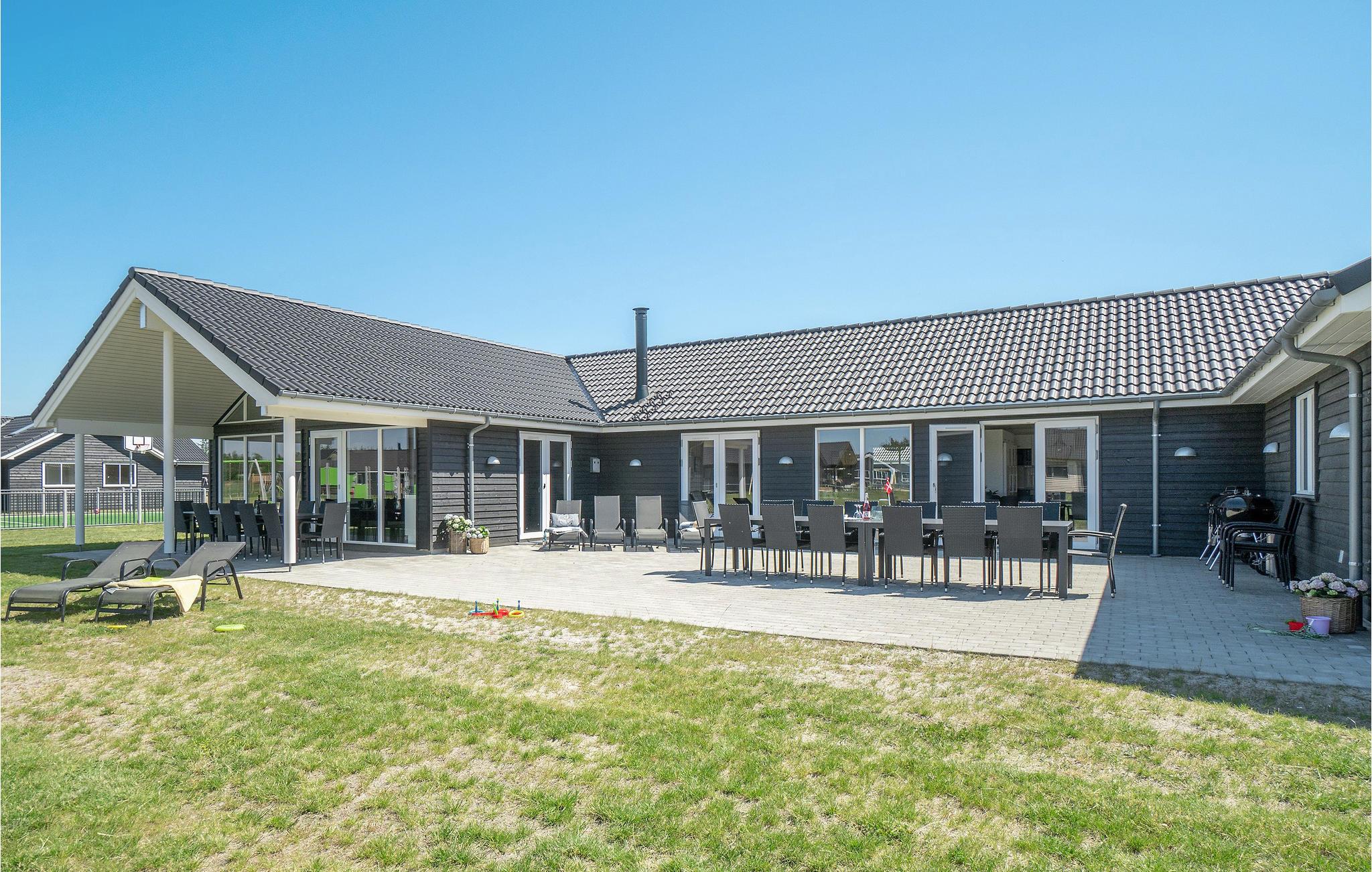 Moderne feriehus i Houstrup med pool, aktivitetsrum og stor have til sjov og afslapning for hele familien.