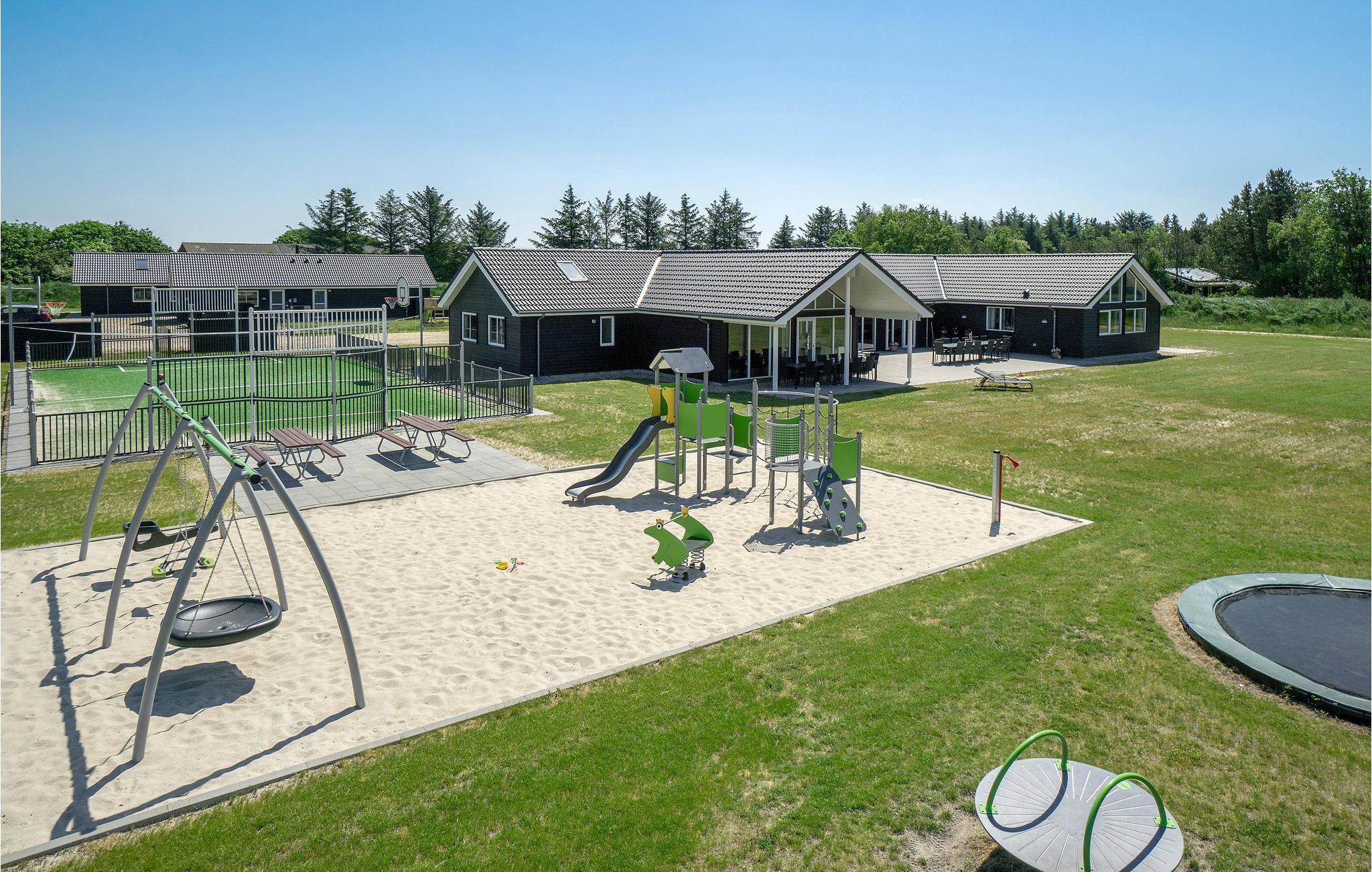 Eventyret for jer og jeres børn fortsætter i haven. En omfattende legeplads venter på jeres børn. Alt fra vipper til gynger, hop og leg i sandet står klar til jer. En multifunktionel sportsplads giver jer også mulighed for at træne og spille bold. Mens jeres børn slår sig løs, kan I slappe af med en kop kaffe på terrassen og nyde udsigten over naturen.