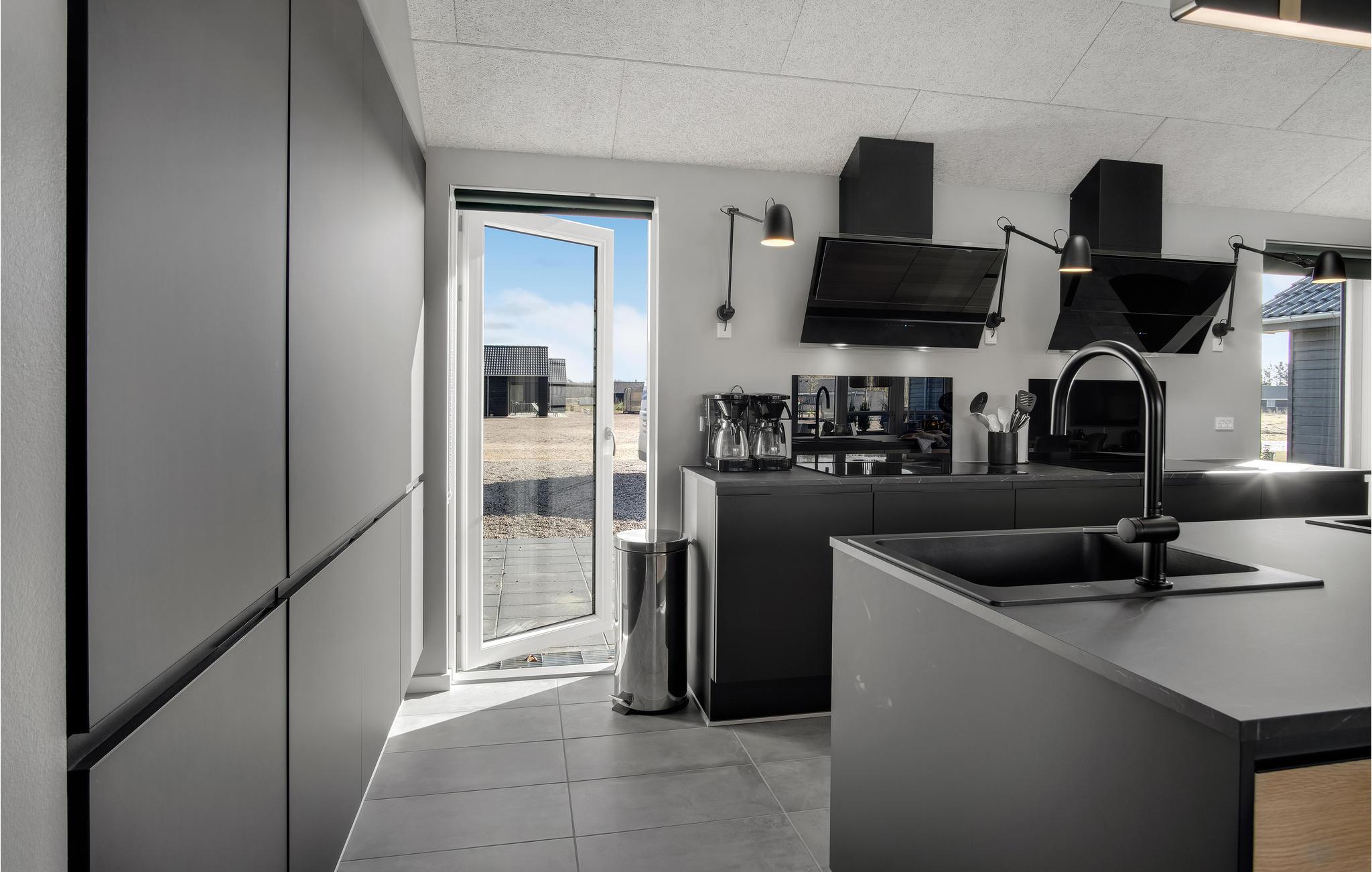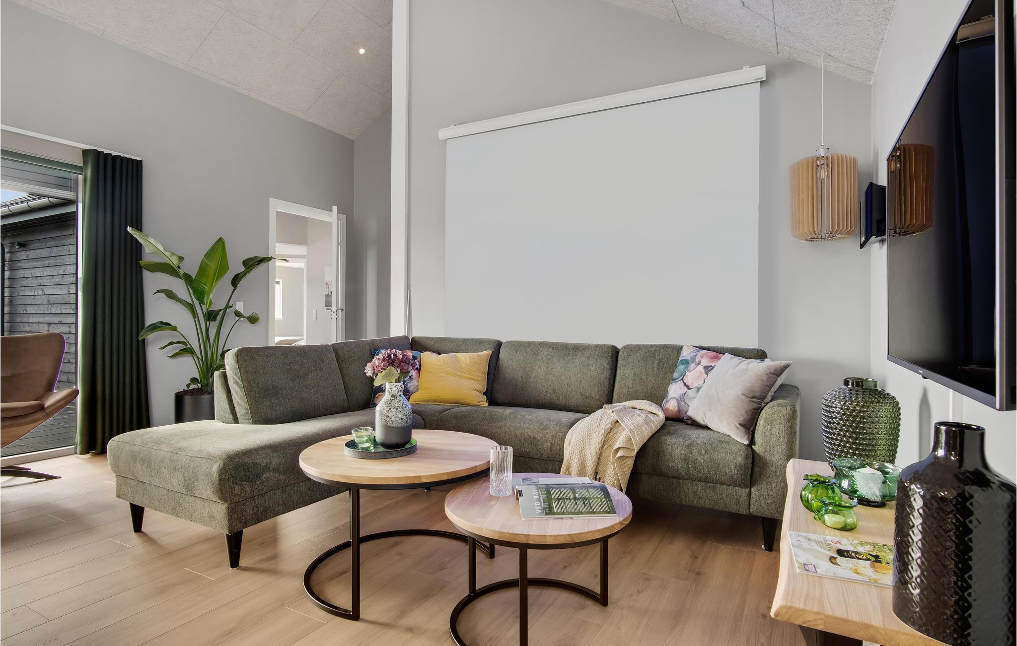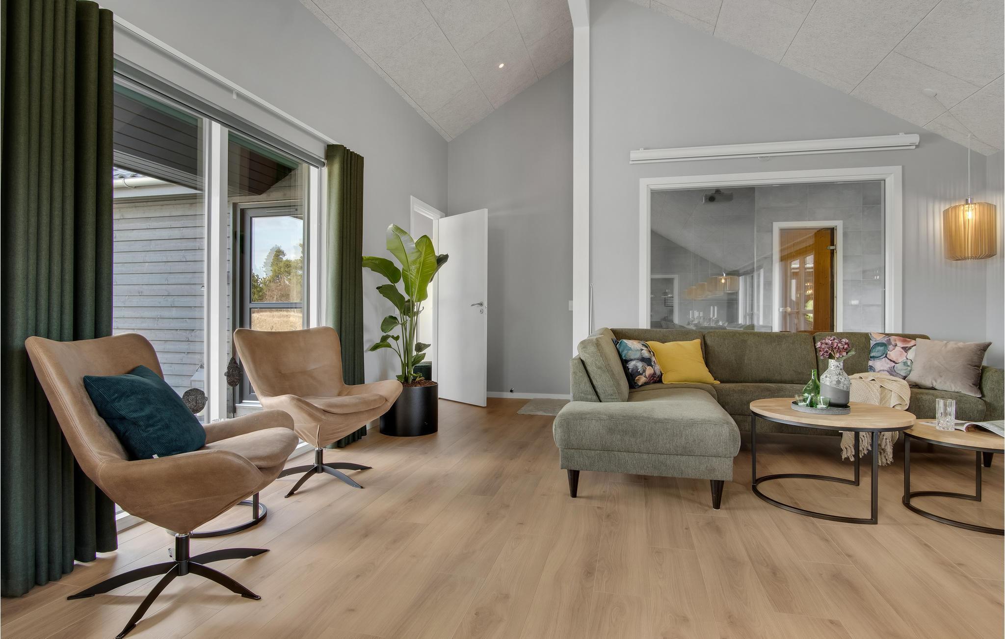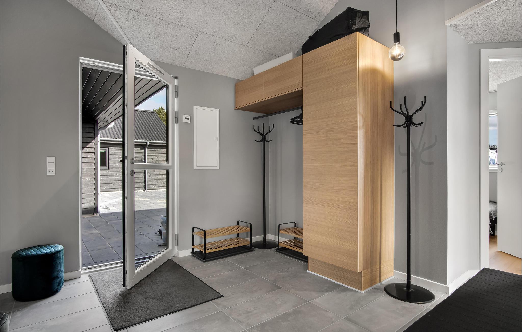 Dette skønne feriehus med plads til flere familier ligger i Houstrup, ikke langt fra Vesterhavet. Her får I faciliteter af høj kvalitet og et stort udvalg af aktiviteter for store og små. I løbet af dagen kan I more jer med at spille billard eller bordtennis og af og til nyde en kold forfriskning i baren. Poolafdelingen inviterer til timevis af badesjov og byder også på muligheder for wellness i spabad og sauna. Om aftenen, efter en begivenhedsrig dag, kan I sammen tilberede lækre måltider i det rummelige, moderne køkken og nyde dem i godt selskab ved spisebordet. Den store terrasse byder på både solrige og skyggefulde hjørner, så I kan nyde sommervejret fuldt ud. Lad børnene hygge sig på trampolinen eller i legetårnet, mens I forbereder en lækker grillmiddag til hele selskabet.