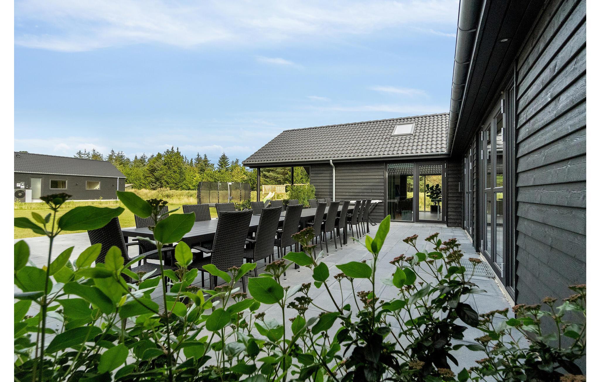 Skønt feriehus i Houstrup med pool, sauna, aktivitetsrum og stor terrasse nær Vesterhavet.