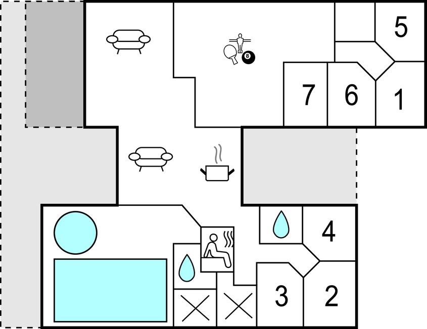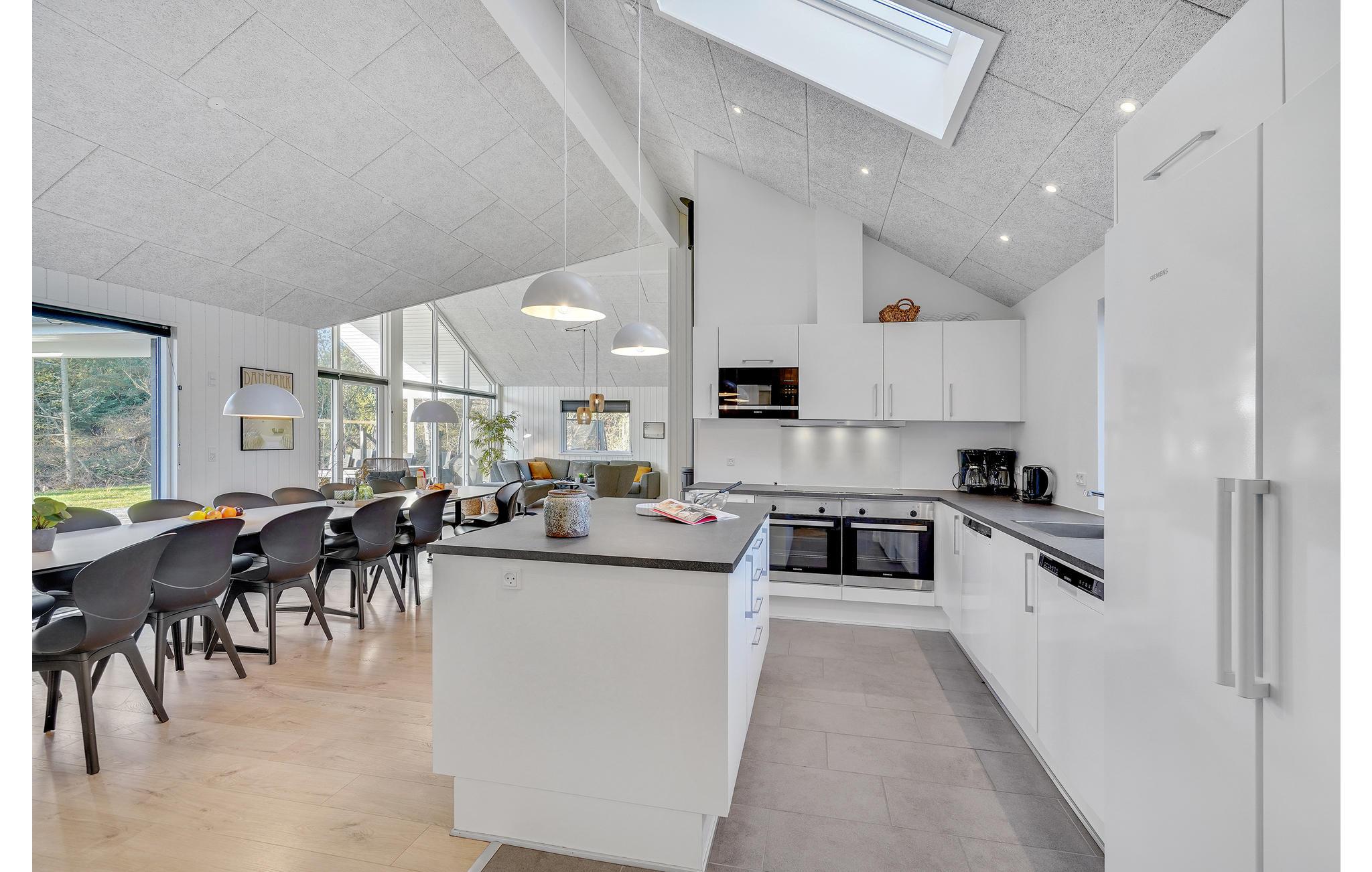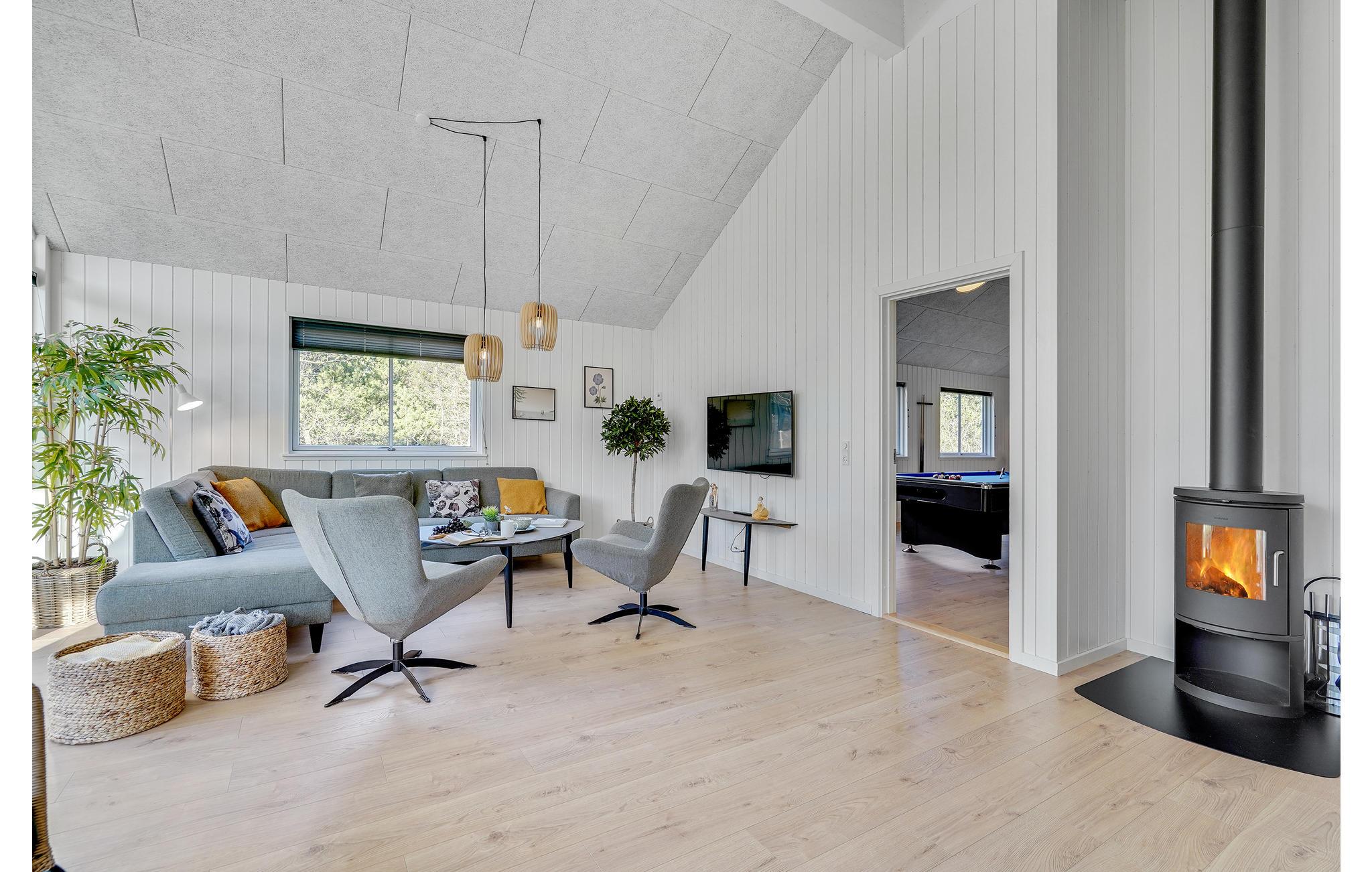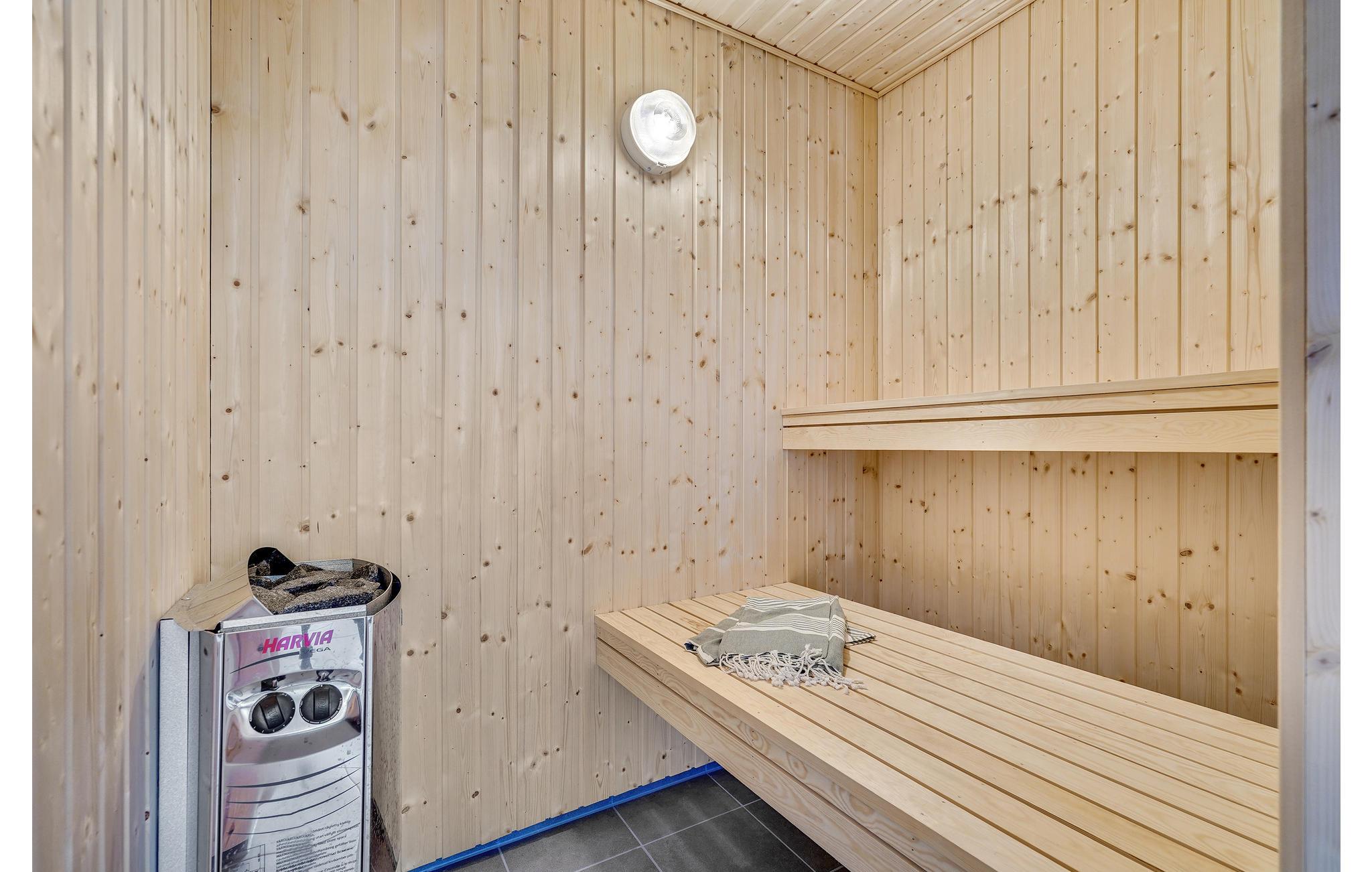 Velkommen til et stort og moderne feriehus, hvor der er god plads til at fejre en begivenhed i familien eller tage af sted med jeres gode venner. Måske vil I begynde dagene med at svømme et par baner i poolen eller lade børnene få en rutsjetur fra morgenstunden, inden dagen går i gang med planlægning og udflugter. Senere kan I få varmen i saunaen eller spabadet efter en lang gåtur ved stranden. Huset er lavet til alle vejrforhold og årstider, for aktivitetsrummet byder på mange timers underholdning. Snup et spil billard, dart og bordfodbold eller måske et brætspil. I kan også tilbringe hyggelige aftener på den overdækkede terrasse. Her kan I sætte jer mageligt til rette, mens de små leger i sandkassen og de store børn spiller fodbold på græsplænen.