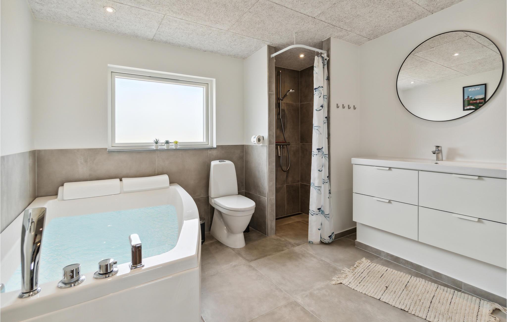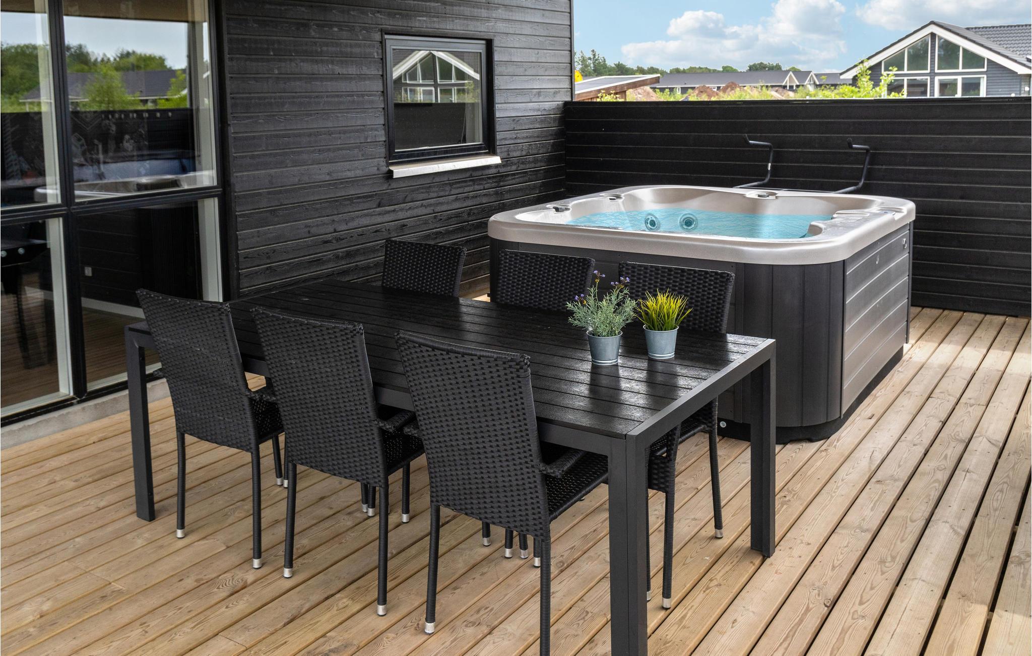 Moderne sommerhus i Nørre Nebel med sauna, poolbord og udendørs spa til afslapning og hygge.