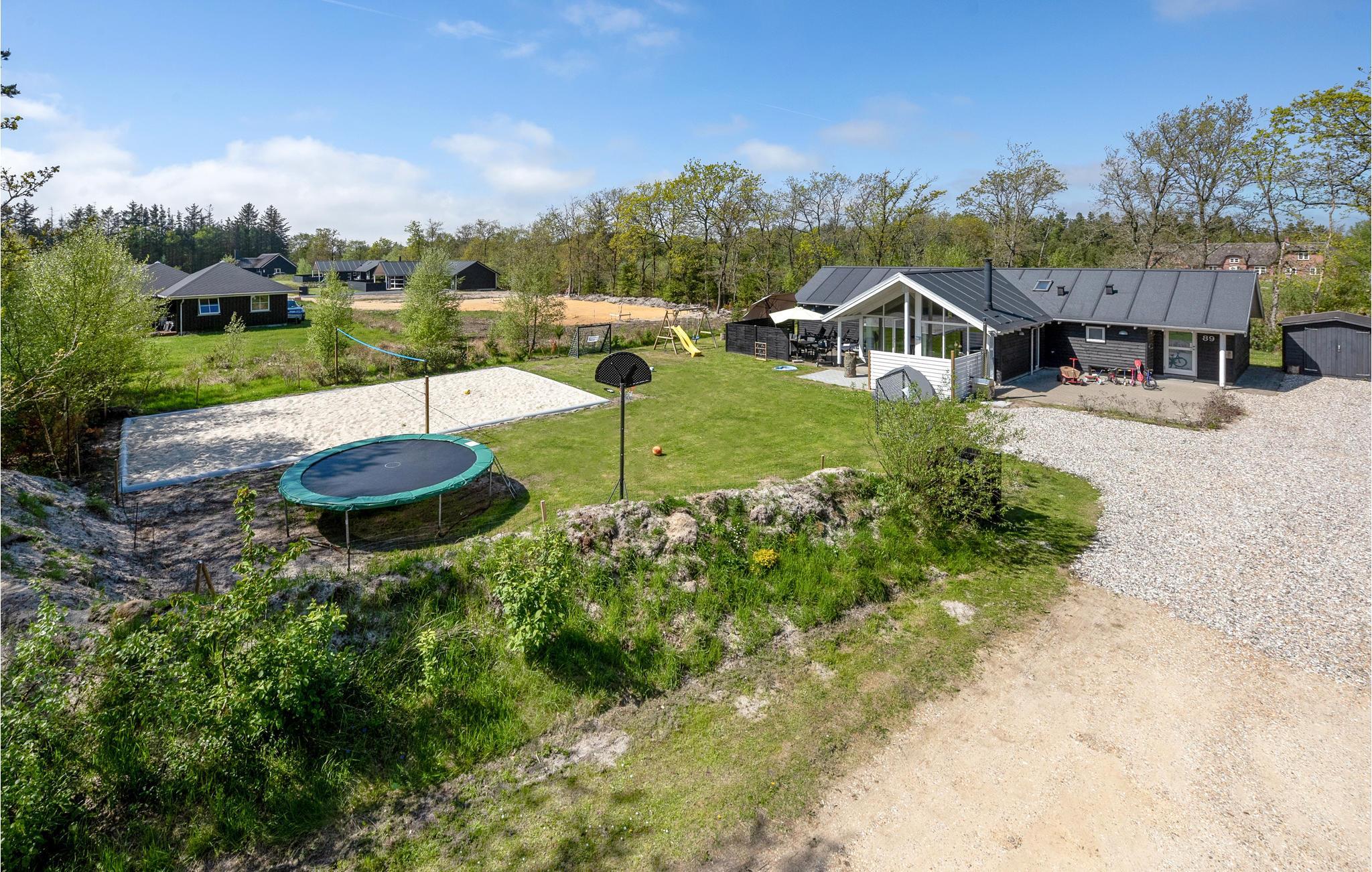Huset er beliggende på en rigtig dejlig naturgrund i Houstrup, og fra huset er der kort gang til det store badeland SeaWest. I haven er der mange aktivitetsmuligheder såsom fodboldmål, basket-kurv og beach volley. Trænger I til at slappe af efter en aktiv dag, kan I se frem til en tur i vildmarksbadet.