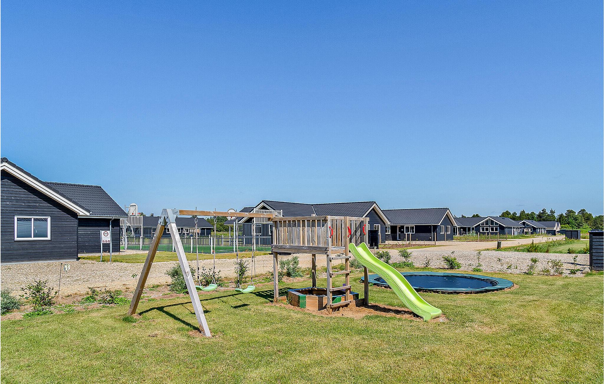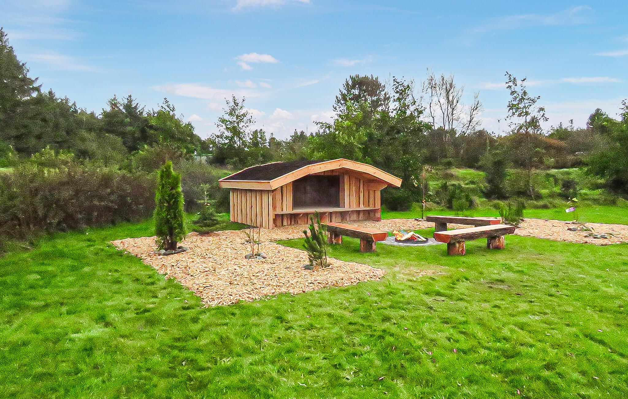 Udendørs kan I hygge jer på terrassen, som er delvist overdækket, og mens I nyder solen kan børnene lege på trampolin, gynger eller legetårnet med rutsjebanen. Terrassevarmeren gør det muligt også at nyde udendørslivet på de kølige sommeraftener.