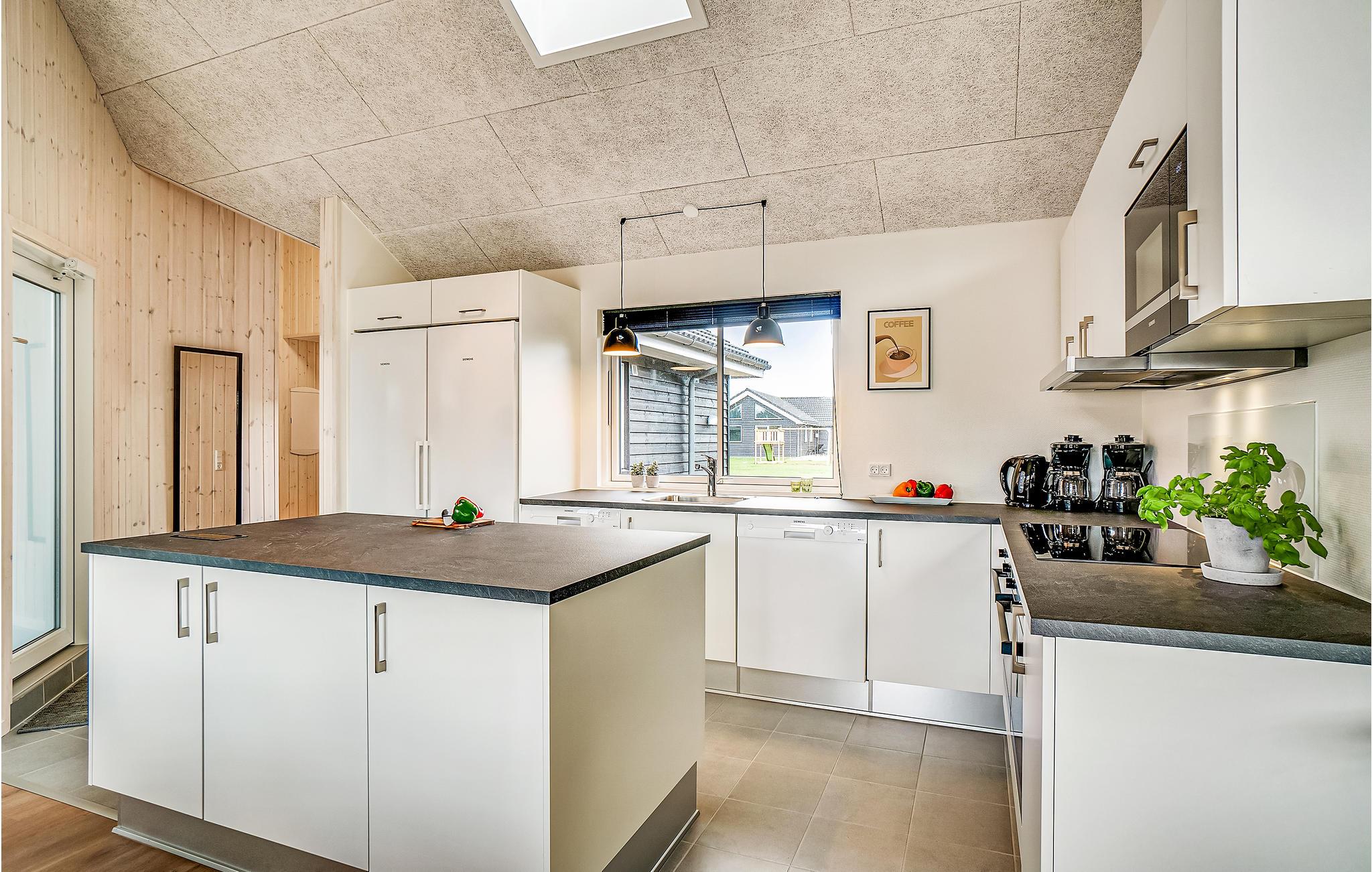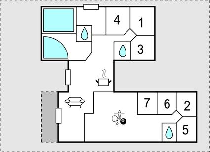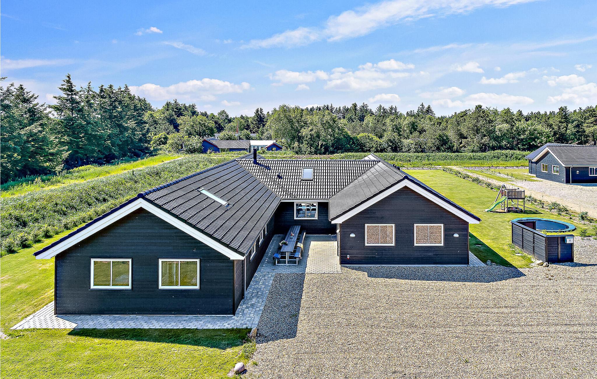 Dette luksuriøse sommerhus med swimmingpool er opført midt i det skønne sommerhusområde ved Houstrup. Huset er perfekt til den store familie eller flere familier, som ønsker at holde ferie under samme tag. Her har I mulighed for en gennemført ferieoplevelse, uanset om I er til afslapning eller til aktiviteter. I husets eget badeland kan I nyde godt af swimmingpoolen med vandrutsjebane, modstrømsanlæg, stort spabad med plads til 4-6 personer og sauna. Er I til aktiv ferie, så har sommerhuset rigeligt at byde på, hvad angår indendørs aktiviteter. Aktivitetsrummet indeholder både billard, bordtennis og bordfodbold, og fra baren i hjørnet kan tilskuerne nyde en kølig drink. Det flotte, moderne køkken er stilfuldt indrettet og udstyret og har direkte forbindelse til stuen.