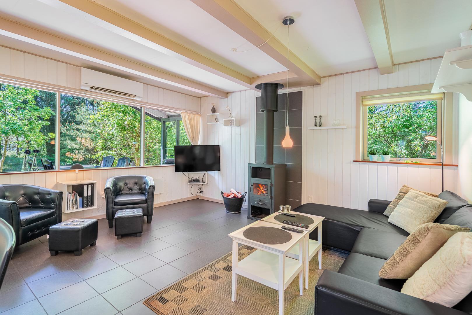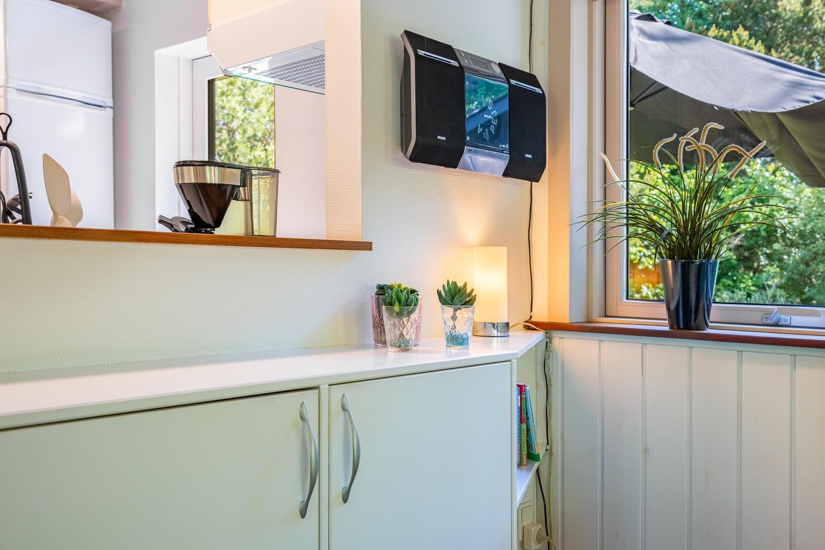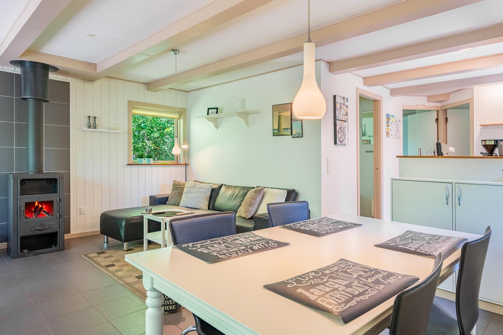 I sommerhuset finder du to soveværelser – et med dobbeltseng og et med to enkeltsenge. Her er et fint køkken, hvor du nemt kan tilberede et lækkert måltid, inden du slår dig ned stuen til en filmaften på det 40 tommer Smart TV eller blot nyder indendørs hygge foran den knitrende brændeovn, som spreder varme og hygge ud til hele rummet.