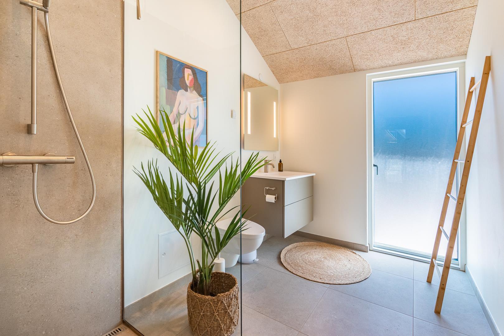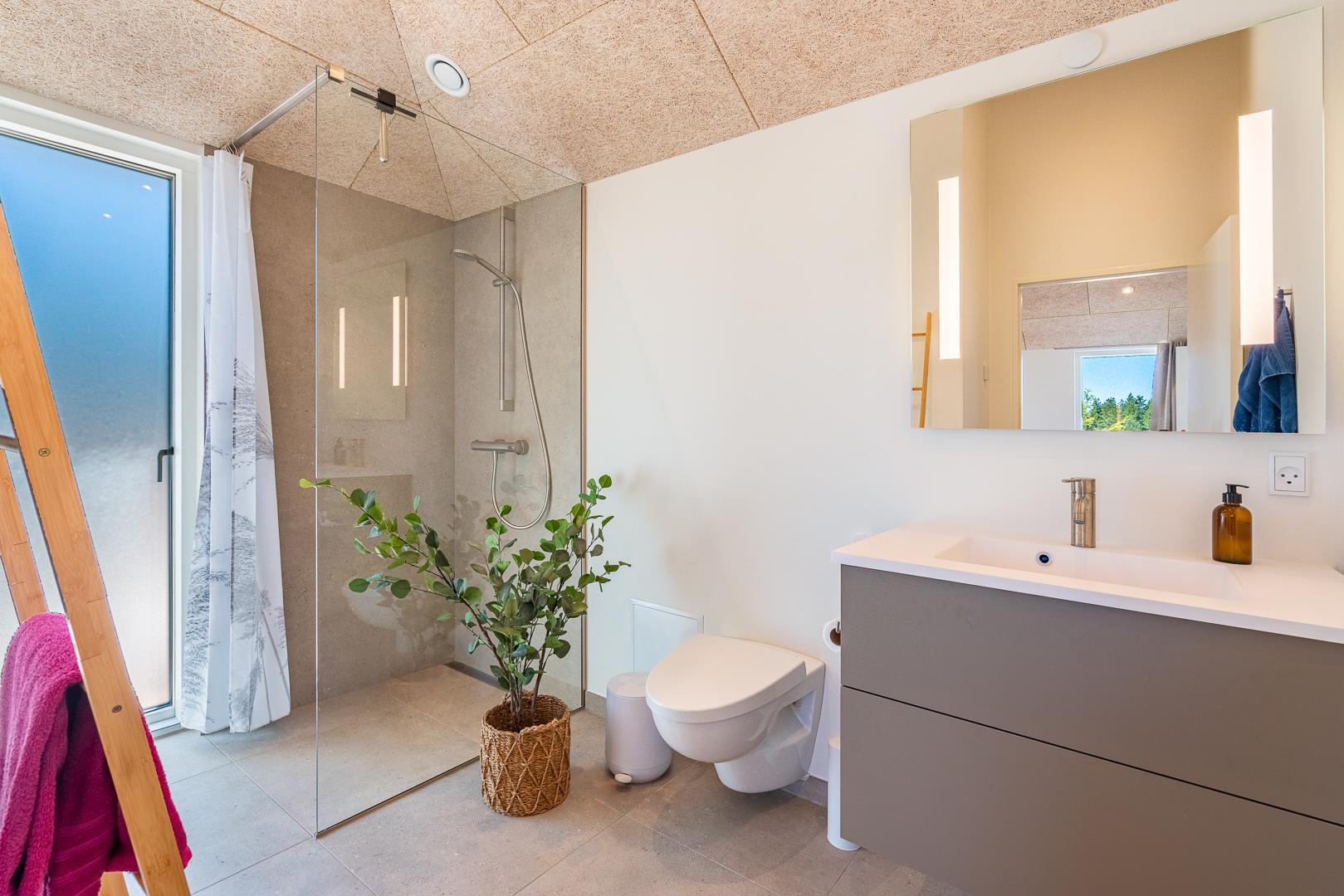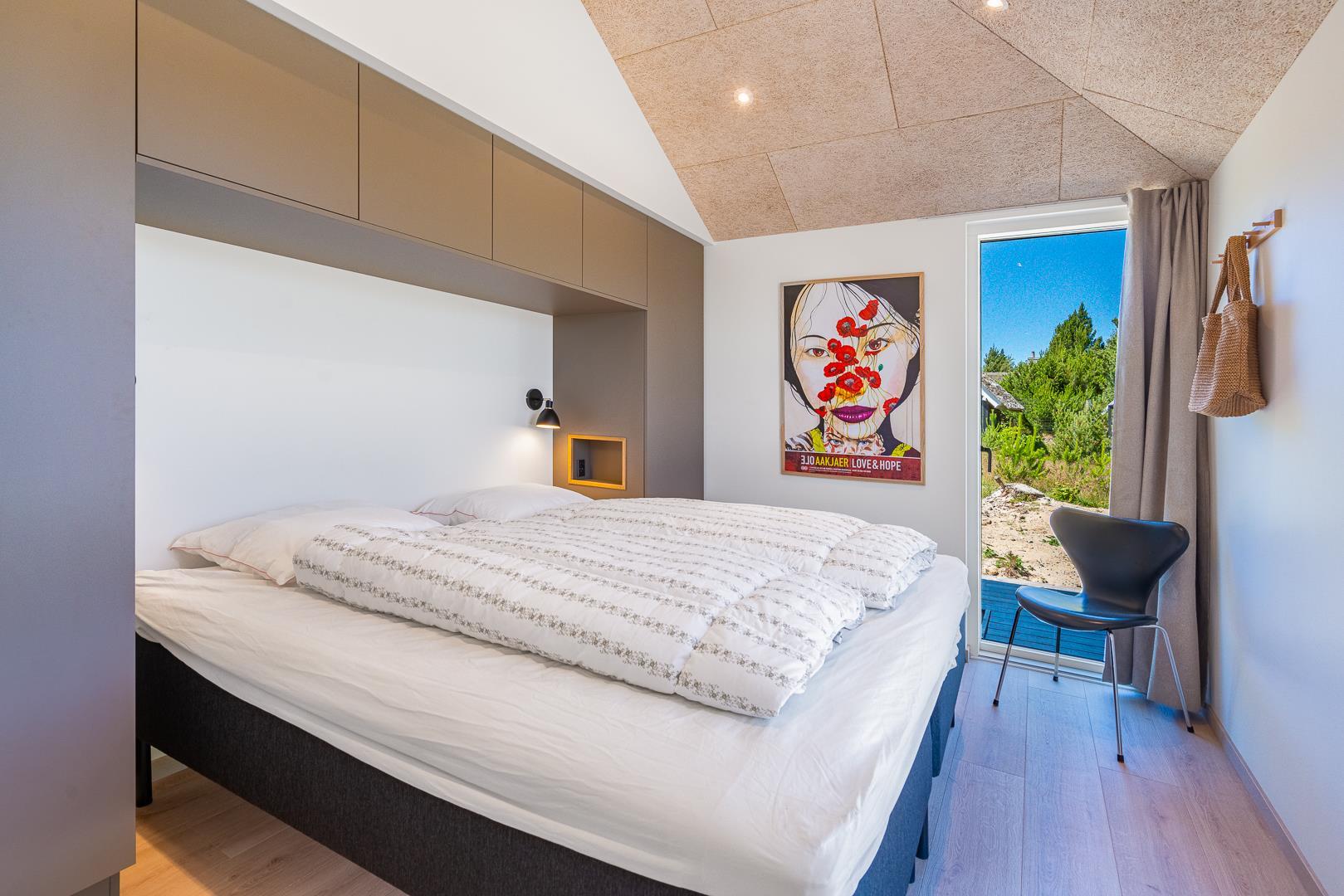 Sommerhuset rummer 4 soveværelser – alle med dobbeltsenge – samt 2 moderne badeværelser, så alle får både plads og komfort. Der er gulvvarme i hele sommerhuset, og opvarmningen sker via en energieffektiv varmepumpe, hvilket giver et behageligt indeklima året rundt.