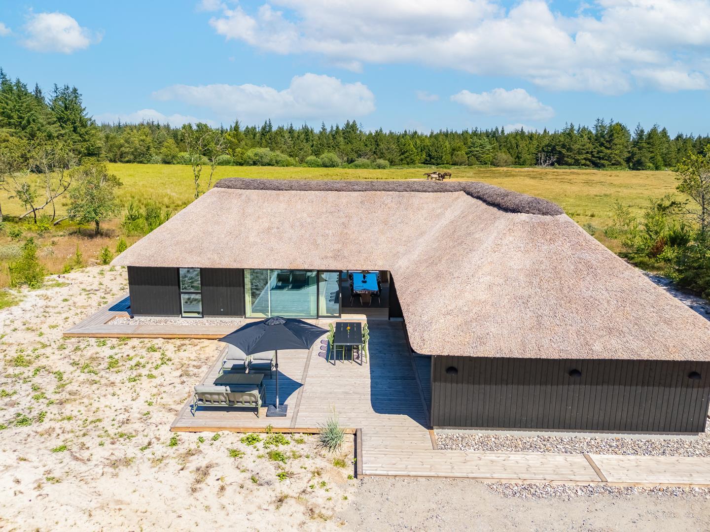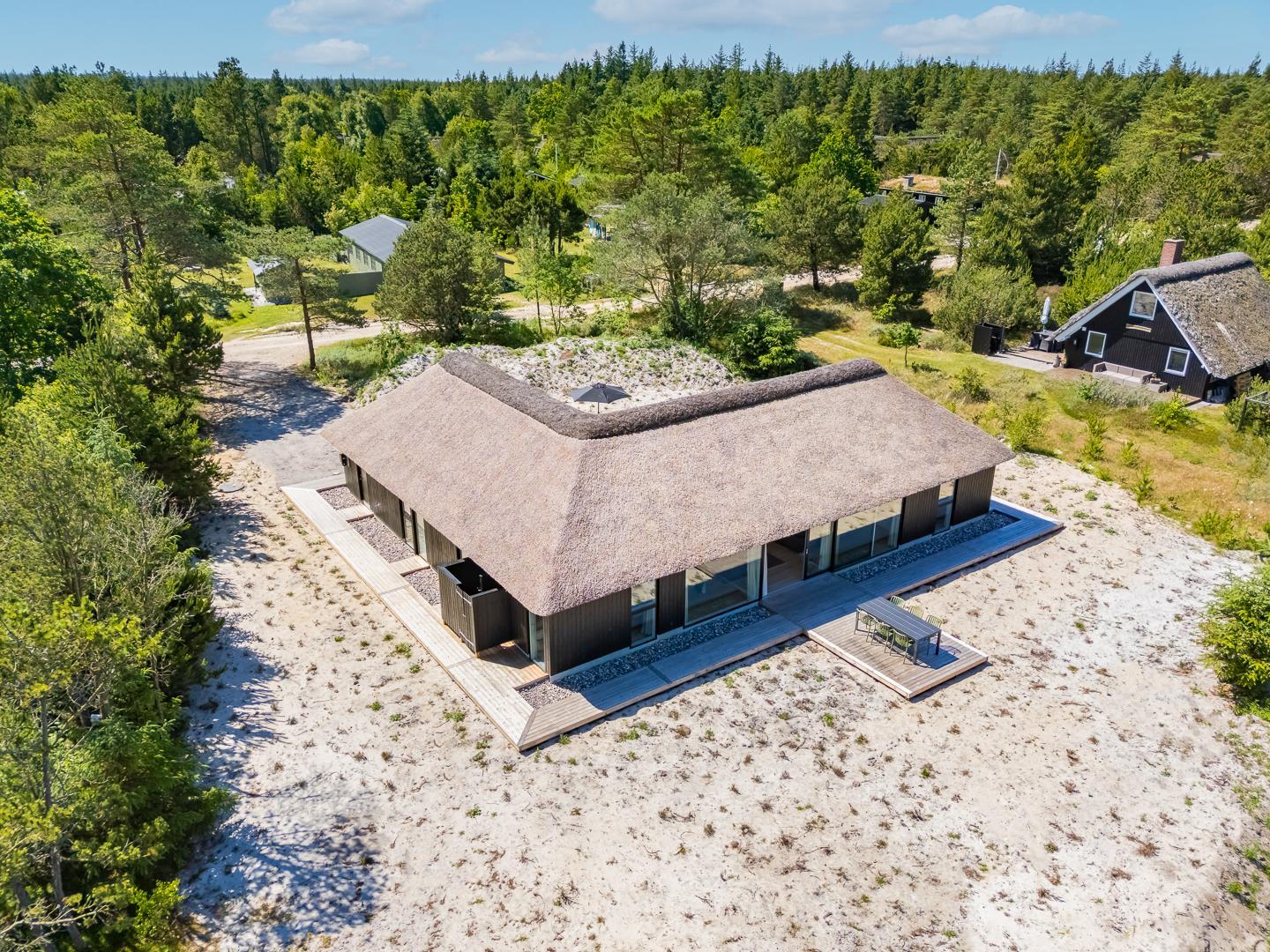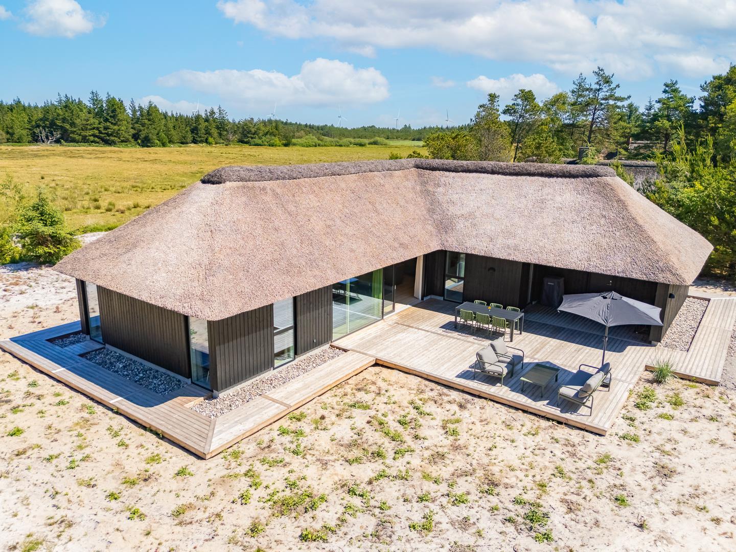 Her får I et sommerhus med eksklusiv indretning, gennemtænkte detaljer og en fantastisk placering midt i den vestjyske natur. Et oplagt valg til jer, der ønsker en komfortabel, afslappende og mindeværdig ferie ved Vesterhavet.