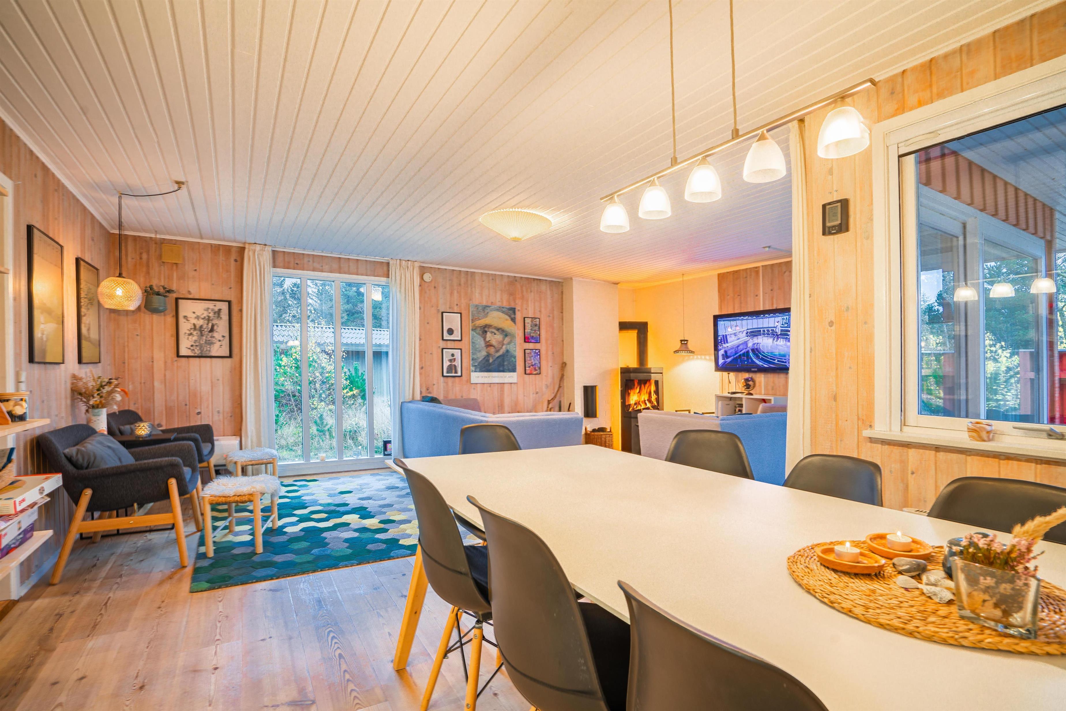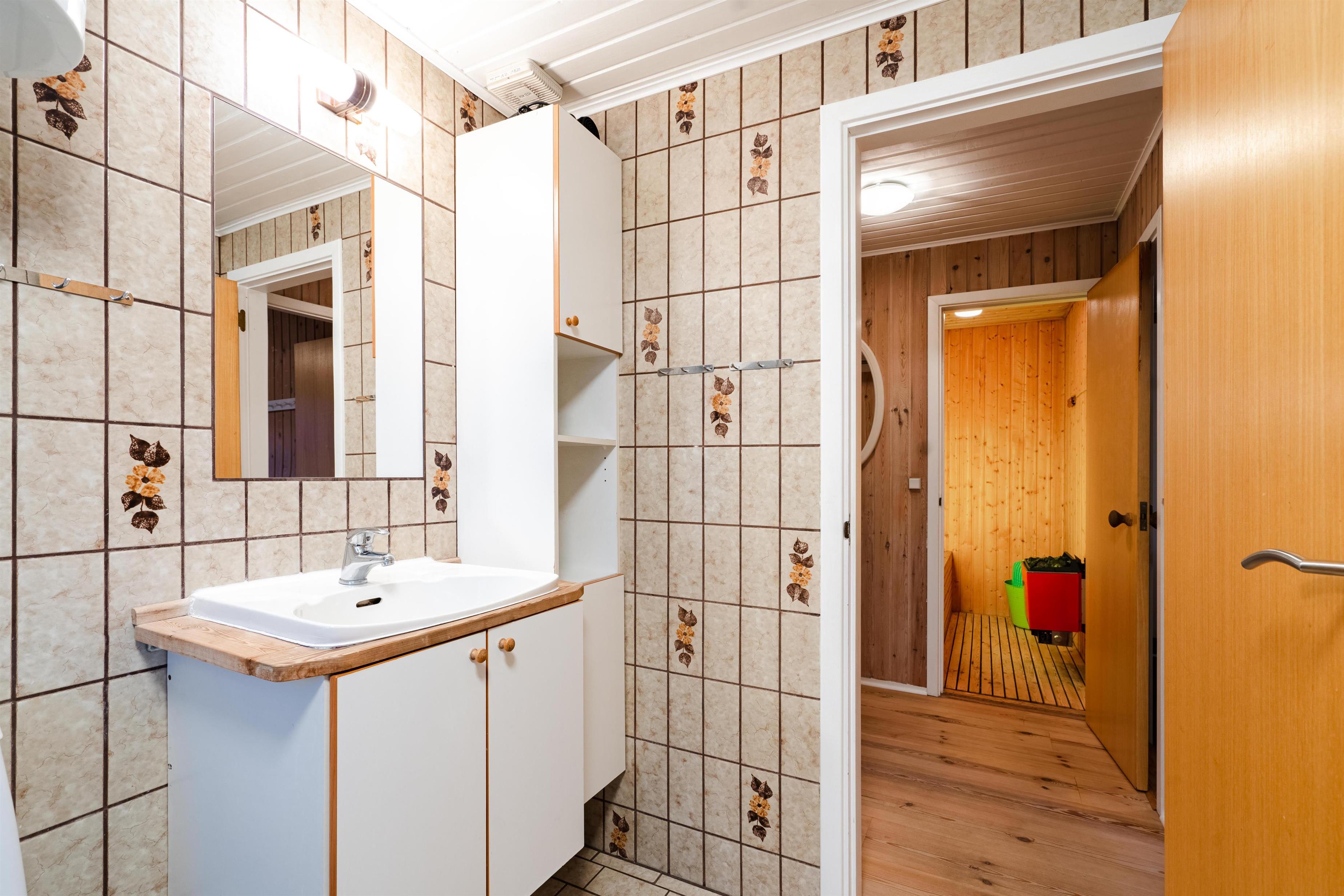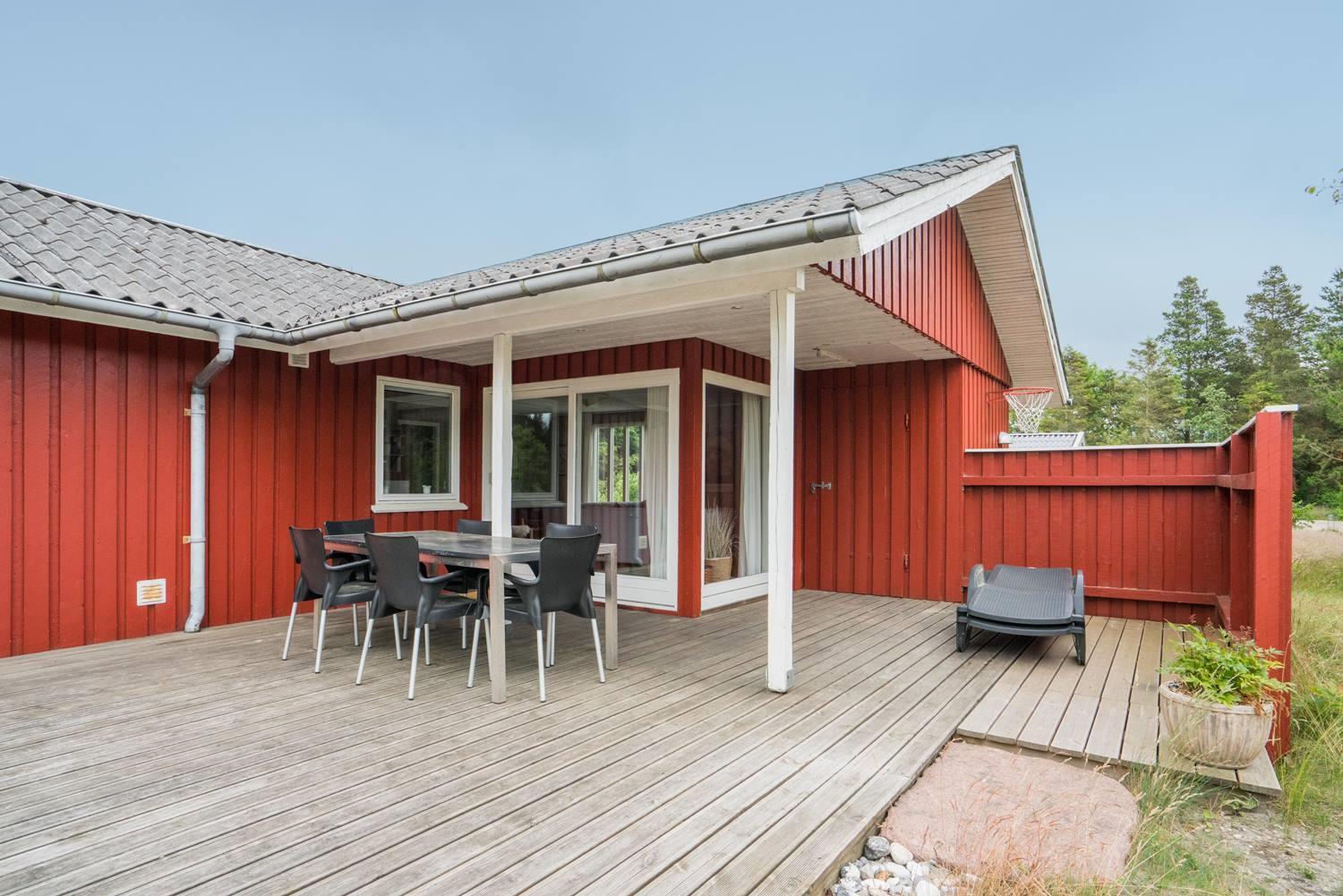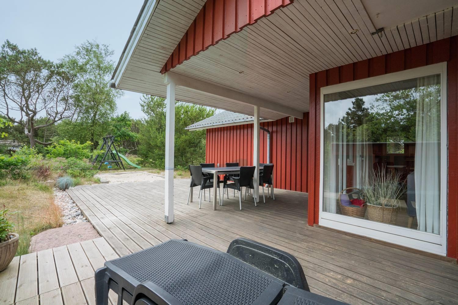 Separat stor sauna til dig, som nyder wellness i ferien. Hvis behovet byder sig, finder du vaskemaskine og tørretumbler i tilstødende skur. Bliver solen for stærk eller aftenen for kold, kan du søge ly under den overdækkede terrasse. Holder du ferie med børn, vil de kunne boltre sig på grunden med gynger, sandkasse og trampolin (eget ansvar). Grunden er vel beplantet og du befinder dig midt i naturen. Huset er generelt moderniseret og du vil straks føle dig hjemme.