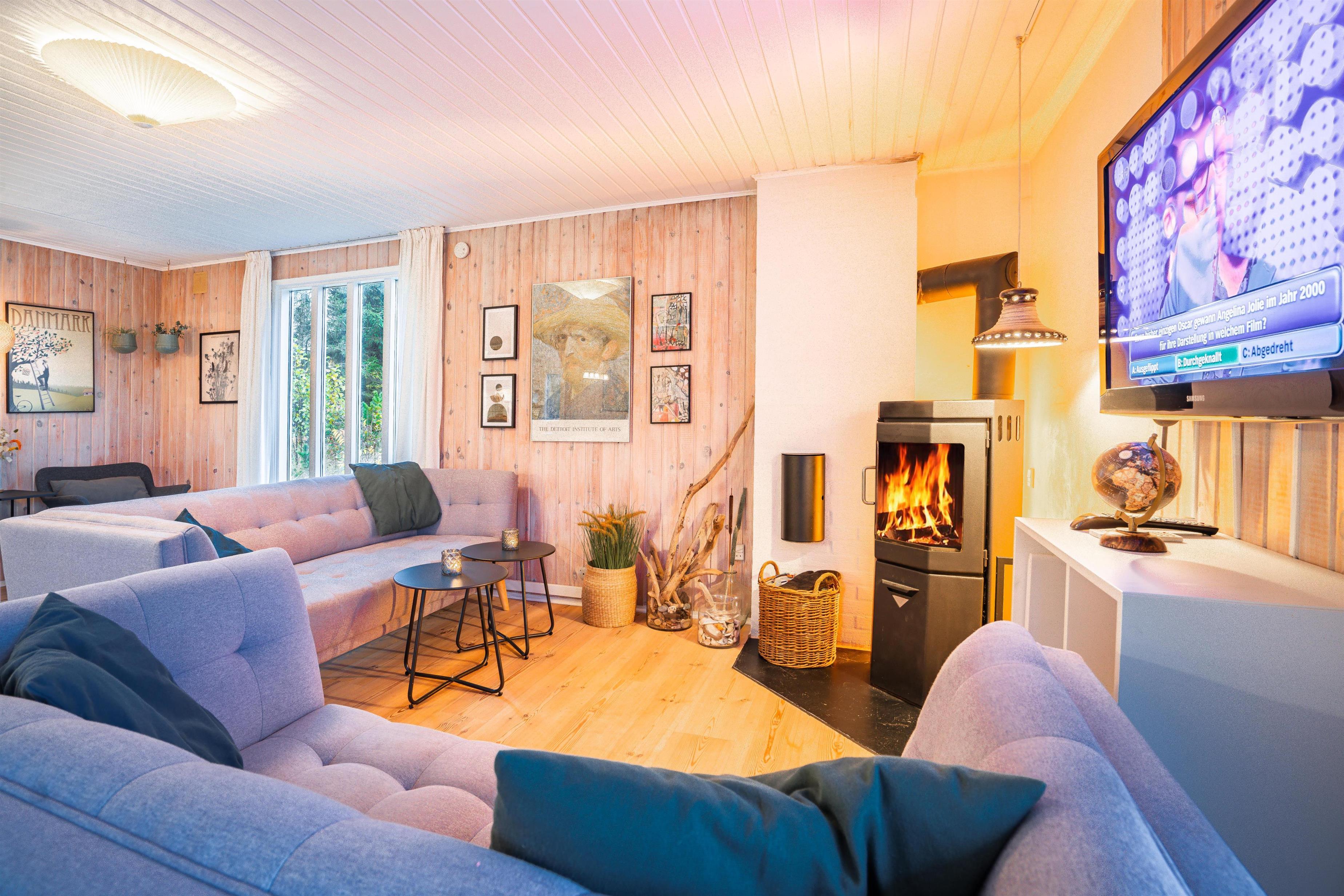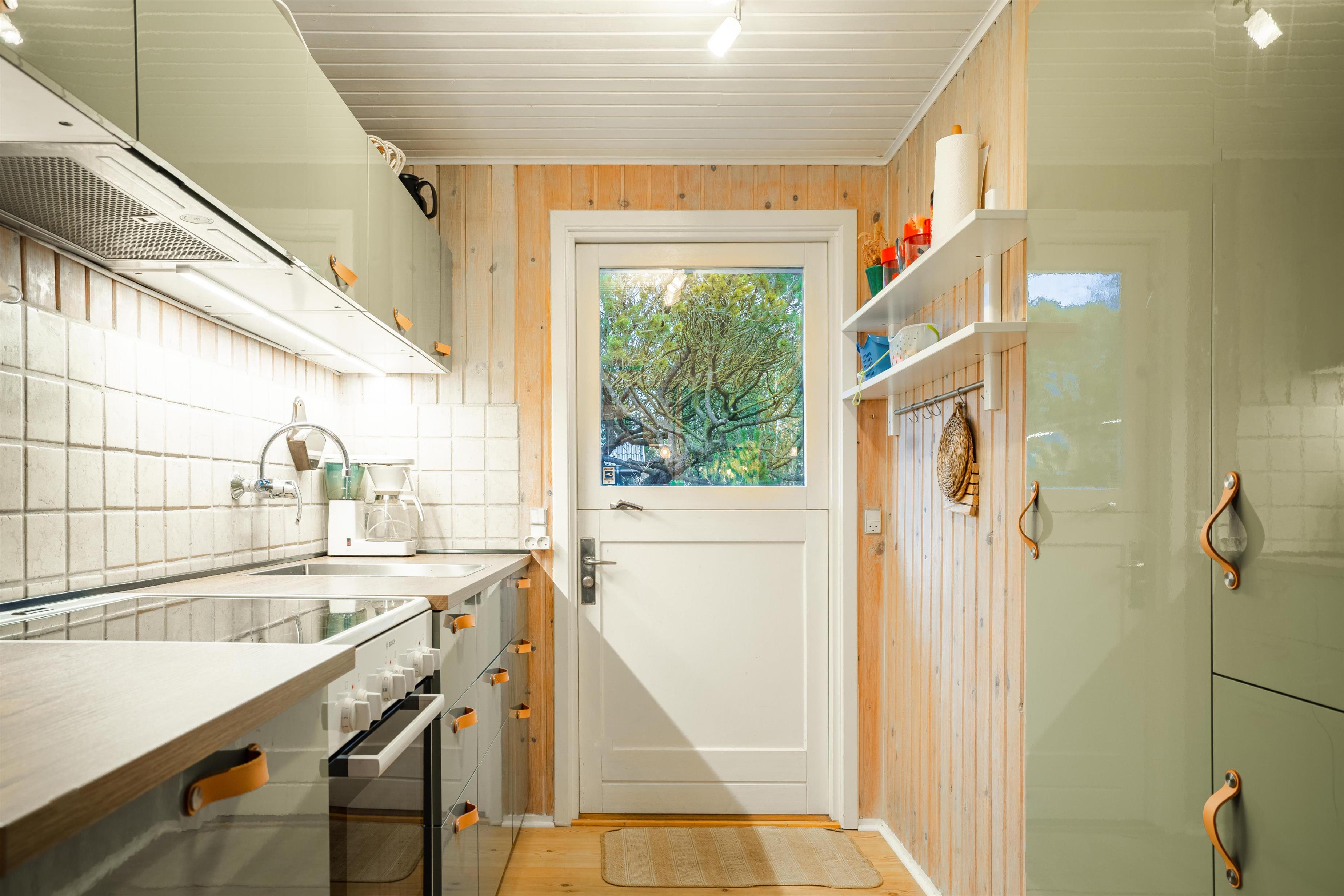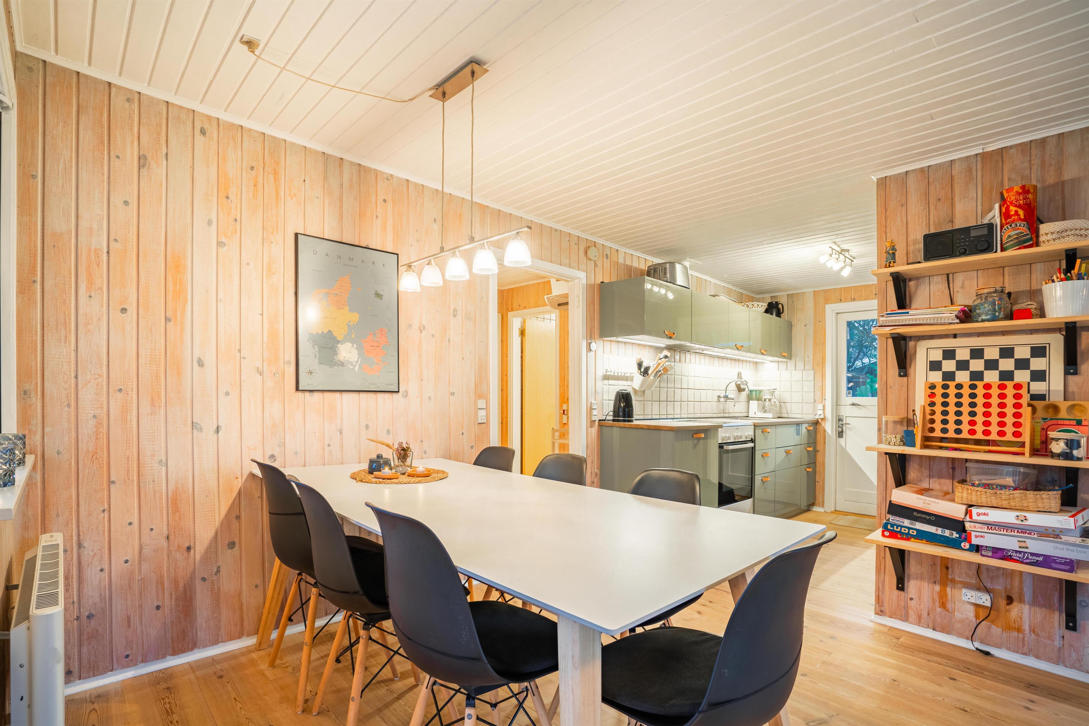 Separat stor sauna til dig, som nyder wellness i ferien. Hvis behovet byder sig, finder du vaskemaskine og tørretumbler i tilstødende skur. Bliver solen for stærk eller aftenen for kold, kan du søge ly under den overdækkede terrasse. Holder du ferie med børn, vil de kunne boltre sig på grunden med gynger, sandkasse og trampolin (eget ansvar). Grunden er vel beplantet og du befinder dig midt i naturen. Huset er generelt moderniseret og du vil straks føle dig hjemme.