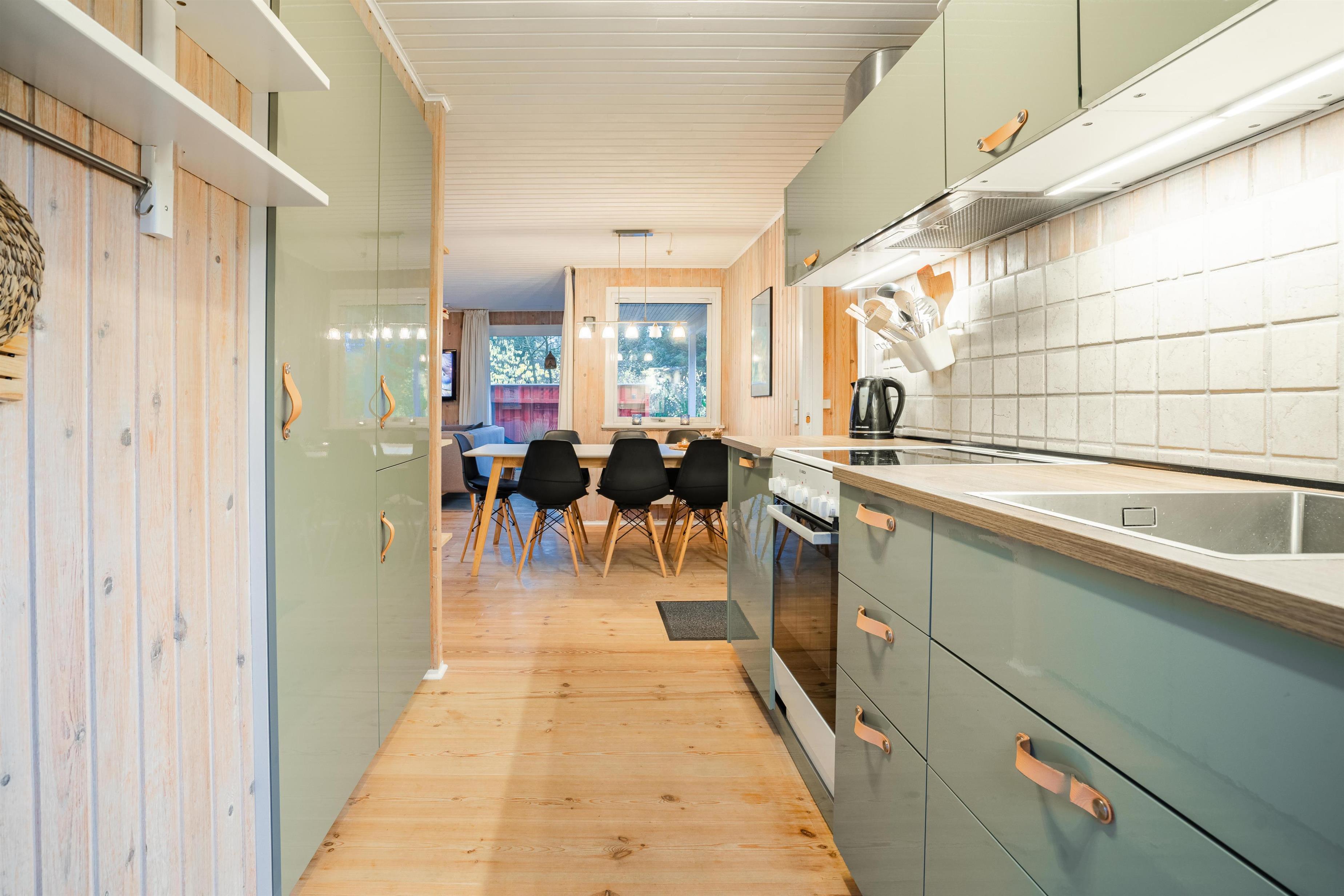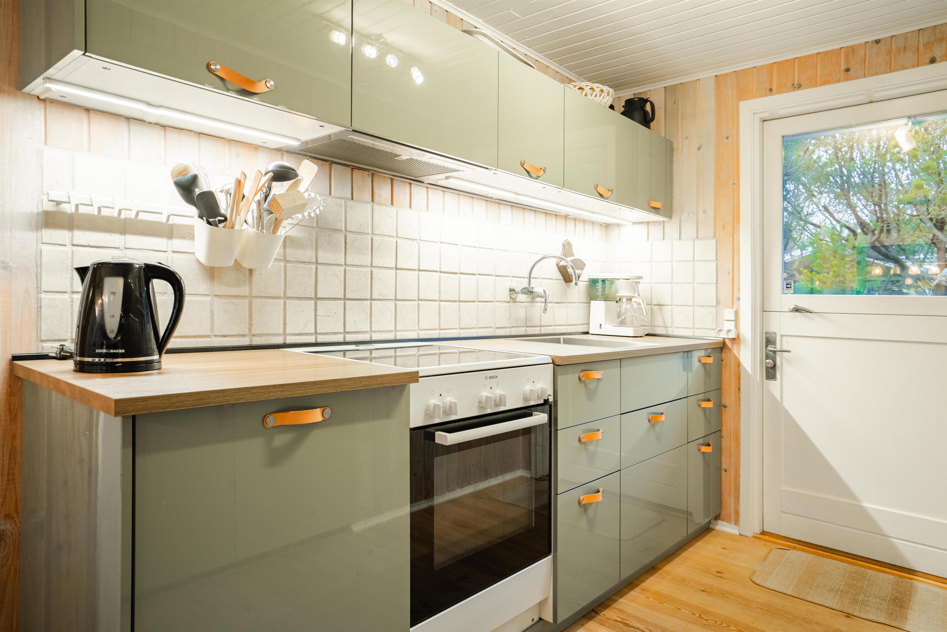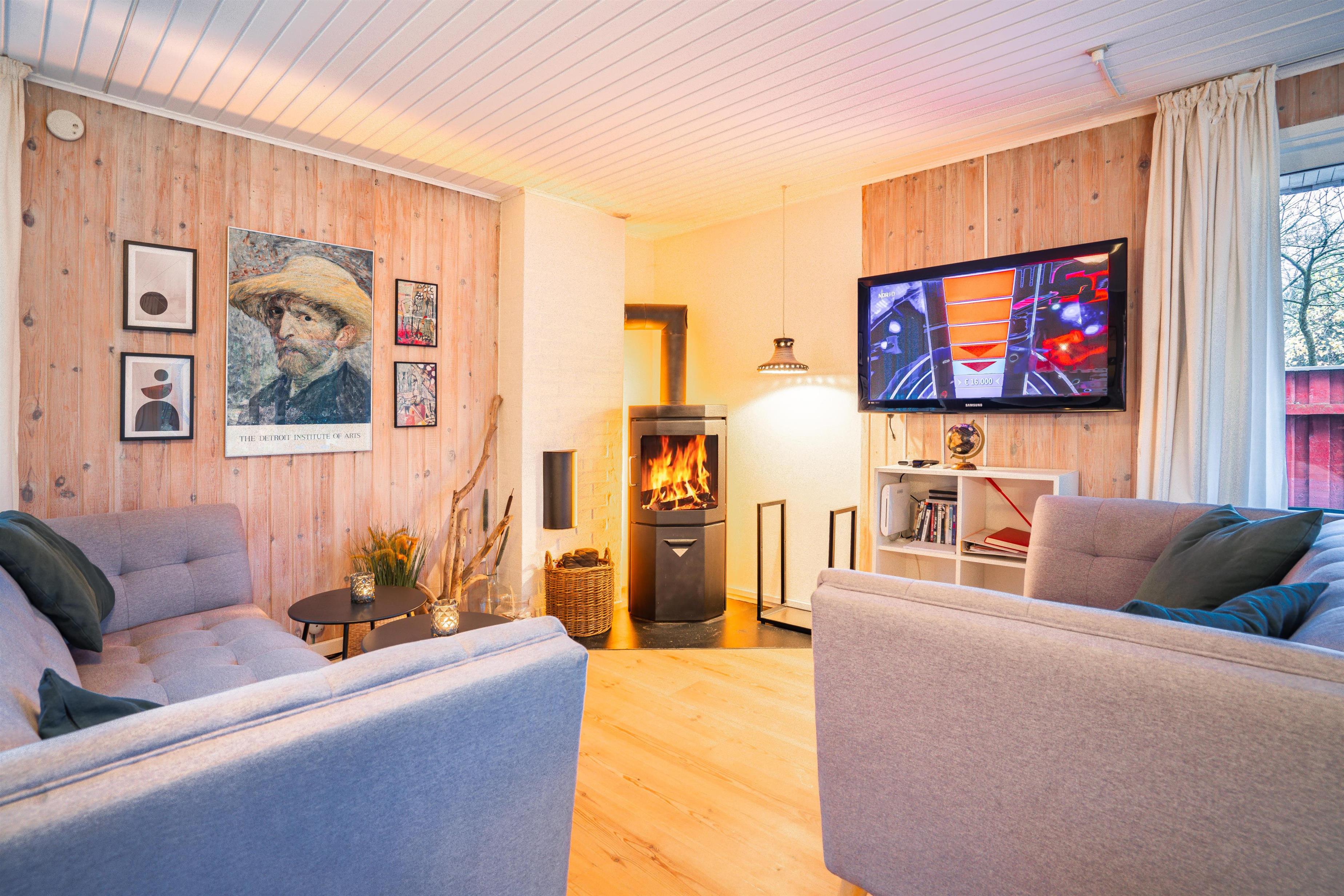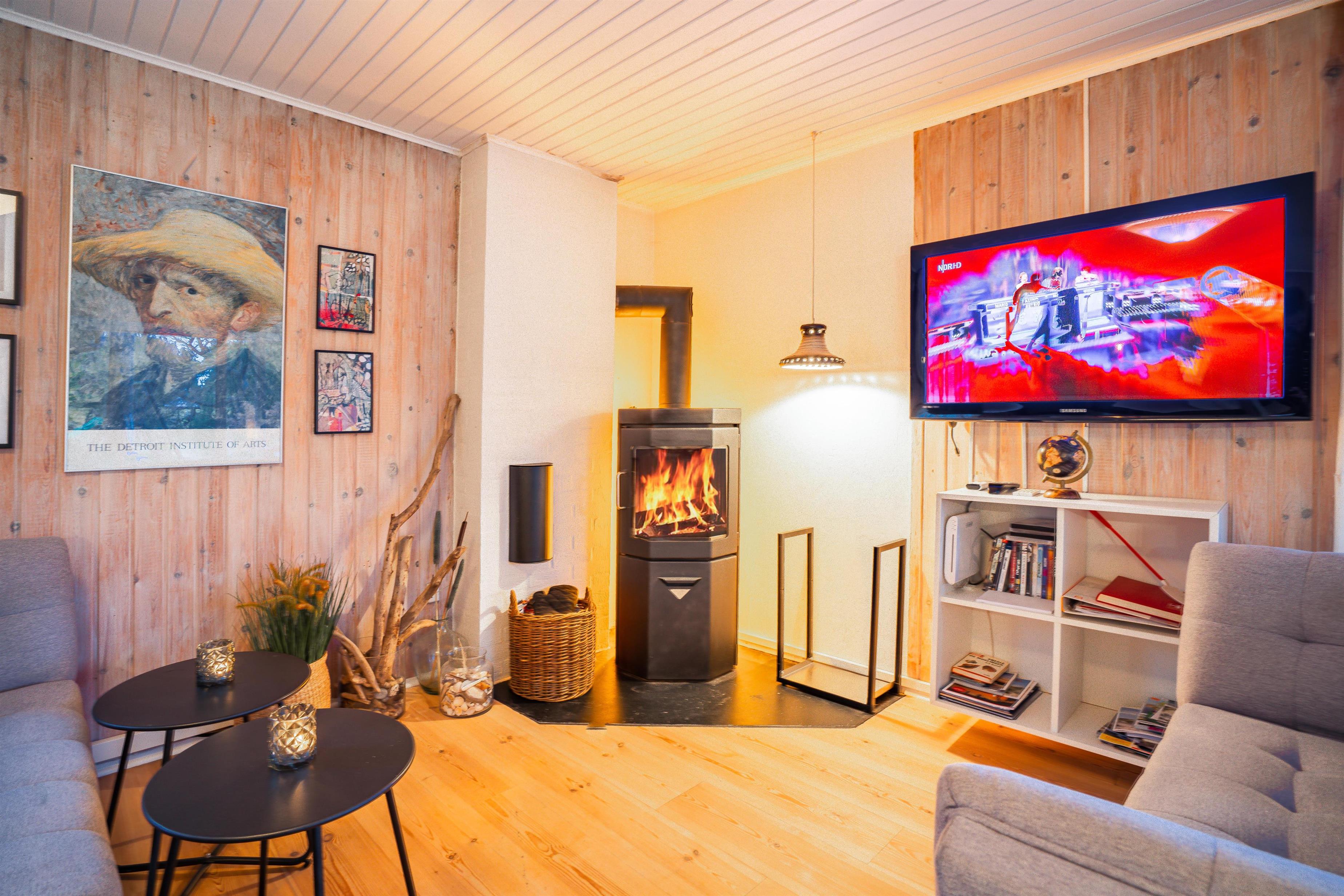 Separat stor sauna til dig, som nyder wellness i ferien. Hvis behovet byder sig, finder du vaskemaskine og tørretumbler i tilstødende skur. Bliver solen for stærk eller aftenen for kold, kan du søge ly under den overdækkede terrasse. Holder du ferie med børn, vil de kunne boltre sig på grunden med gynger, sandkasse og trampolin (eget ansvar). Grunden er vel beplantet og du befinder dig midt i naturen. Huset er generelt moderniseret og du vil straks føle dig hjemme.