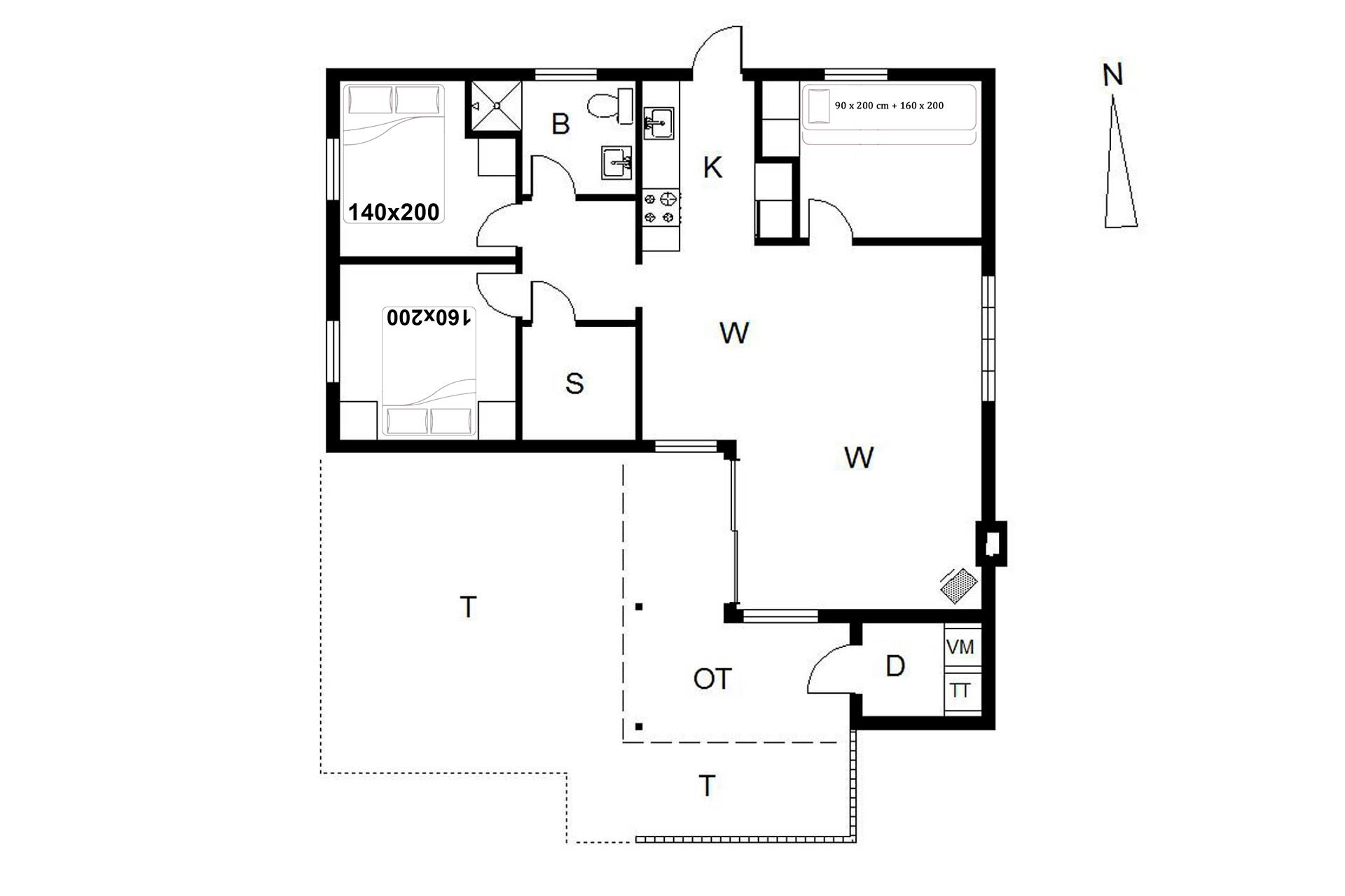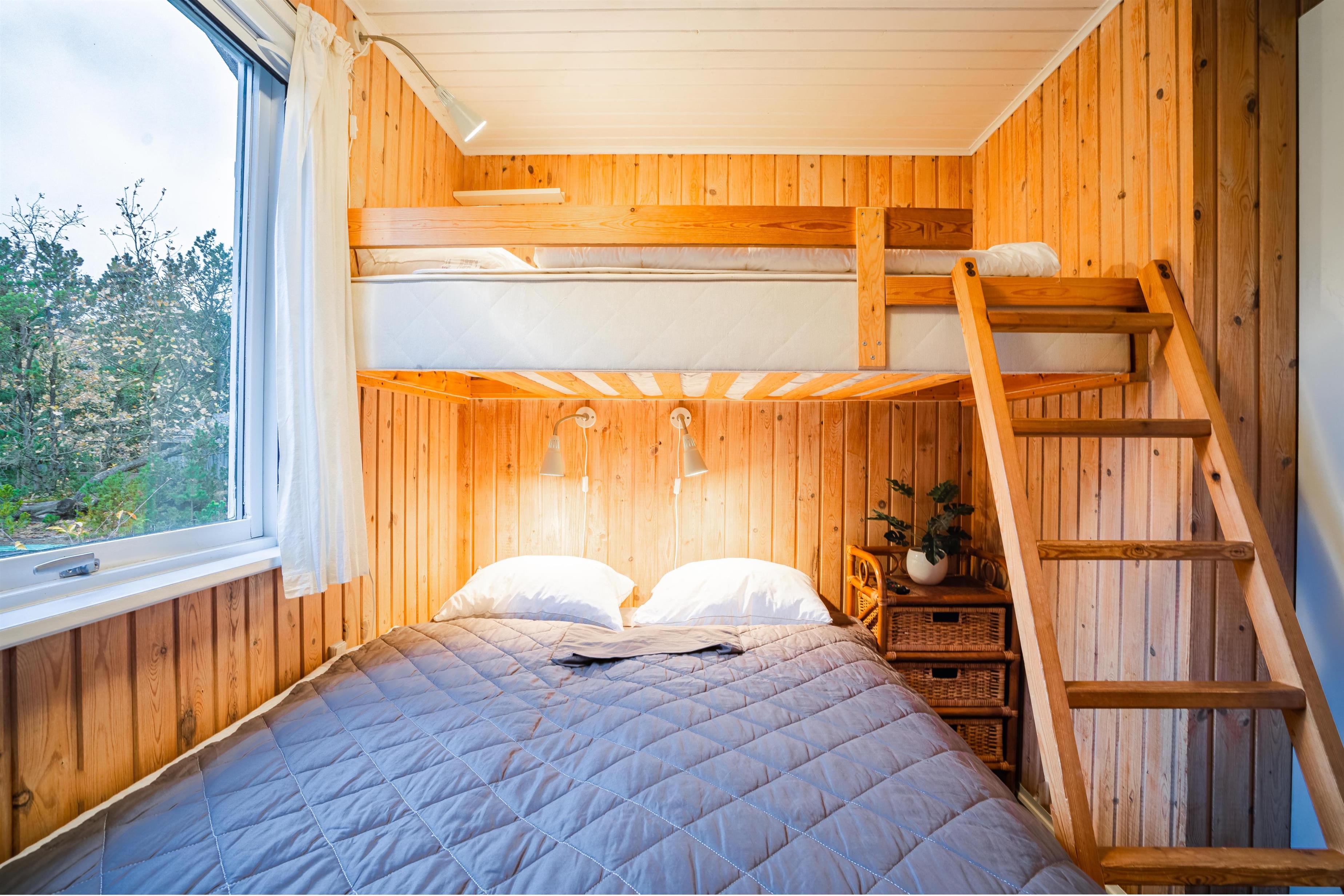 Sengestørrelse: 1 dobbeltseng 160 x 200 cm + 1 dobbeltseng 140 x 200 cm + 1 køjeseng med overkøjen på 90 x 200 cm og underkøjen 160 x 200 cm.