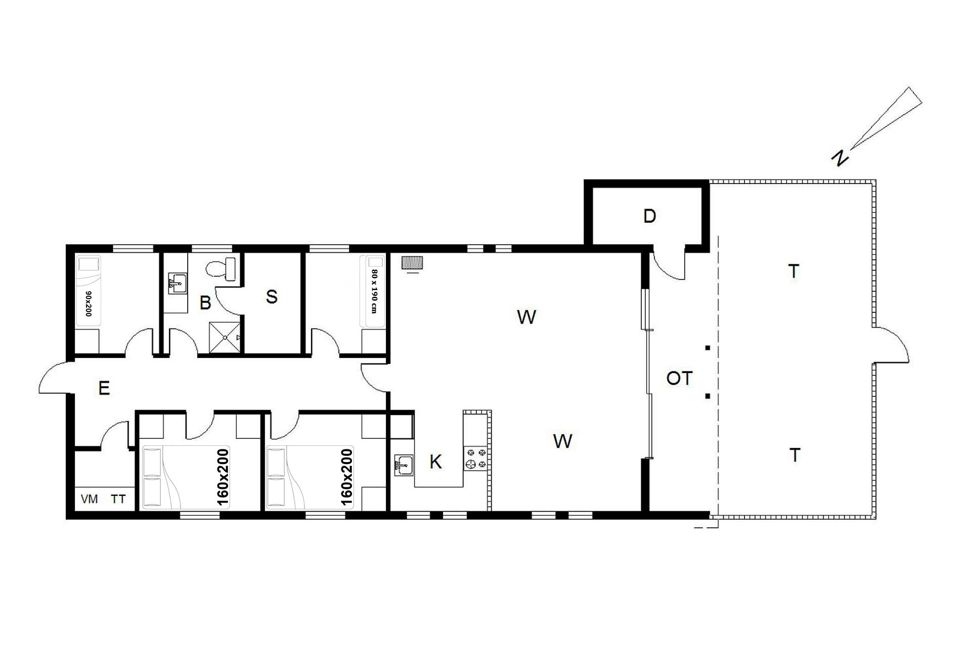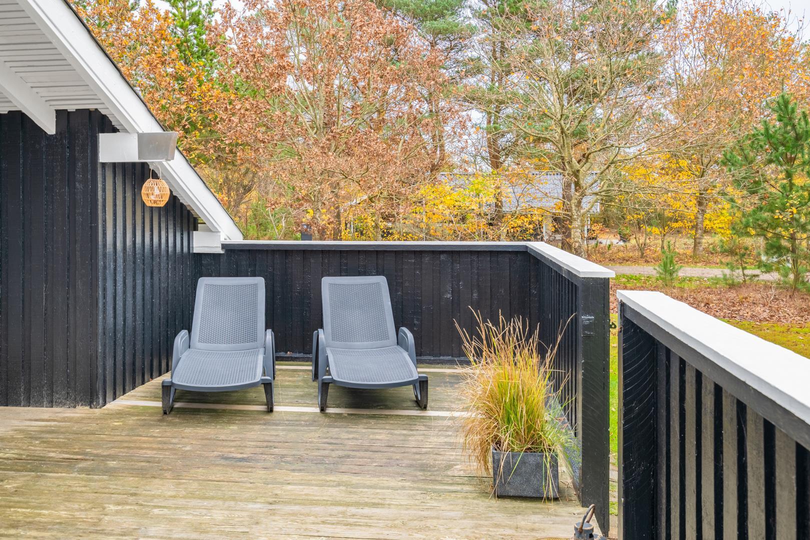 Fra stuen er der udgang til en stor træterrasse med delvis overdækning, liggestole og havemøbler – perfekt til udeliv hele dagen. Grunden er ideel til leg og afslapning i trygge omgivelser. Området omkring Houstrup byder på gode gåture og masser af natur lige uden for døren - og Henne Strand ligger kun 15 minutters kørsel derfra.
