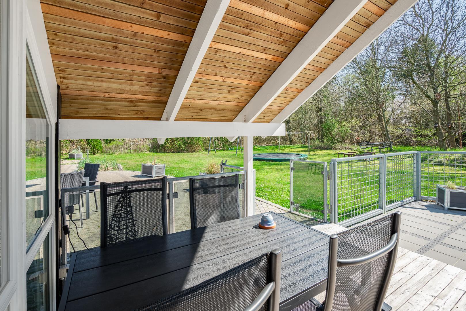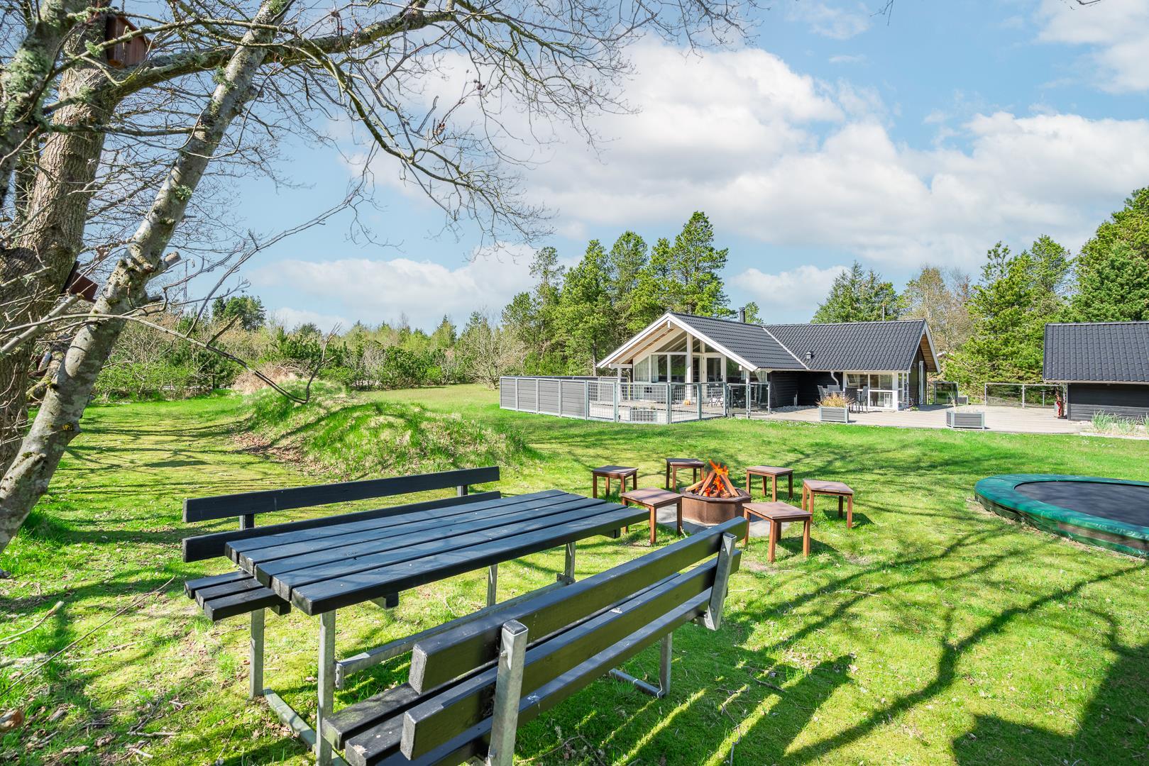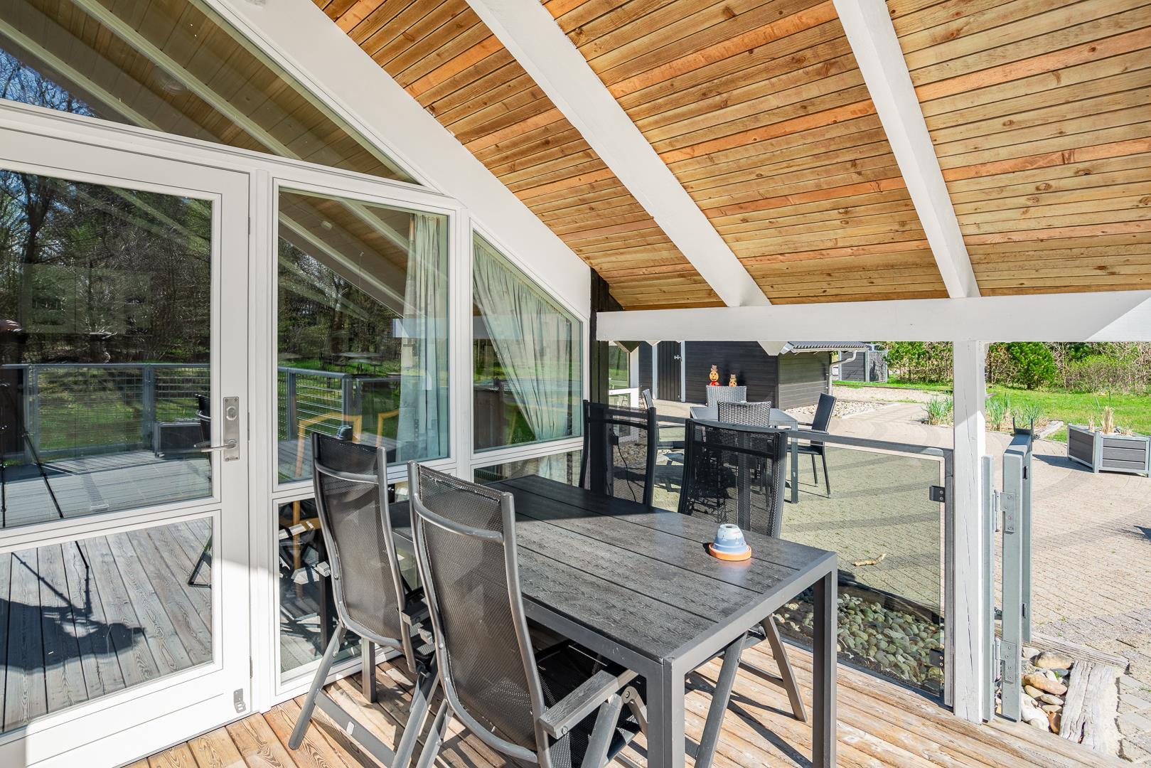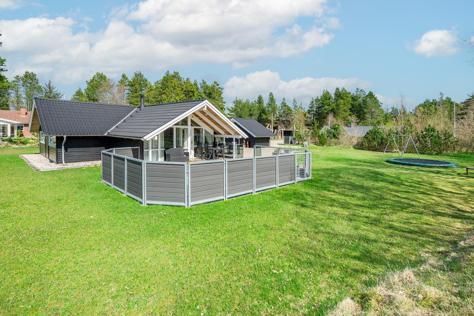 For ende af lille vejl, ligger dette personlige og velholdte feriehus. På grunden er der bålplads og trampolin. Terrassen er indhegnet, så der er styr på hunde og børn. En del af terrassen er overdækket og aftener kan herved forlænges på en dejlig sommerdag. Rummeligt hus med 3 gode soverum med dobbeltsenge, 2 værelser har elevationssenge - 2 badeværelser - begge med gulvvarme - det ene med spa og sauna. Hyggelig stue med TV, brændeovn og varmepumpe, som sparer på el regningen og giver et godt indeklima.