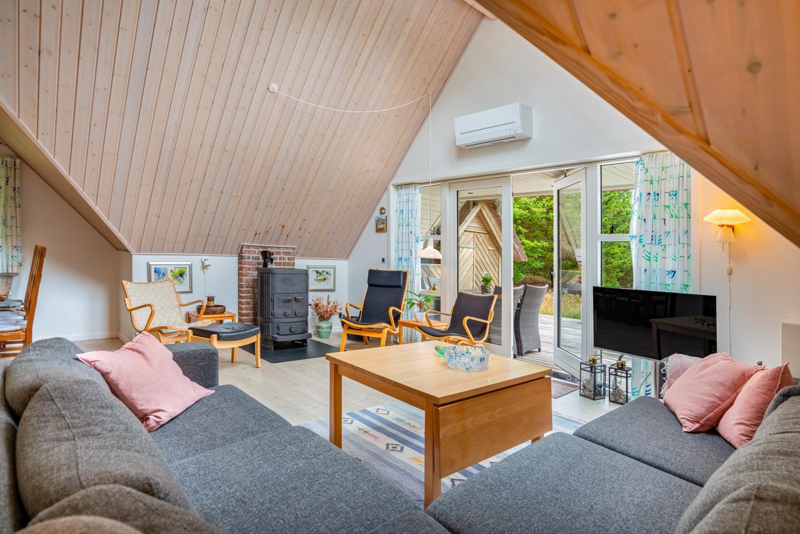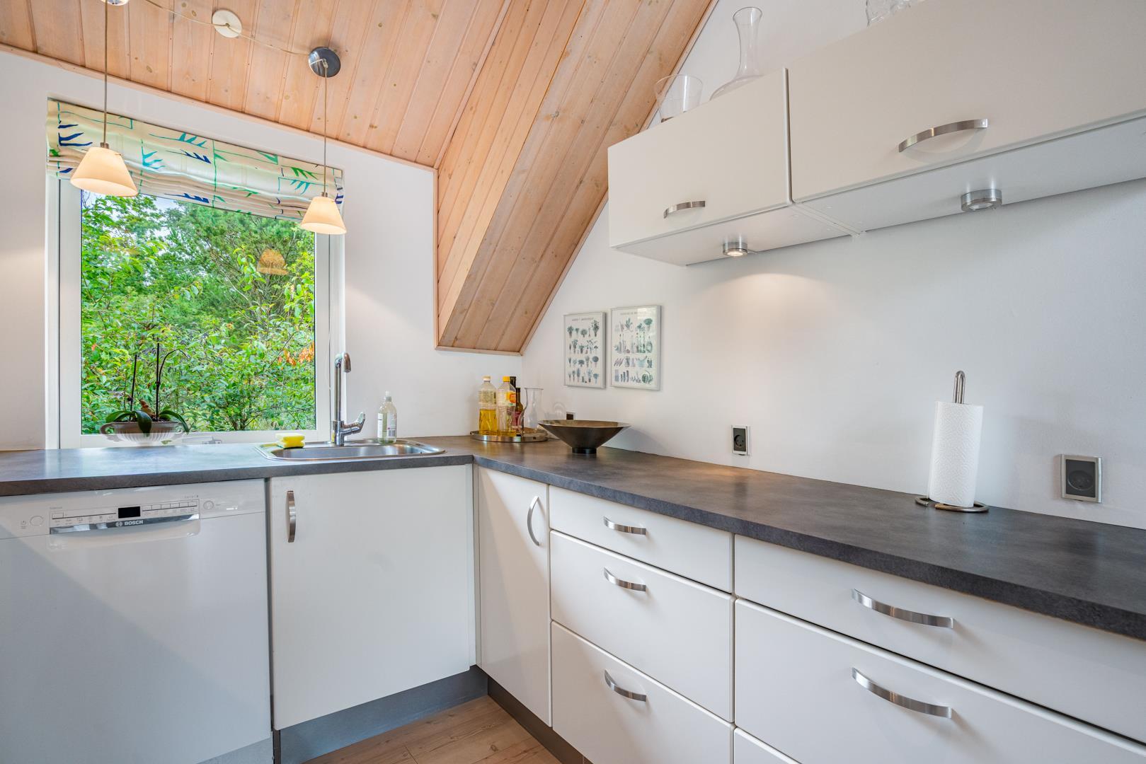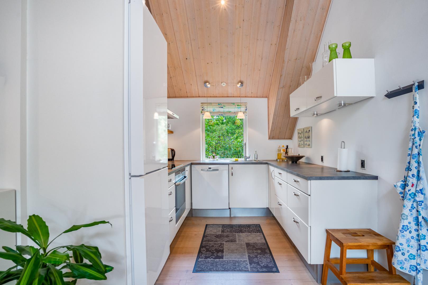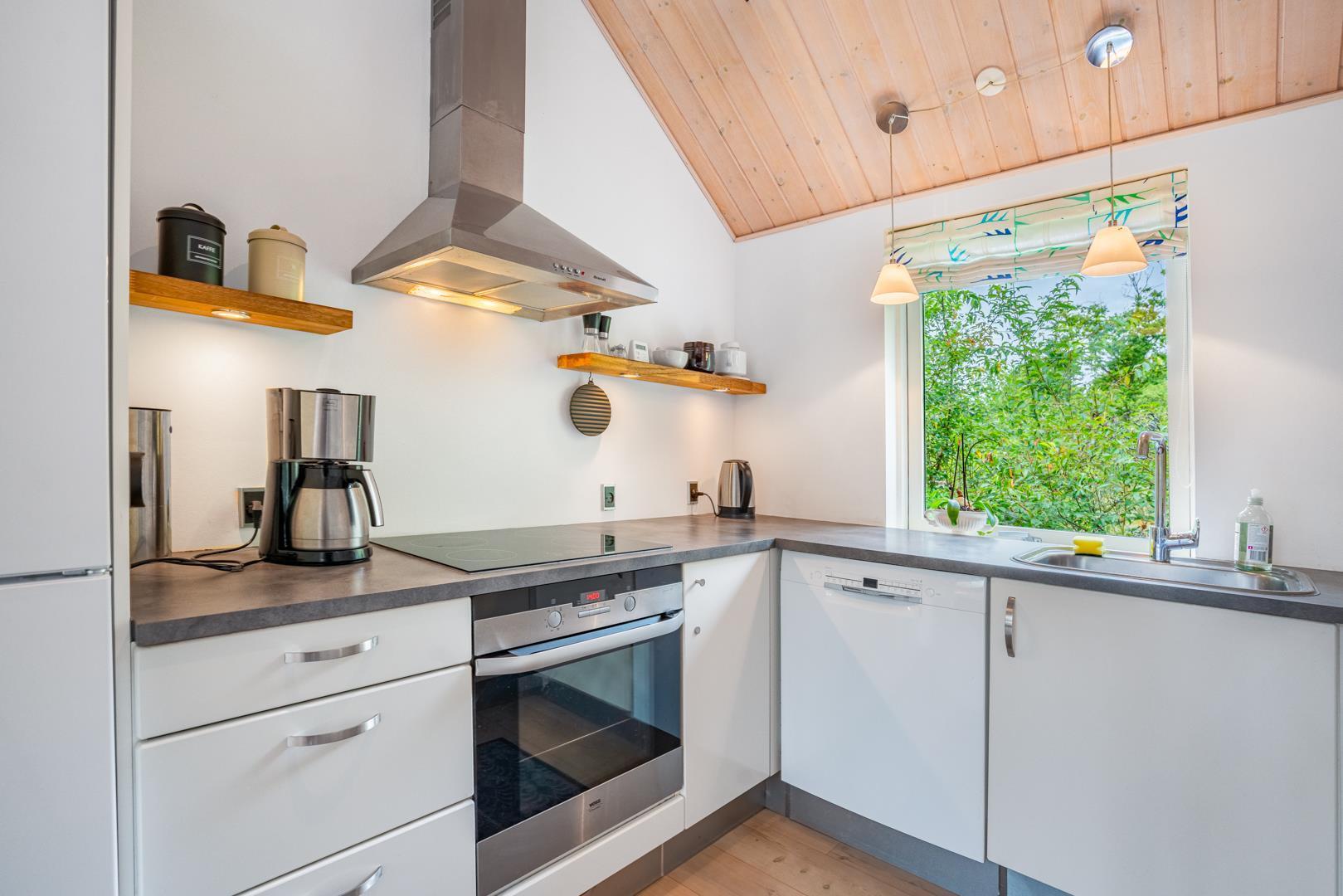 Det åbne køkken er fuldt udstyret og gør det nemt at lave alt fra hurtige snacks til fælles aftensmad. Opvaskemaskinen tager sig af opvasken, så I kan bruge tiden på det vigtige: samvær og afslapning.