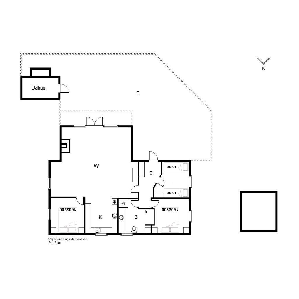 Sengestørrelse: 2 dobbeltsenge 160 x 200 cm + 2 enkeltsenge 80 x 200 cm.
