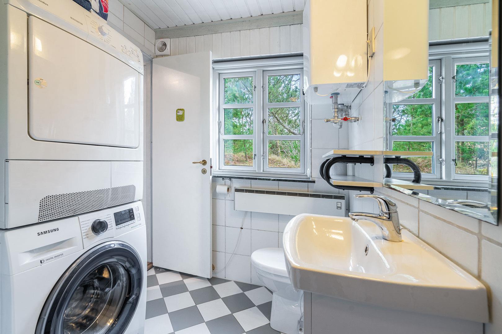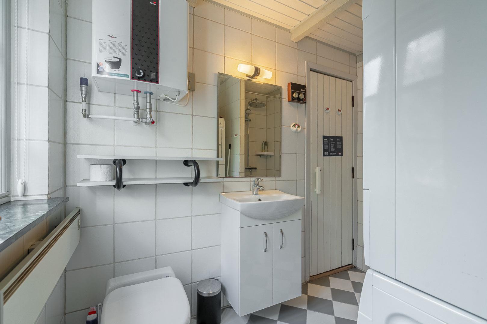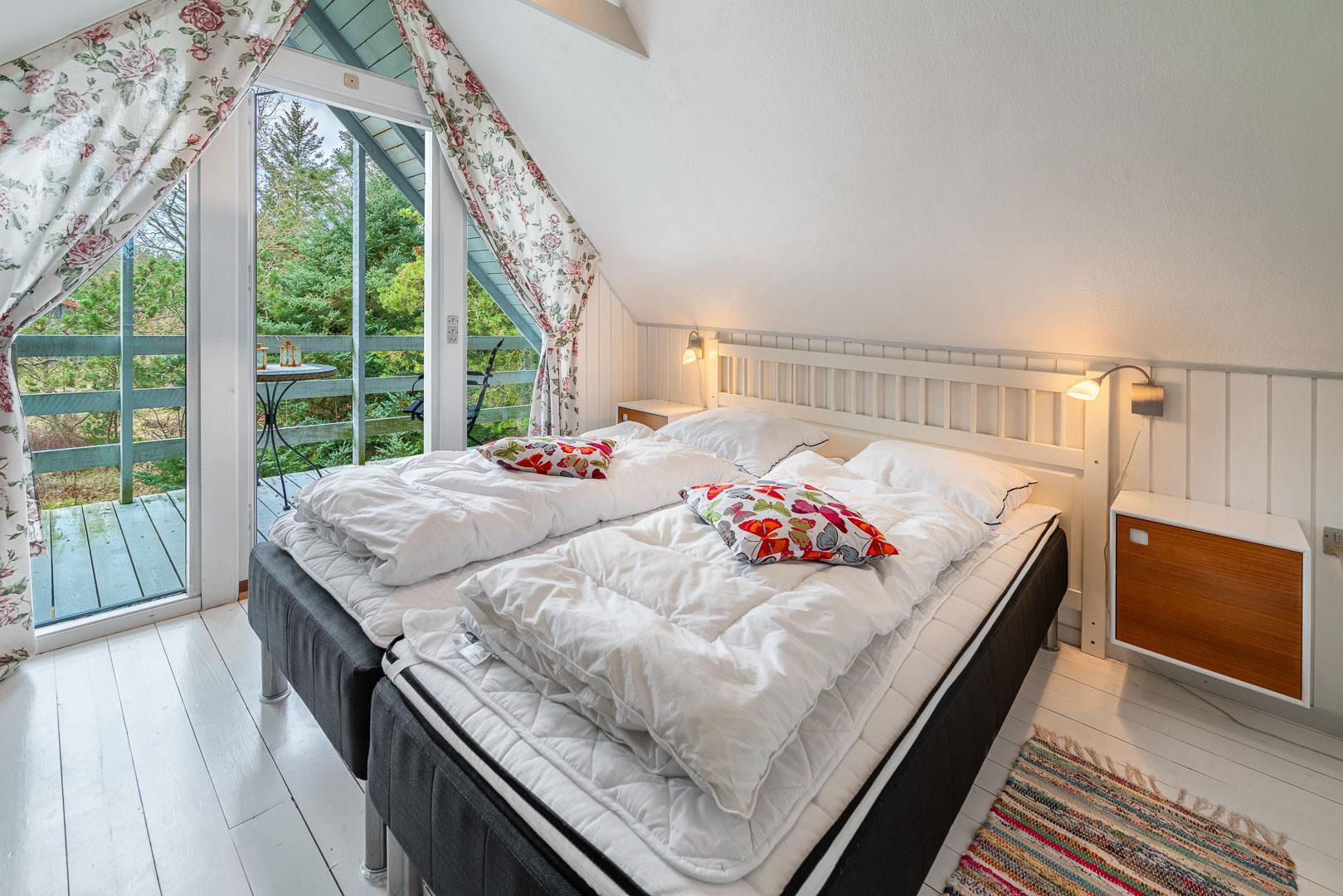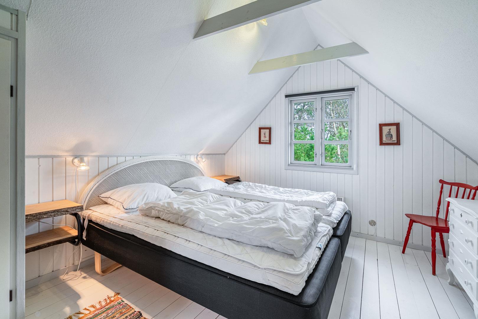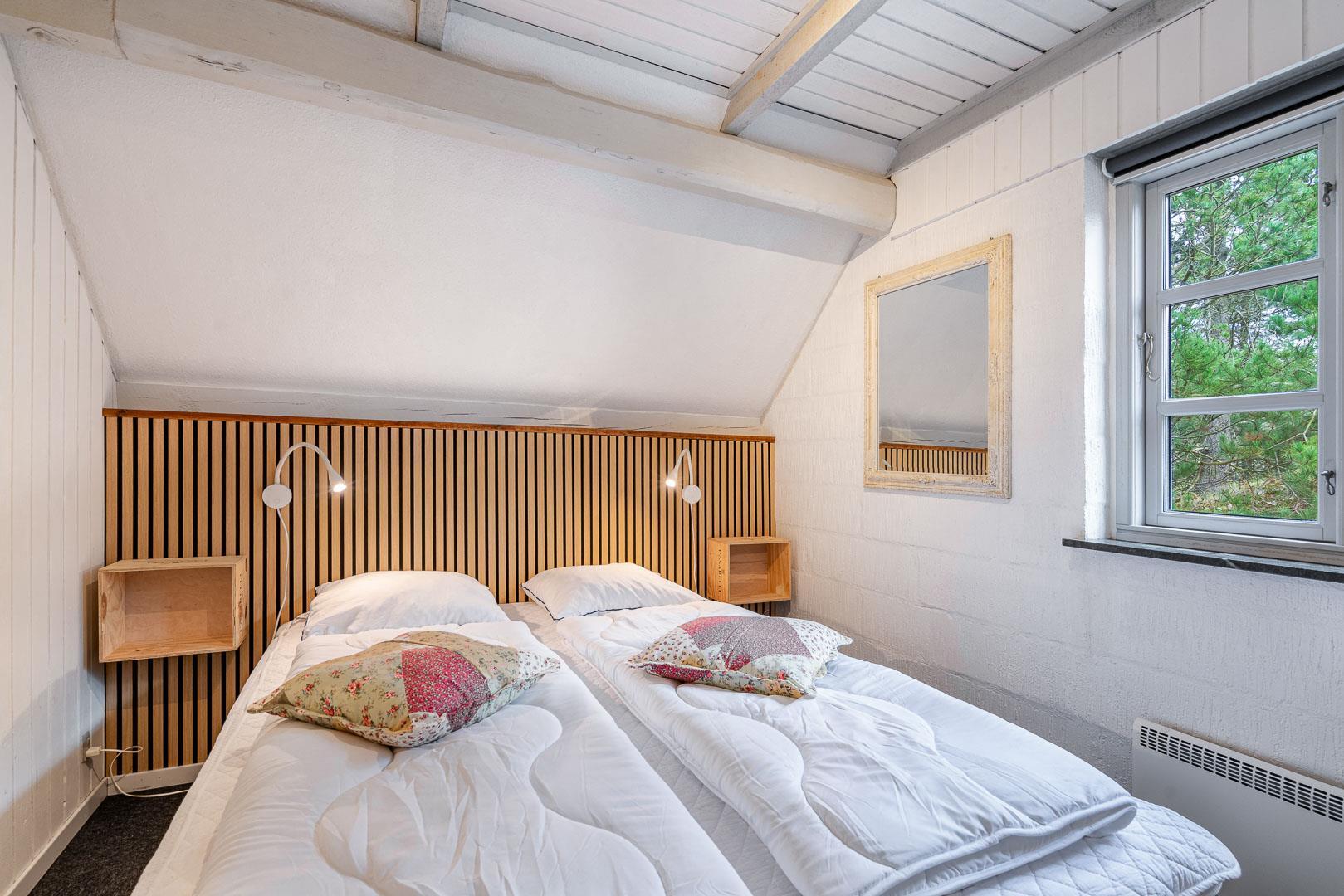 De 3 soveværelser rummer i alt 3 dobbeltsenge (1 x 90x200, 2 x 80x200), og det stilrene badeværelse har både gulvvarme og en skøn sauna – perfekt efter en tur i klitterne. Vaskemaskine og tørretumbler er der naturligvis også.