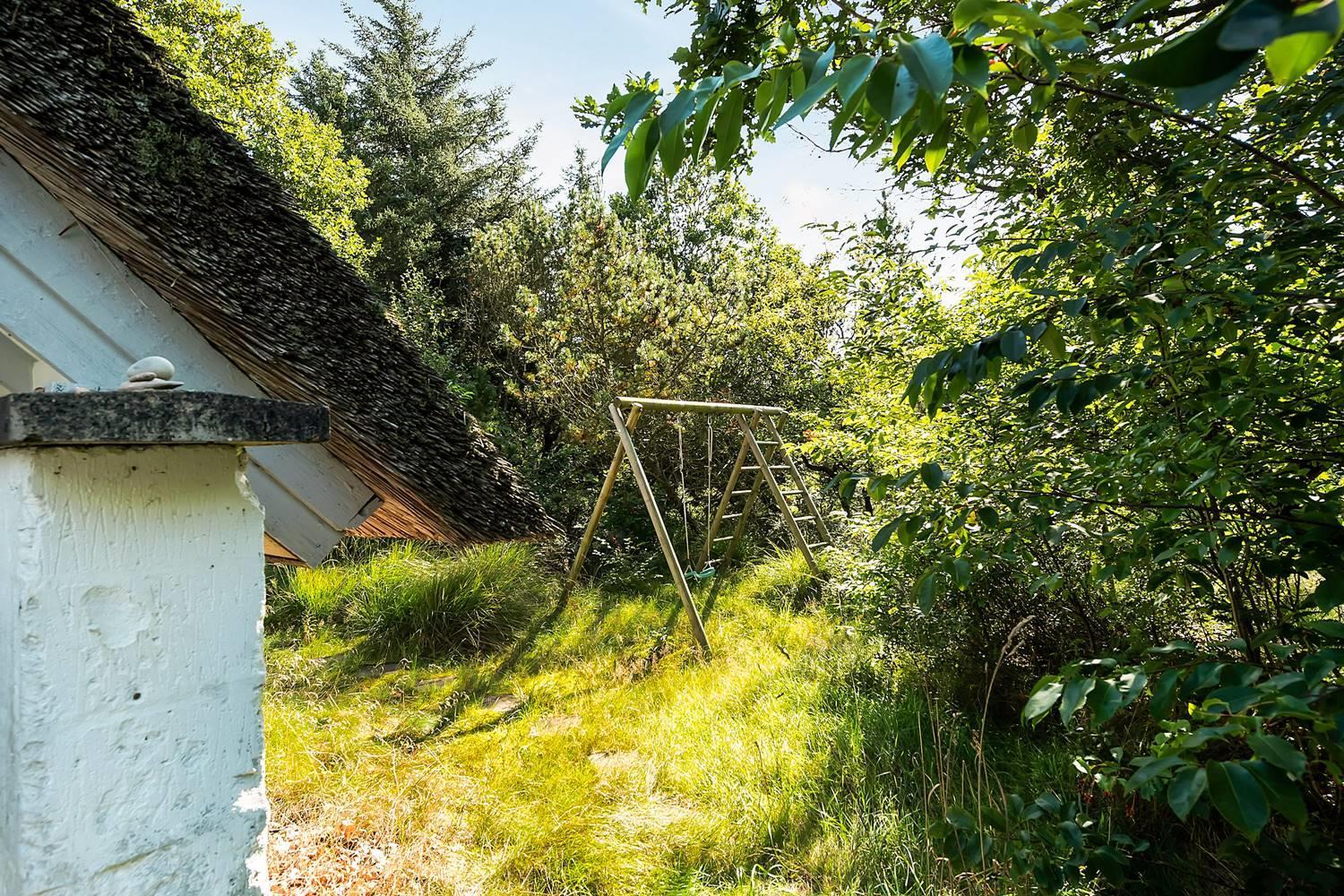 Nyd solen (eller læ for regnen) på den overdækkede terrasse, mens børnene leger i gyngen og sandkassen. Masser af plads i haven til både boldspil og afslapning.