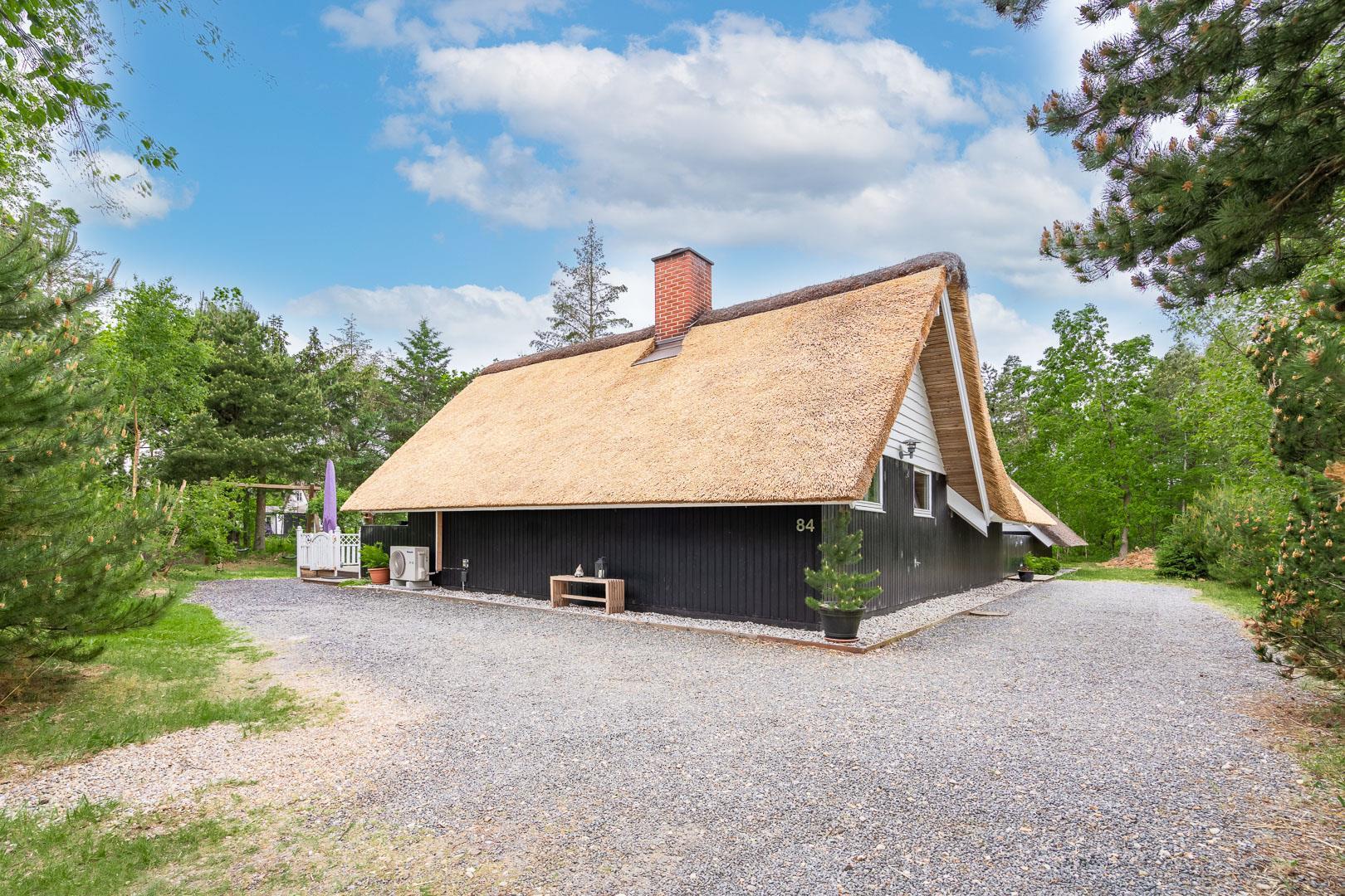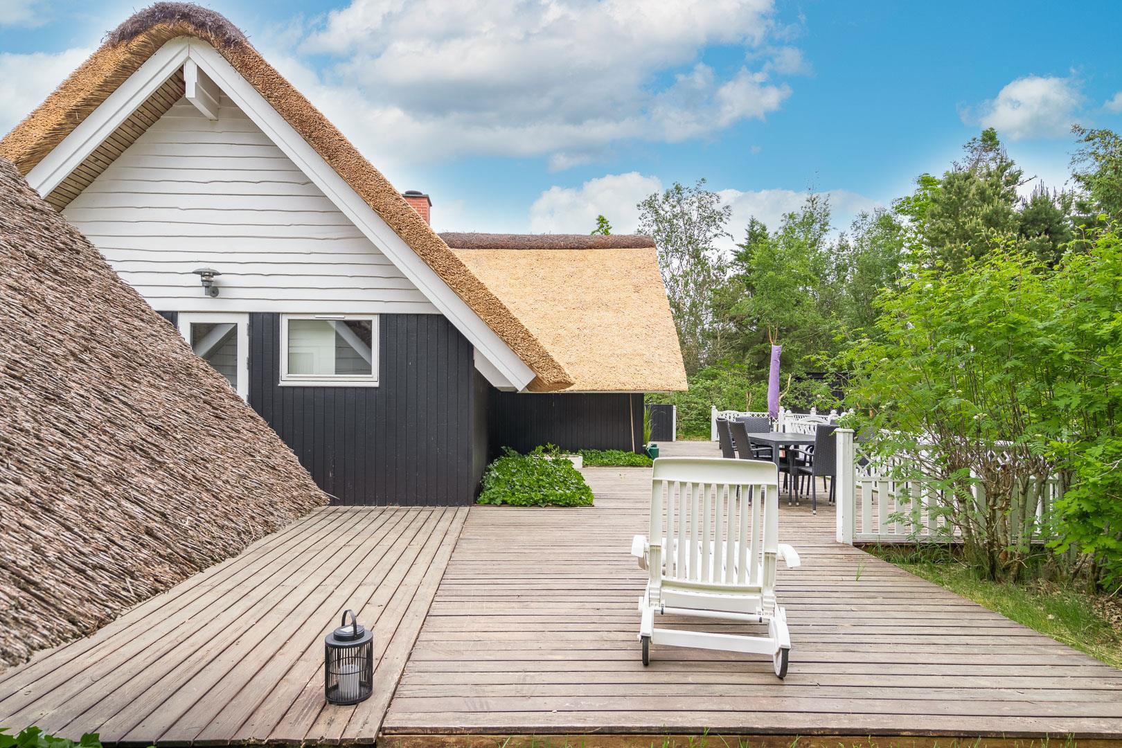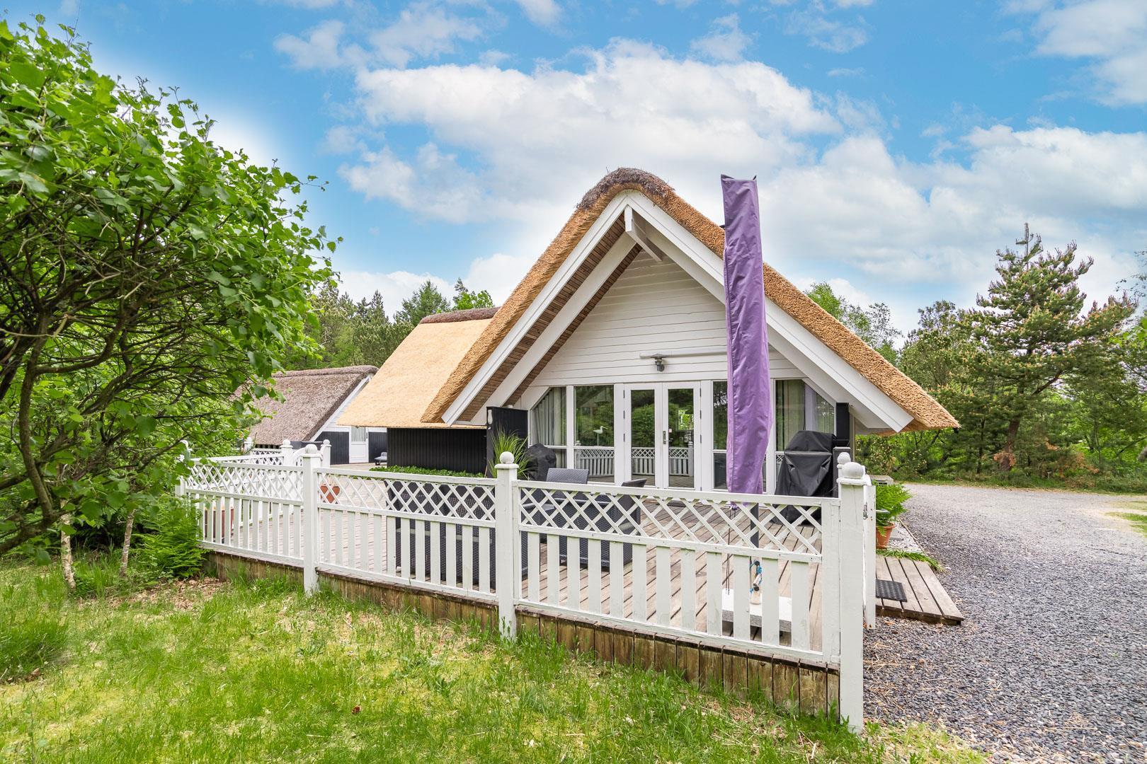 Huset er opført med stråtag og har en autentisk og hyggelig atmosfære kombineret med komfort. Her får du en skøn base for ferien, uanset årstid.