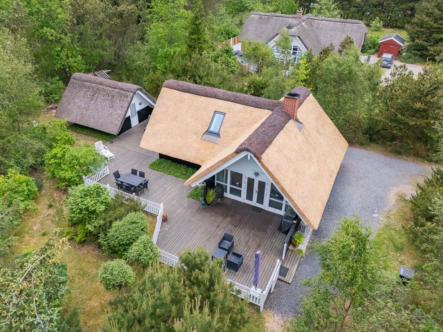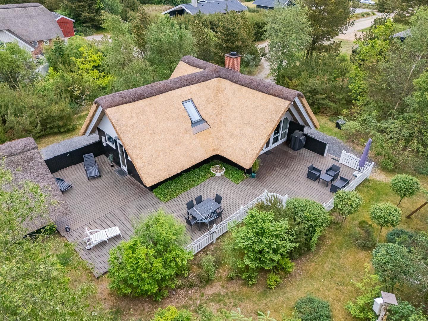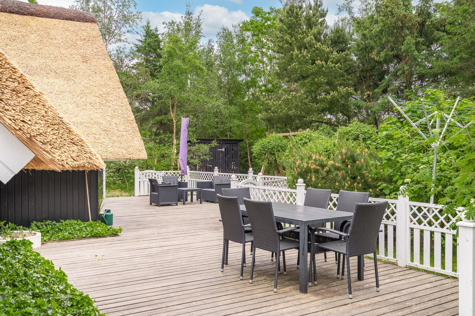 Huset er opført med stråtag og har en autentisk og hyggelig atmosfære kombineret med komfort. Her får du en skøn base for ferien, uanset årstid.