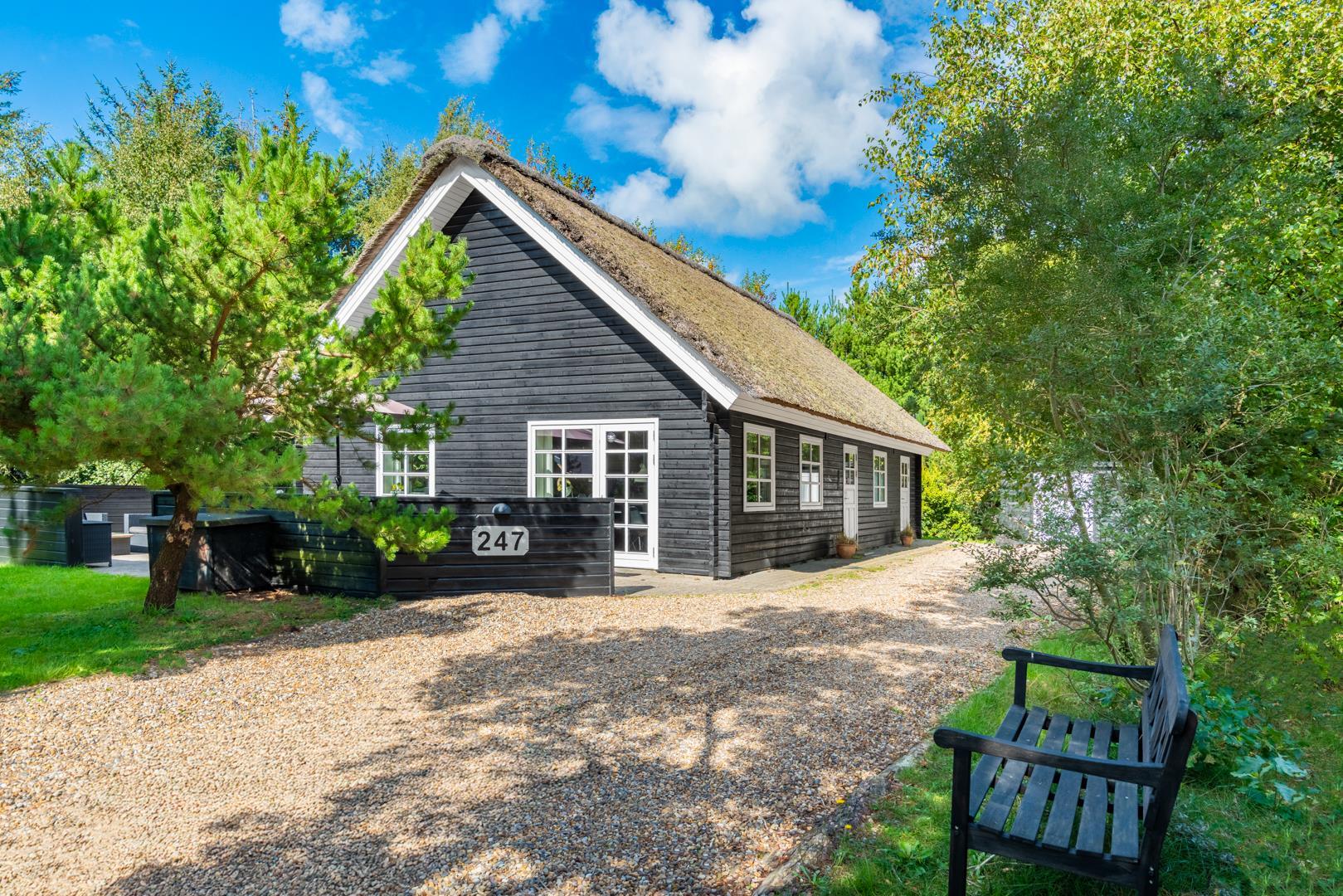 Bjælkehus med trægulve overalt beliggende på dejlig velbeplantet grund i rolige omgivelser på Nørrevang 247 i Houstrup. Huset er velholdt og med høj standard - der forefindes 3 soverum - 1 værelse med enkelt senge og 2 værelser med dobbelt senge. Et værelse har desuden TV.