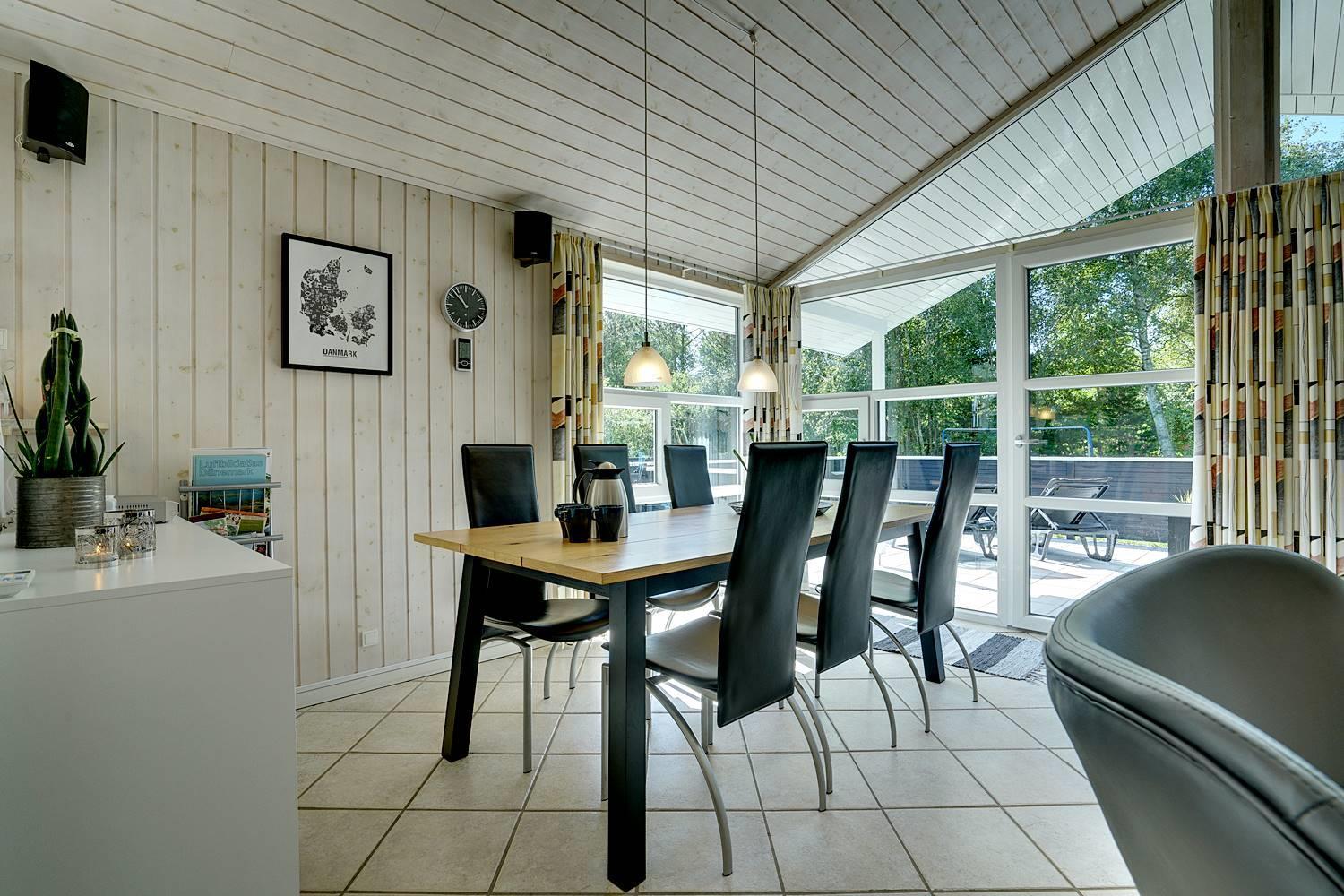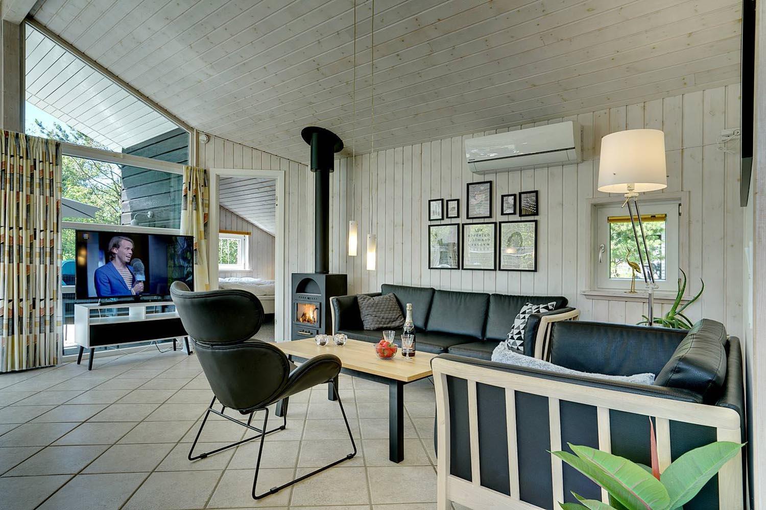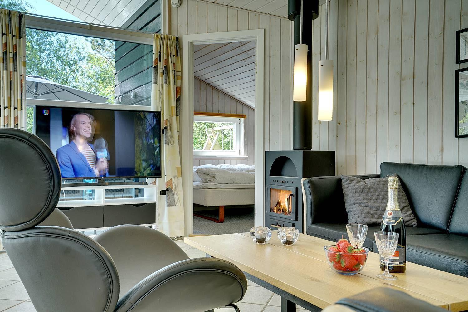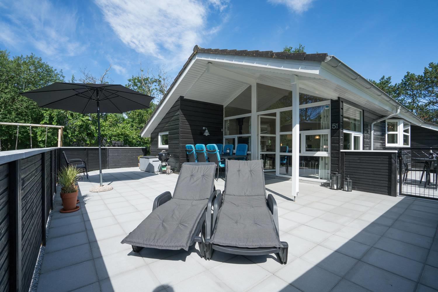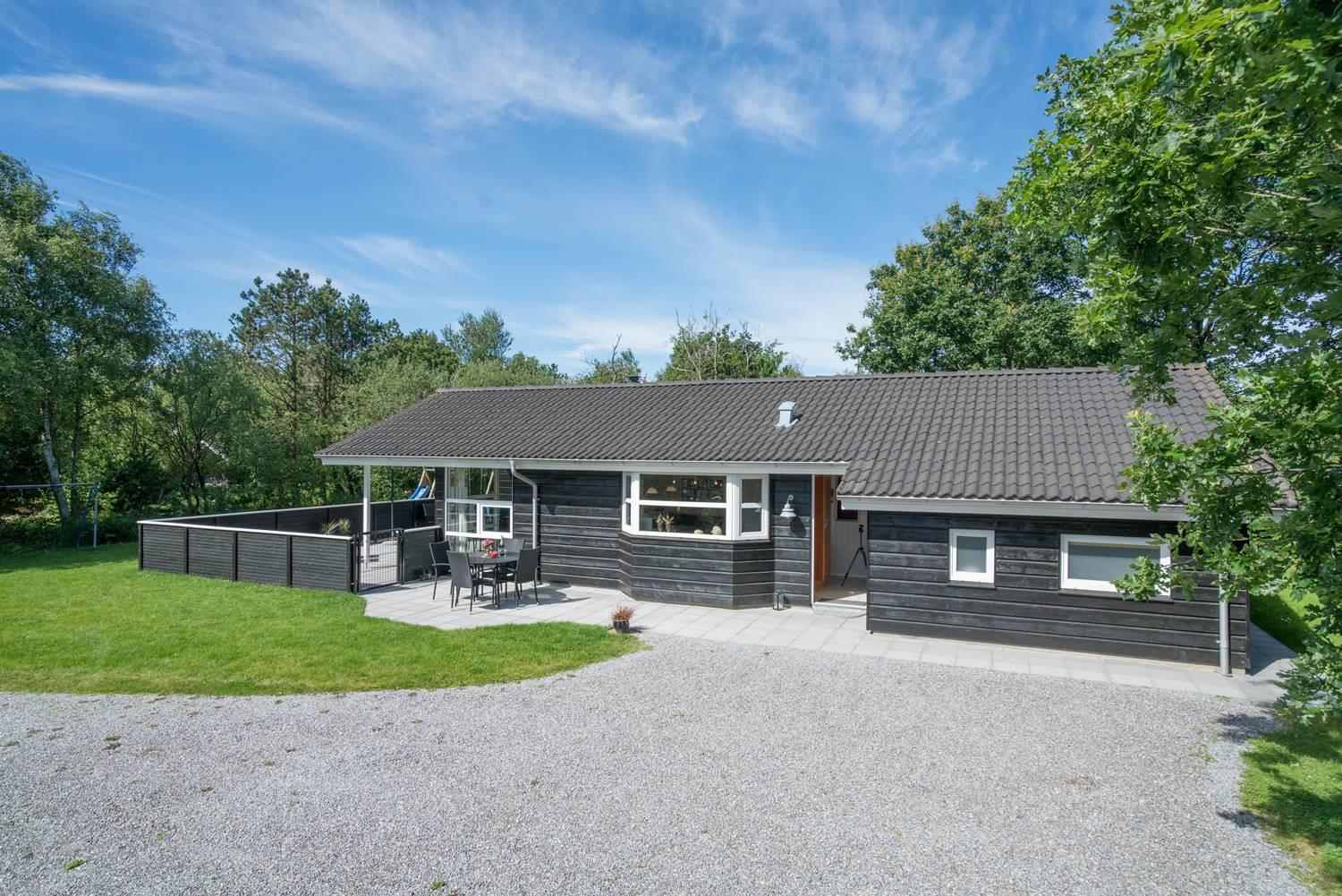 På en velbeplantet grund, med højt til himlen, finder I dette dejlige feriehus på Vestervang 51. Der er med helt lukket terrasse styr på børn og hunde - desuden er der fliser omkring hele huset, så du kan gå tørskoet. Huset er personligt og velholdt med hyggelig indretning og giver mulighed for plads til 6 personer. Her er 3 soverum, hvoraf 2 har dobbeltseng og et soverum har TV. Det sidste soverum er indrettet med enkelt senge. Her findes 2 badeværelser - det ene byder på spa og sauna, som har mange positive virkninger. Et hyggeligt køkken med mikroovn, opvaskemaskine og fryser på 60 liter, er med til at skabe rum for hele familien. Spiseplads og stue med smart -tv, skaber rum for dejligt samvær - her er både brændeovn og varmepumpe som er medvirkende til en billigere strøm regning.