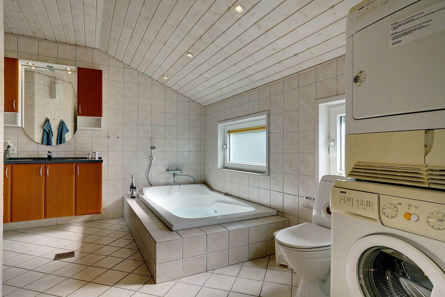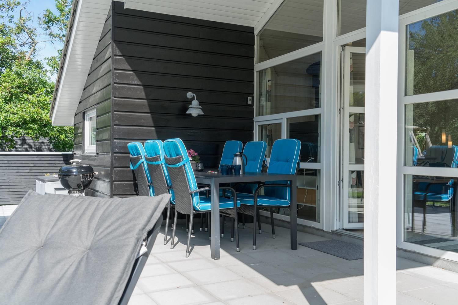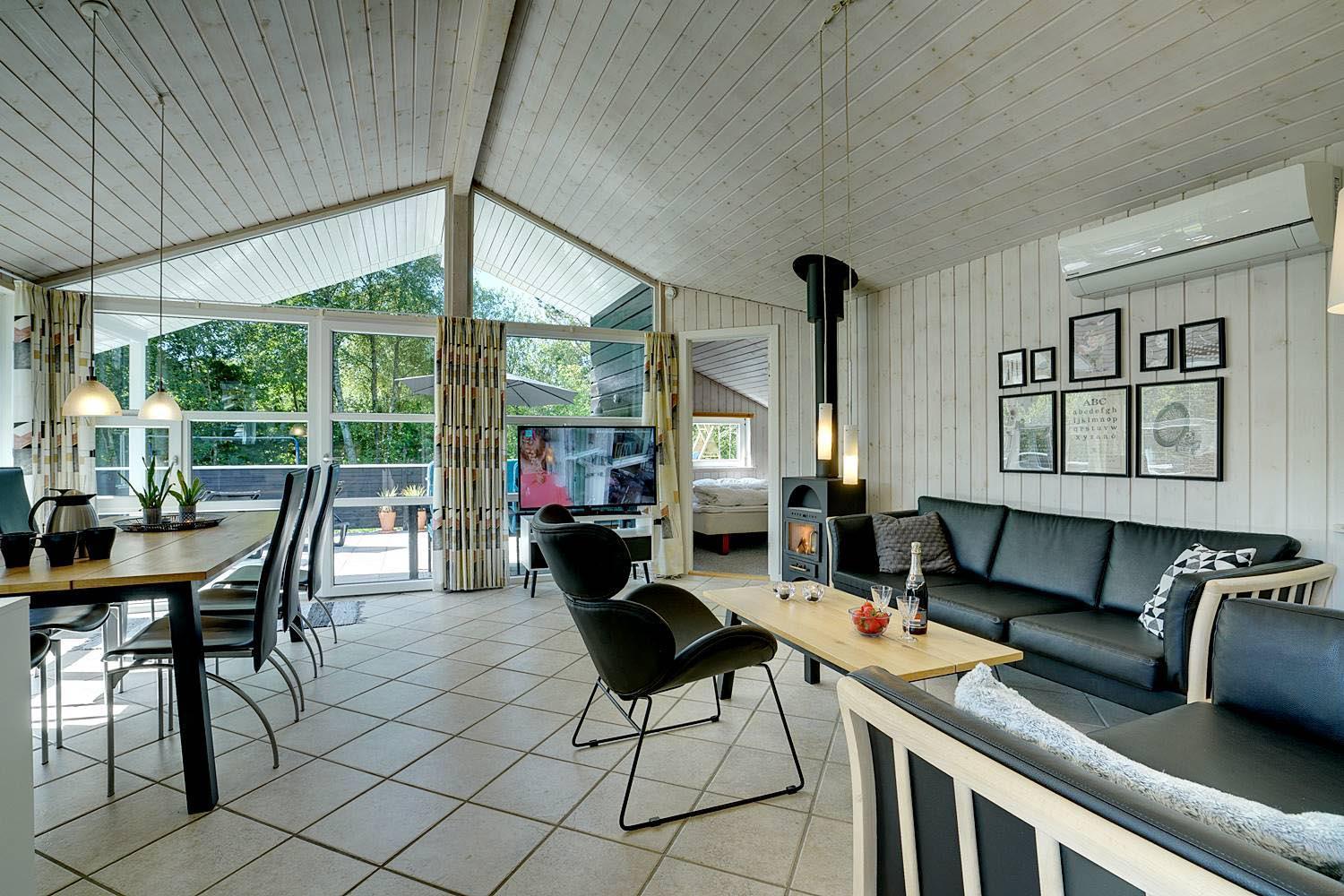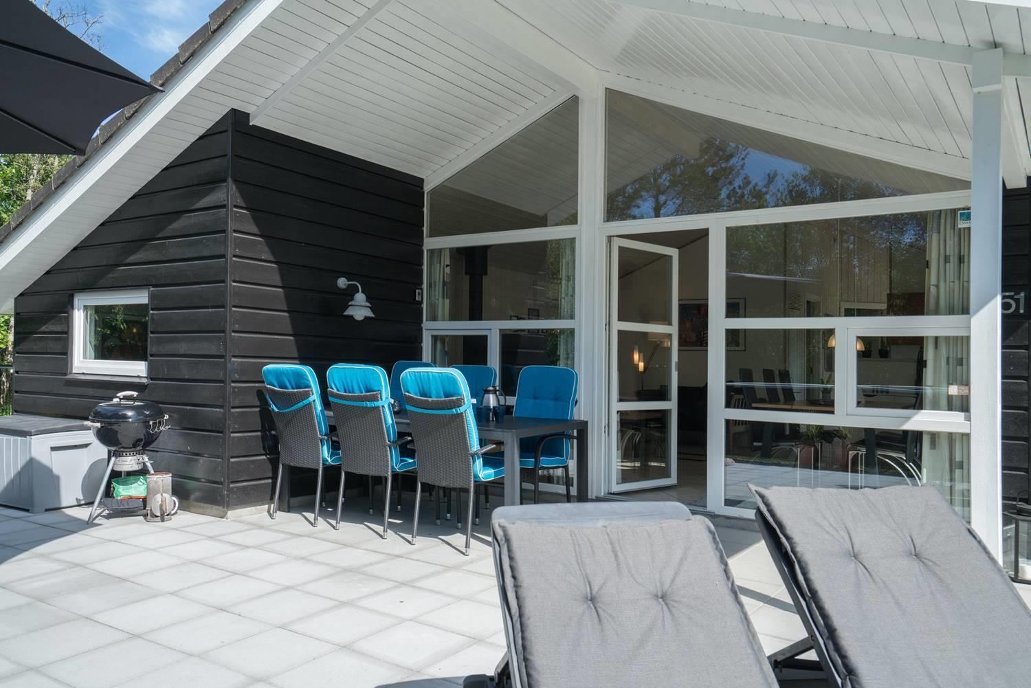 På en velbeplantet grund, med højt til himlen, finder I dette dejlige feriehus på Vestervang 51. Der er med helt lukket terrasse styr på børn og hunde - desuden er der fliser omkring hele huset, så du kan gå tørskoet. Huset er personligt og velholdt med hyggelig indretning og giver mulighed for plads til 6 personer. Her er 3 soverum, hvoraf 2 har dobbeltseng og et soverum har TV. Det sidste soverum er indrettet med enkelt senge. Her findes 2 badeværelser - det ene byder på spa og sauna, som har mange positive virkninger. Et hyggeligt køkken med mikroovn, opvaskemaskine og fryser på 60 liter, er med til at skabe rum for hele familien. Spiseplads og stue med smart -tv, skaber rum for dejligt samvær - her er både brændeovn og varmepumpe som er medvirkende til en billigere strøm regning.
