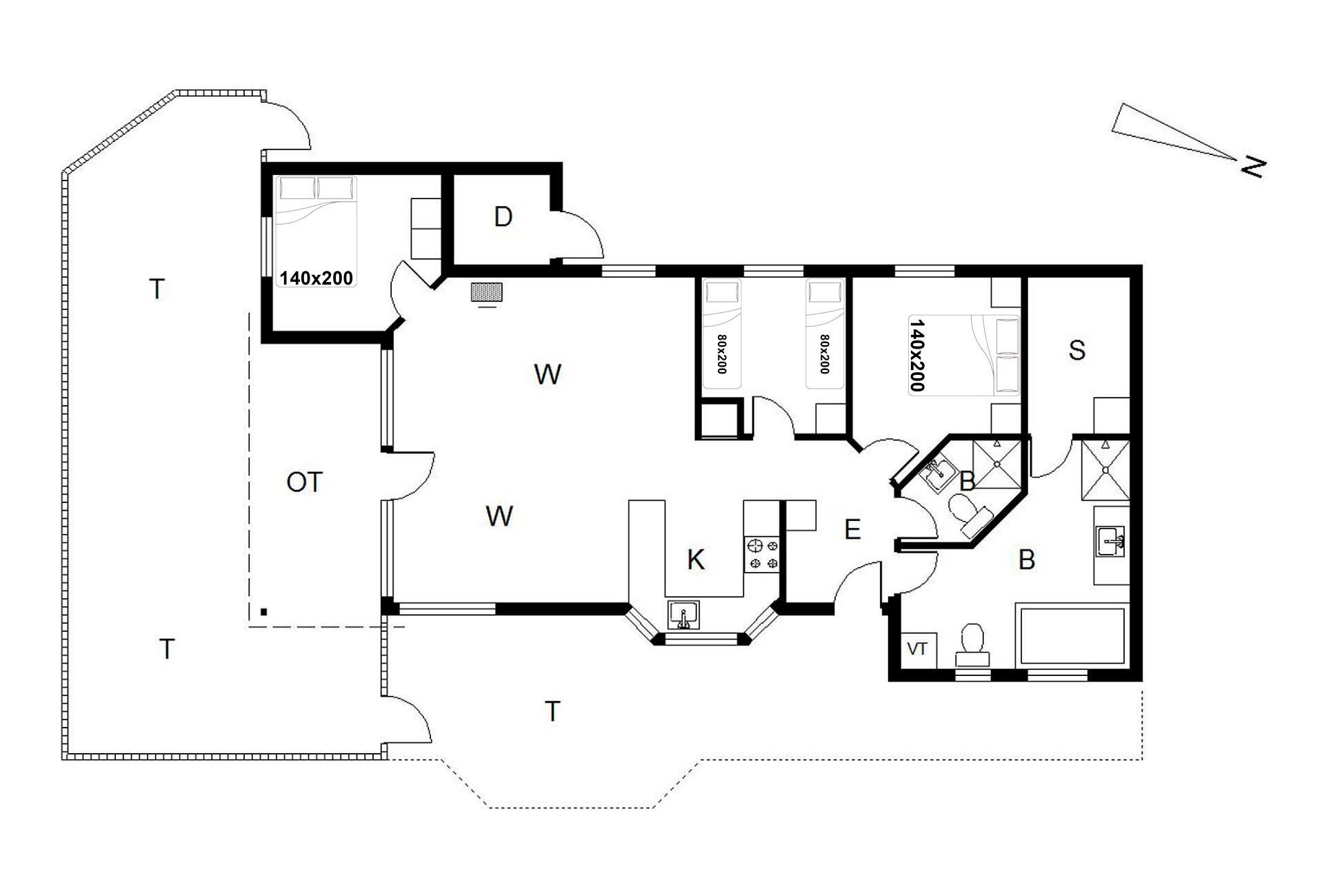 Sengestørrelse: 2 dobbeltsenge 140 x 200 cm + 2 enkeltsenge 80 x 200 cm.