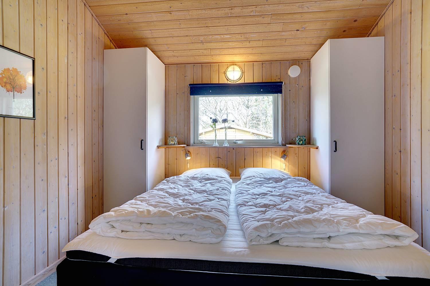 Vil du bo på ugeneret grund i et feriehus beliggende helt tilbagetrukket fra vejen, og i charmerende omgivelser med højt til himlen, så kast et blik på dette feriehus på Søndervang 74. Der er flere terrasser, en del overdækket og med altid mulighed for at finde læ og sol. Helt lukket terrasse, så der er styr på børn og hunden. Huset rummer plads til 6 personer, fordelt på 3 soverum, hvoraf 2 er med dobbeltseng (1 seng 1,60 bred). Nyere køkken med opvaskemaskine og mikroovn. Hyggelig stue og spiseplads med loft til kip. Nedsænket tv-stue, hvor alle kan nyde at slappe af. Både brændeovn og varmepumpe til de kølige dage. Nyere badeværelse med gulvvarme og vaskemaskine. Fryser findes i skuret.