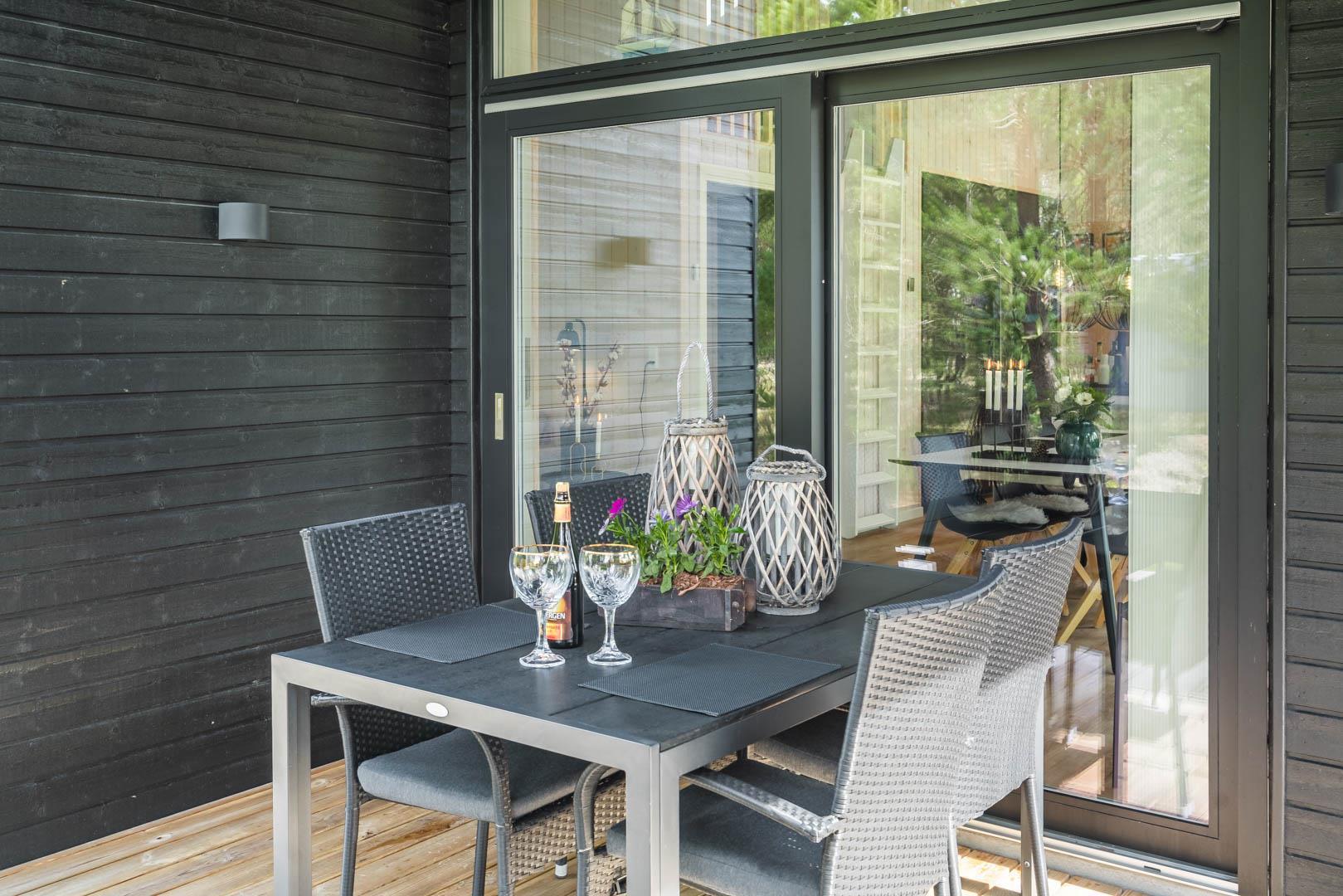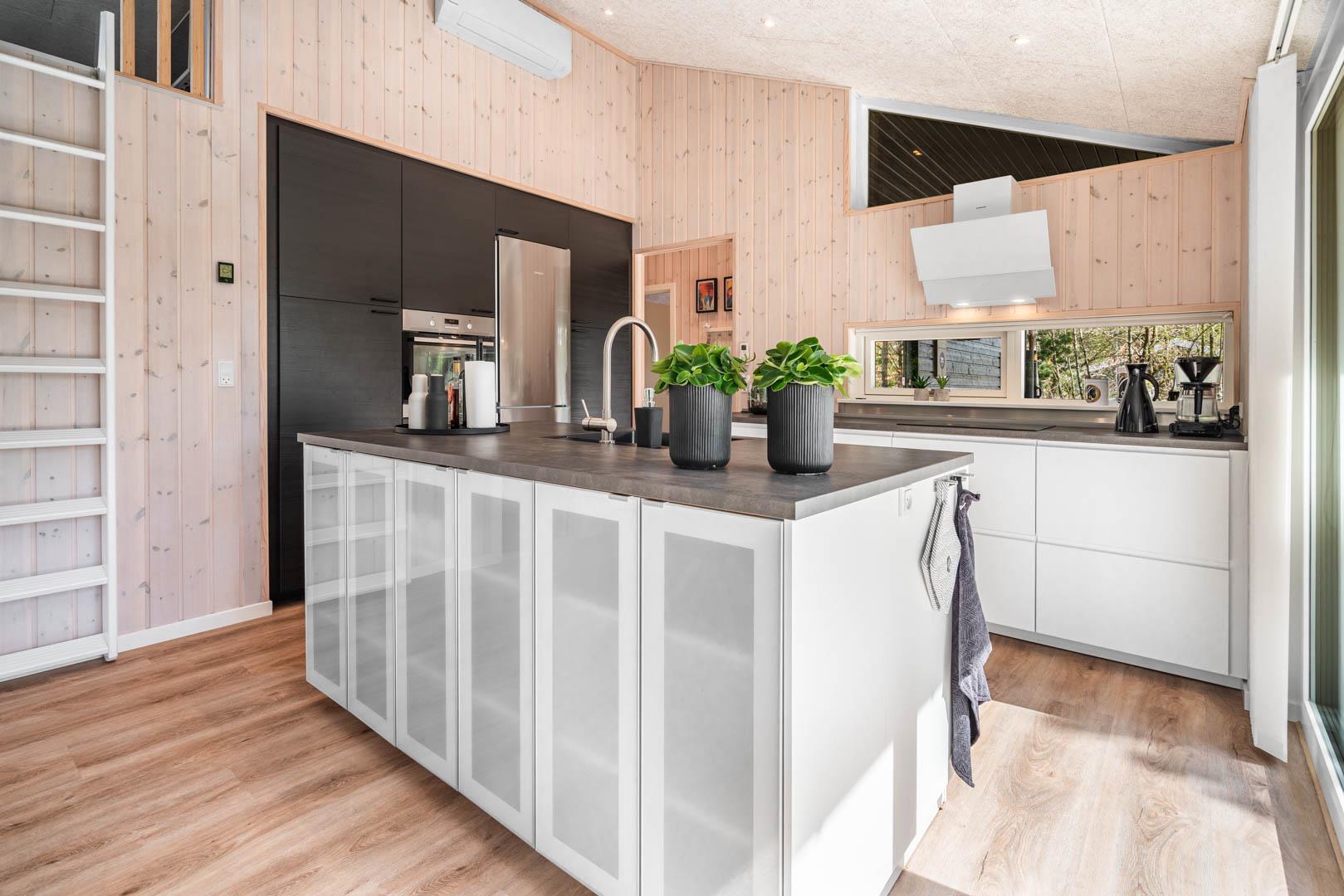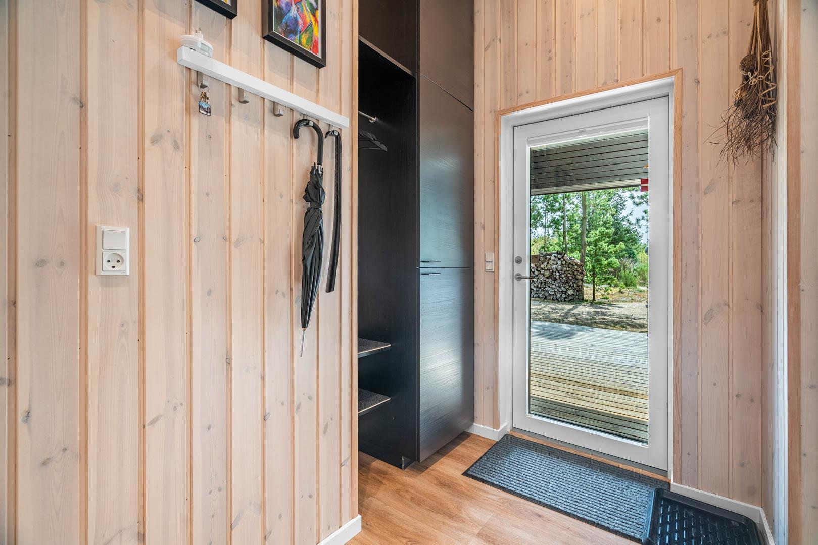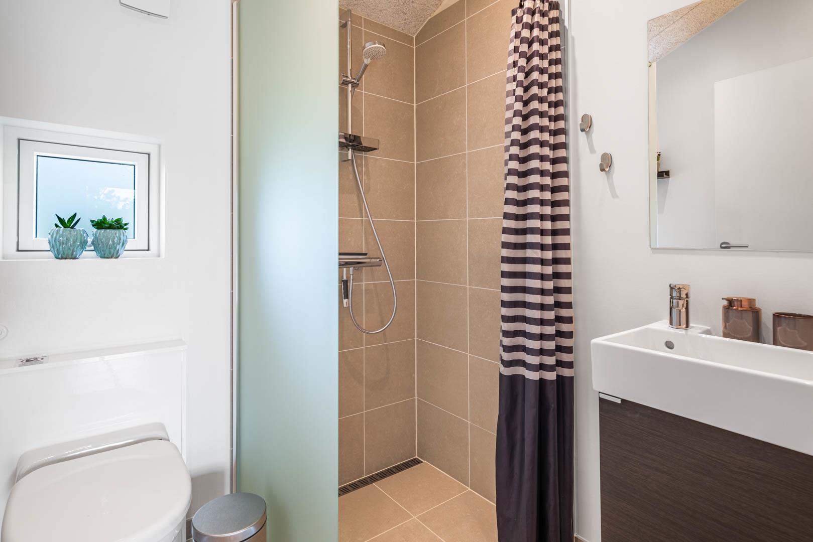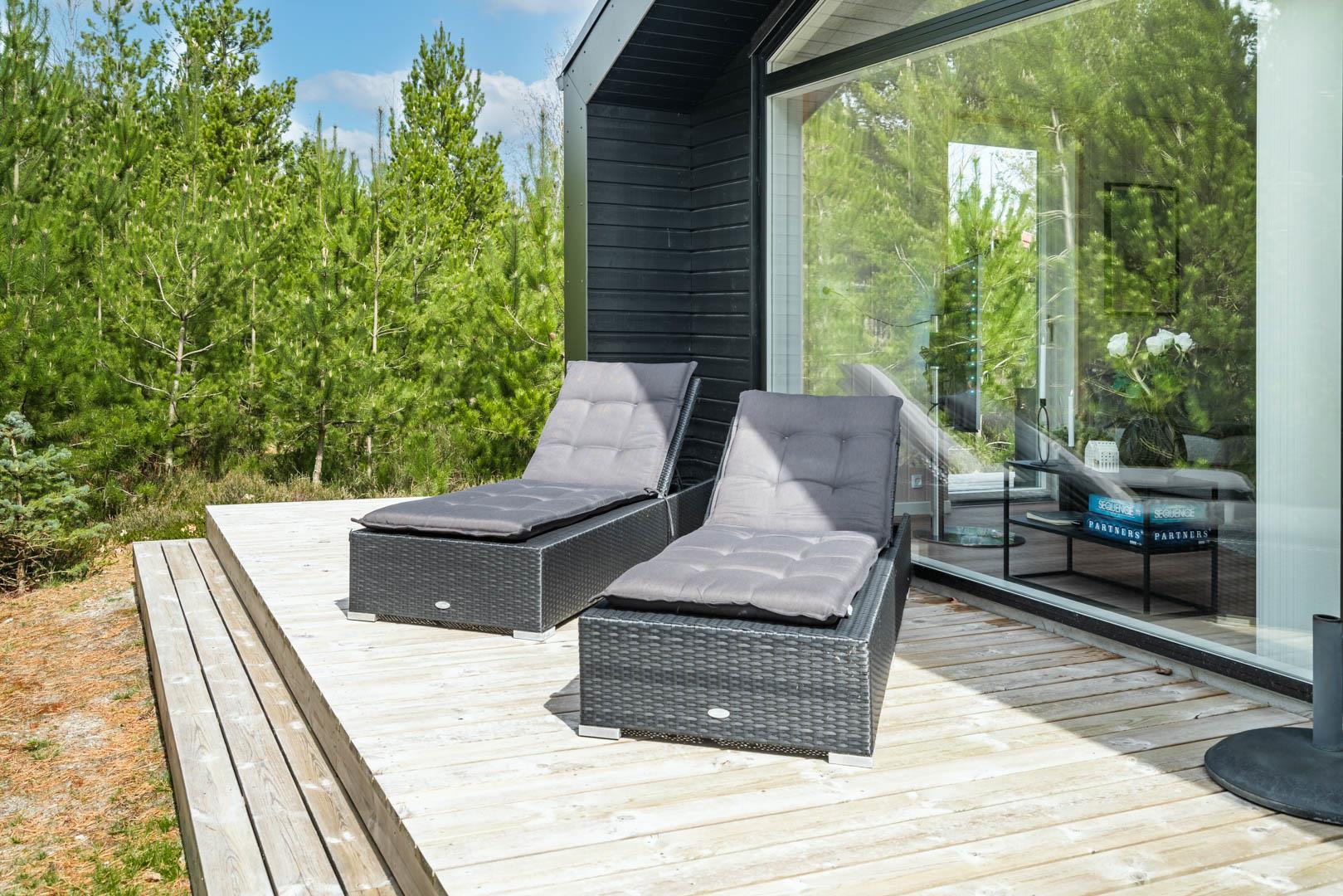 I vil føle jer godt tilpas i de bekvemmelige omgivelser med køkken og spiseplads i åbent forbindelse til stue med brændeovn og varmepumpe. Stort badeværelse med badekar i forbindelse med det ene værelse og ekstra toilet med brus. Huset er omgivet af dejlig stor træterrasse, hvor en del er overdækket, hvor I kan nyde ferien.