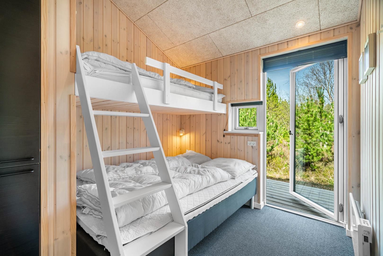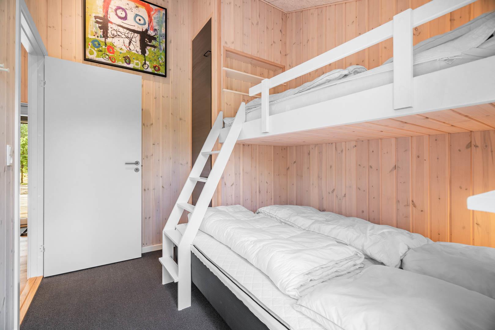 Sengestørrelse: 1 dobbeltseng 180 x 200 cm + 1 dobbeltseng 160 x 200 cm + 1 køjeseng, hvor overkøjen er 90 x 200 cm og underkøjen 140 x 200 cm.