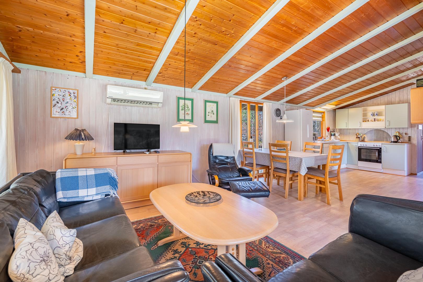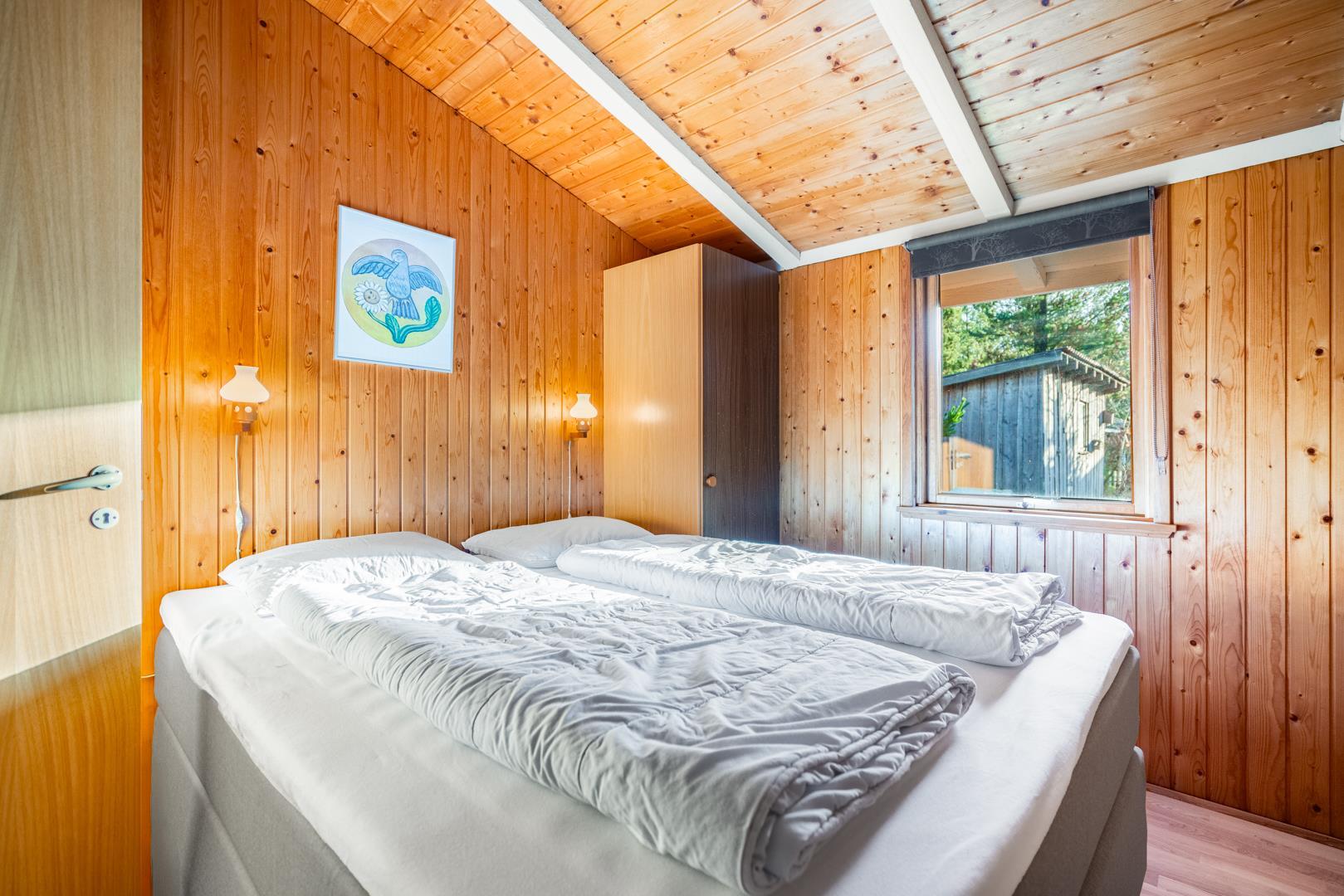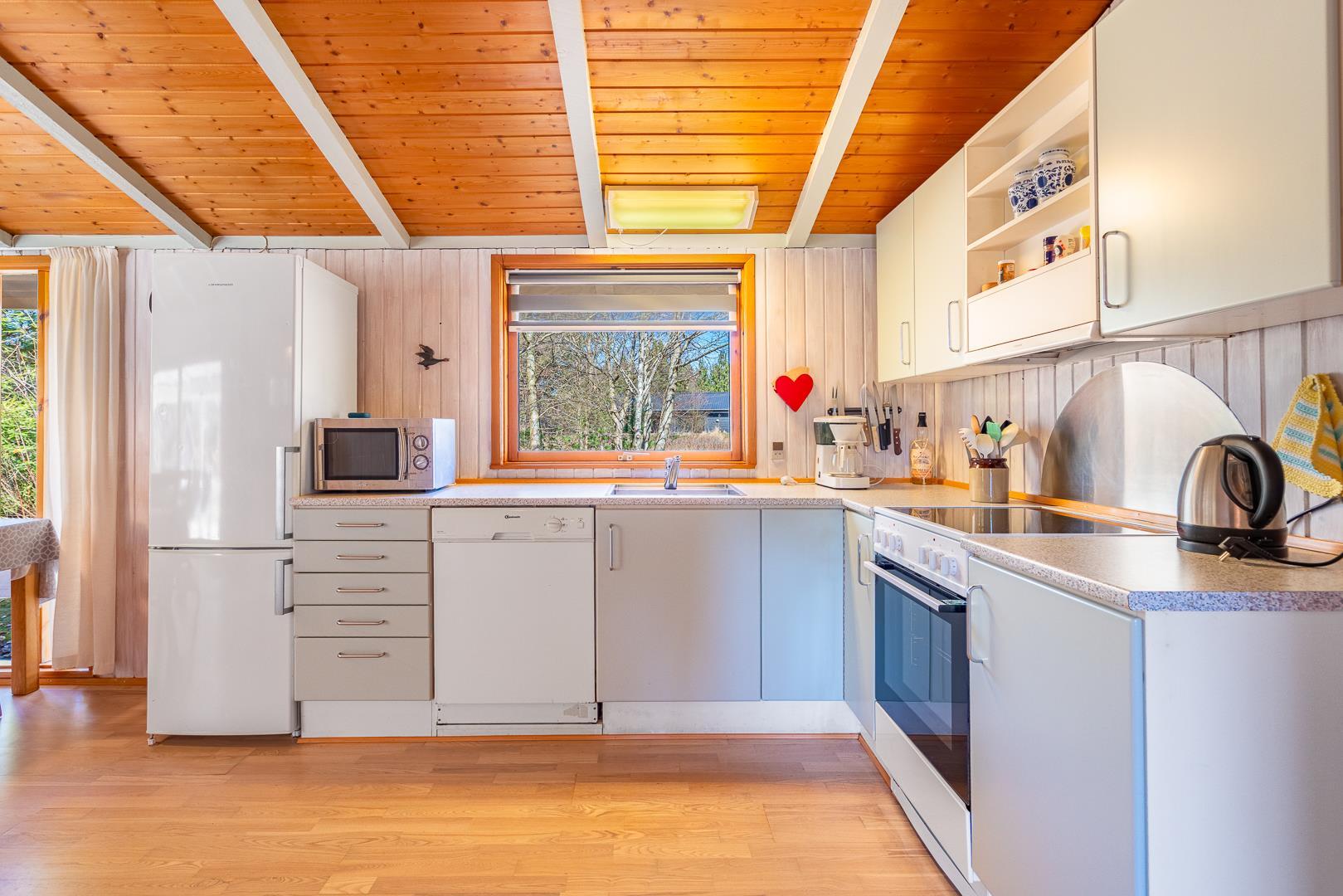 På en grund omkranset af skovens træer, ligger dette feriehus helt ugeneret på Kirkeflod 27. Huset er personligt og velholdt. Åbent nyere køkken med opvaskemaskine og mikroovn. Der findes yderligere stor fryser i skuret. Stue med tv (danske og tyske kanaler) samt brændeovn, der skaber varmen og hyggen. Huset har plads til 6 personer, fordelt på 2 soverum. Et soverum har udover dobbeltseng også køjer (tilegnet børn). Nyt moderne og rummeligt badeværelse (2024) med gulvvarme - et kombineret vaskemaskine/tørretumbler er til rådighed.