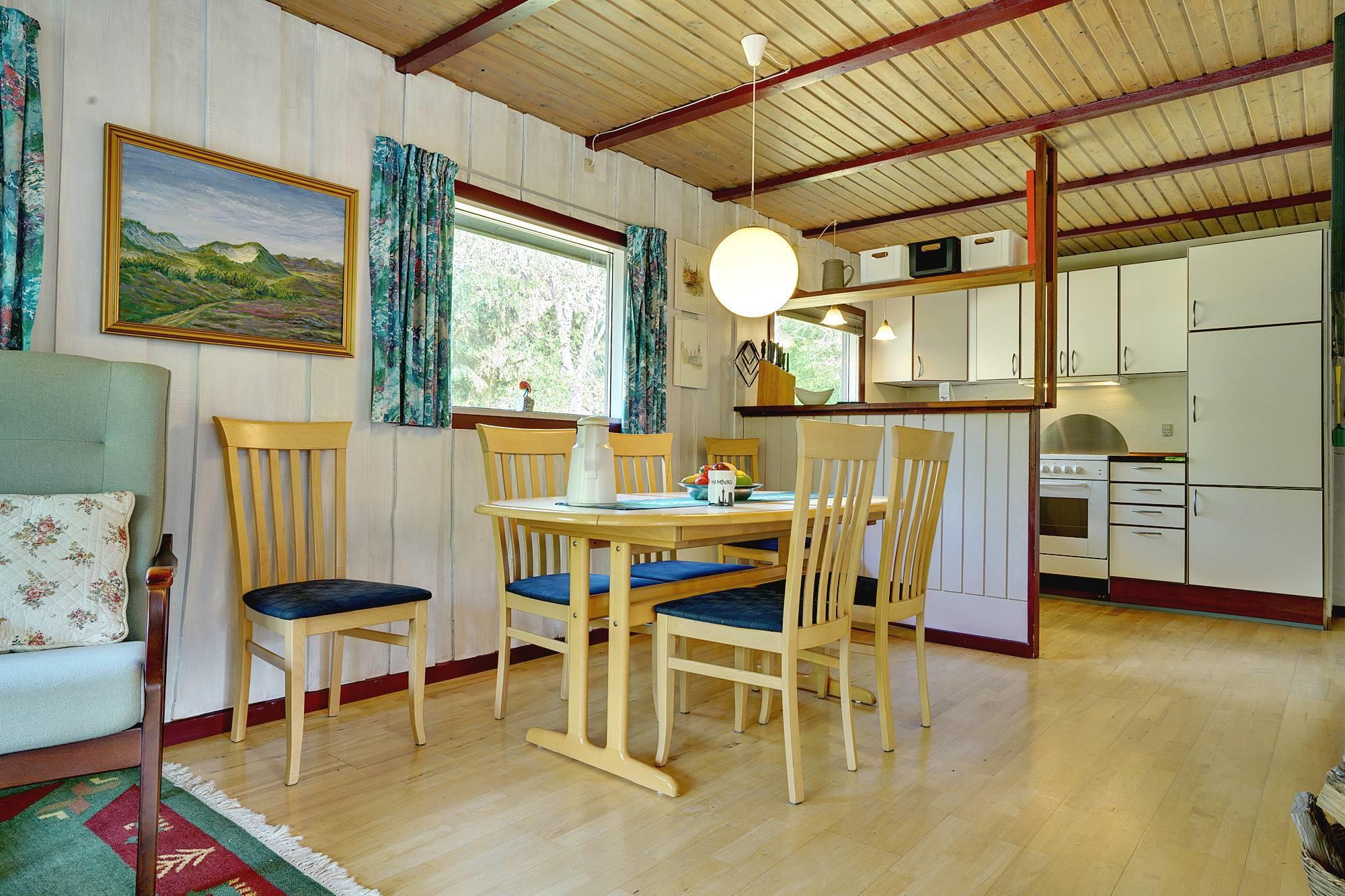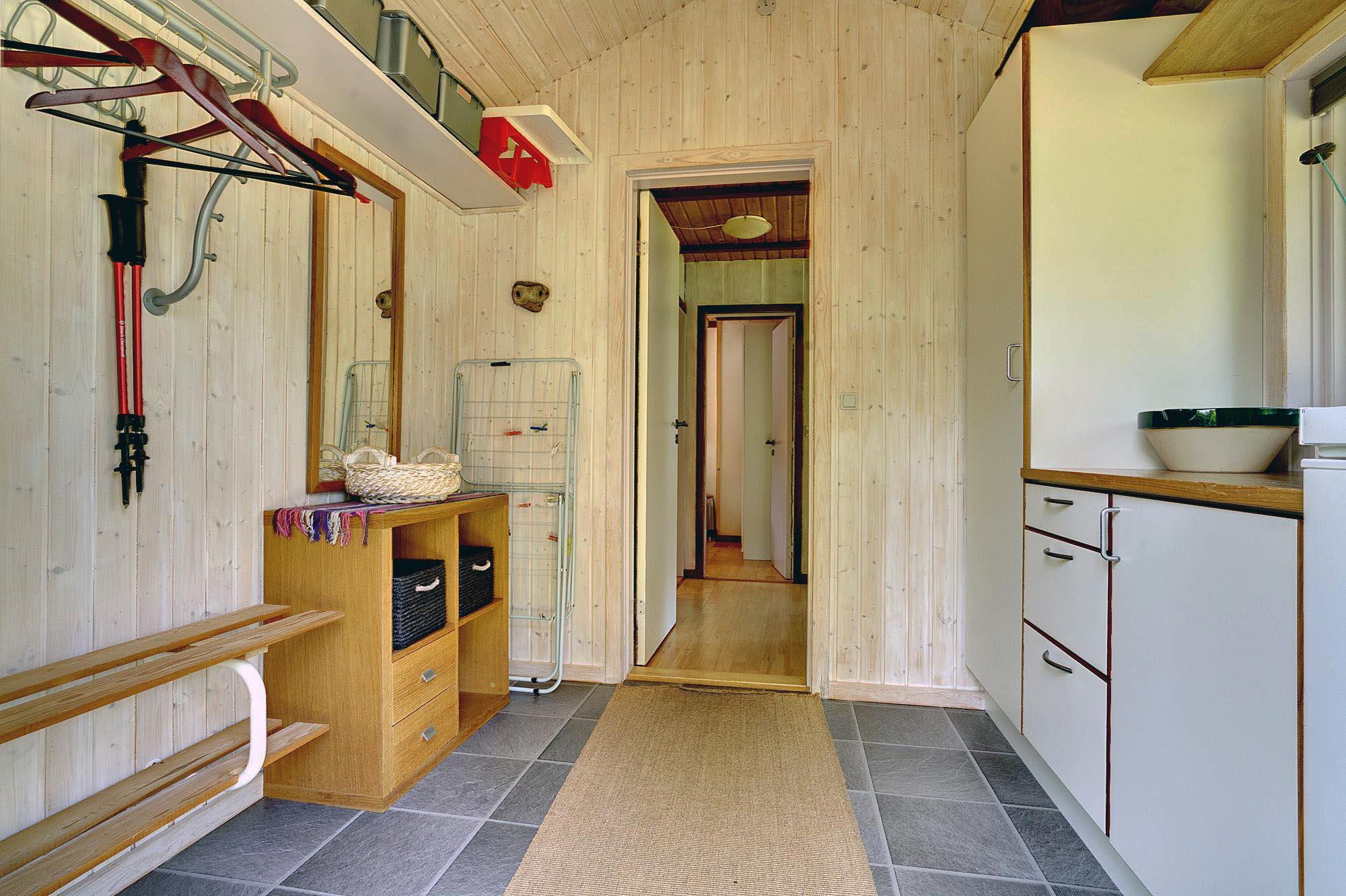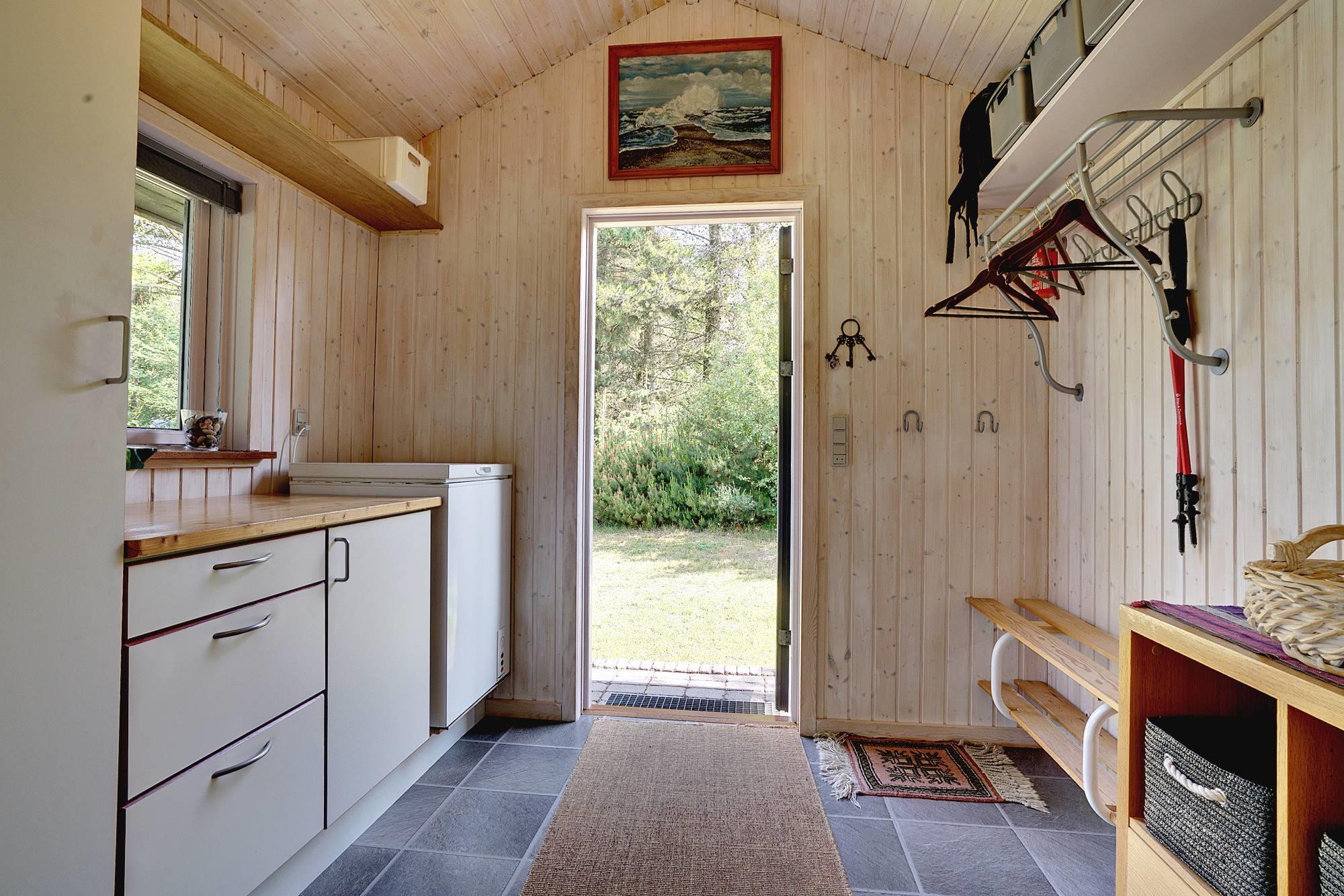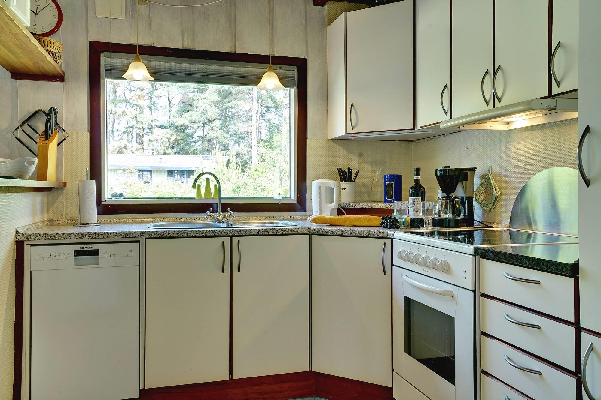 Sommerhuset har en funktionel og gennemtænkt indretning. Det lyse køkken er veludstyret og ideelt til fælles madlavning. Badeværelset med bruseniche og klinkegulv.