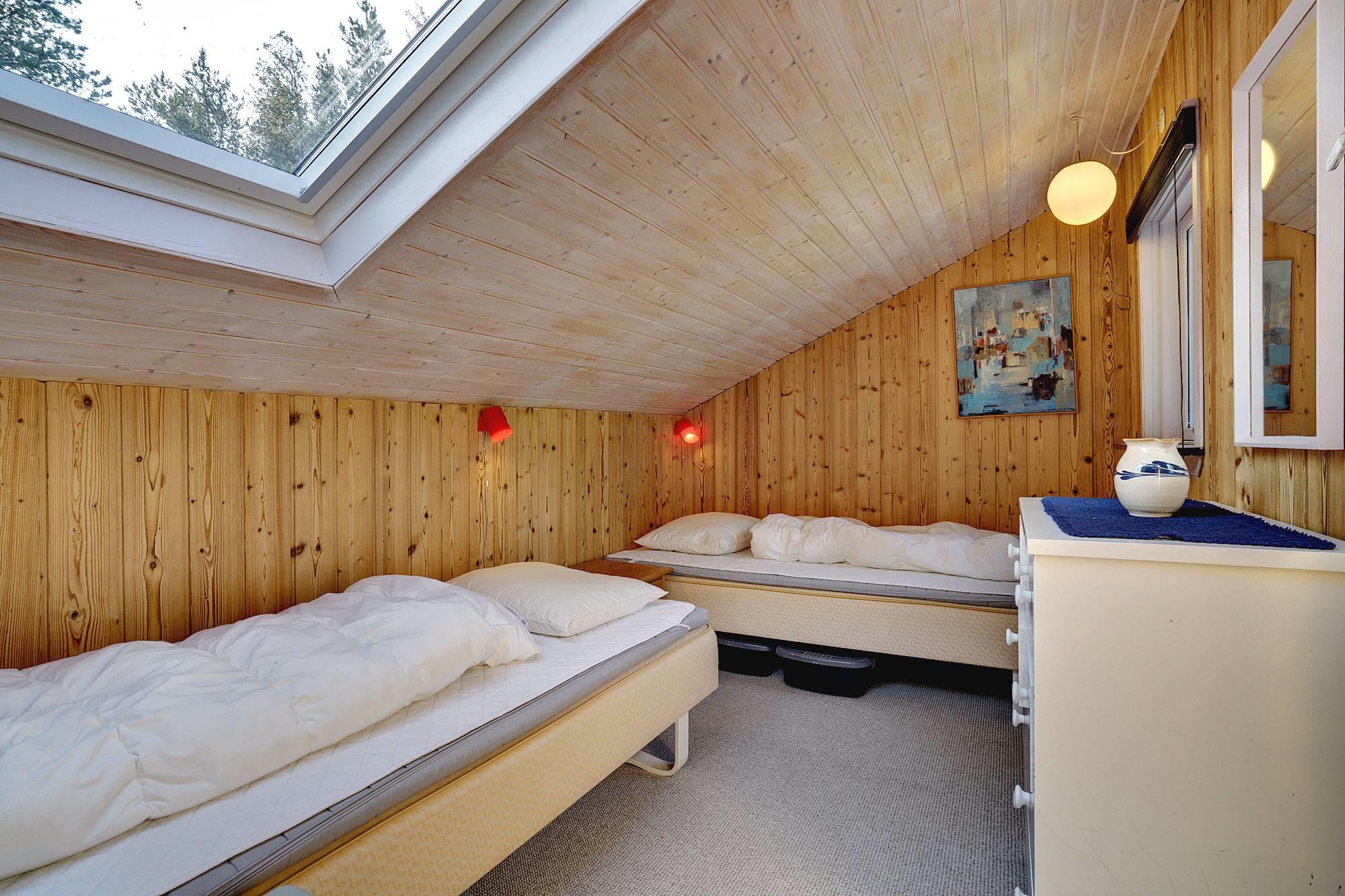 Sengestørrelse: 1 dobbeltseng med 2 madrasser 80 x 200 cm + 2 enkeltsenge 90 x 200 cm + 1 køjeseng 70 x 190 + 80 x 190 cm.