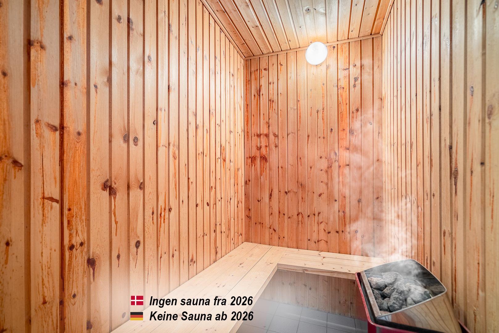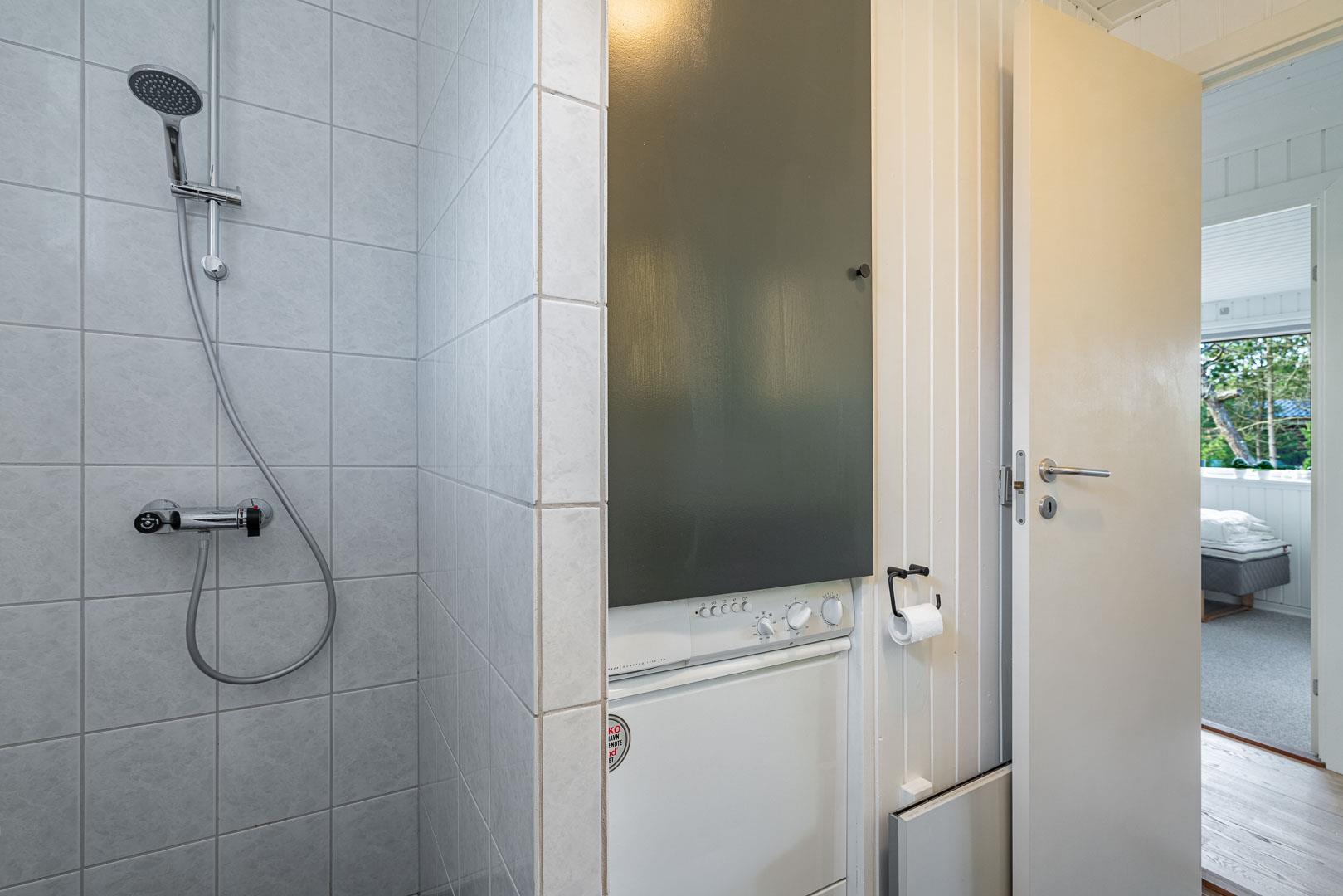 Badeværelset er moderne og lyst, med bruseniche, vindue og egen sauna – et skønt ekstra pusterum, især i de kølige måneder. En vaskemaskine gør huset oplagt til længere ophold eller ferie med børn og hund.