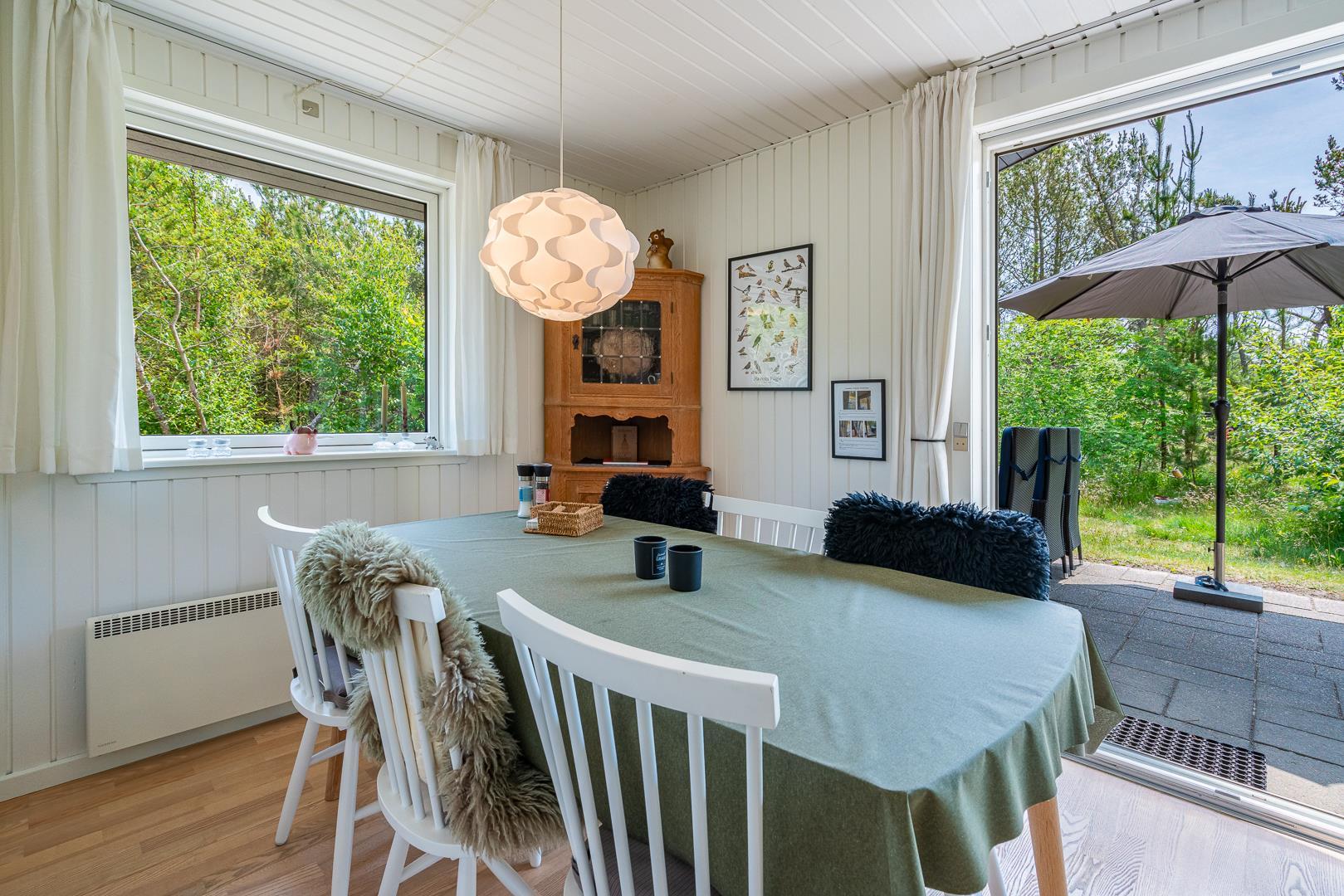 Det åbne køkken er funktionelt og veludstyret med blandt andet opvaskemaskine, keramisk komfur, ovn og kaffemaskine – så ferien føles nem og afslappet. Ved spisebordet kan I samles til måltider, kortspil og hyggelige aftener.
