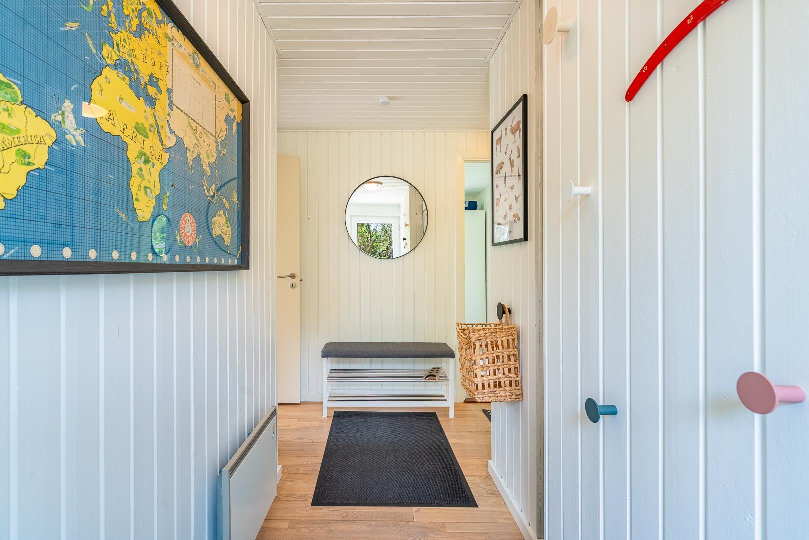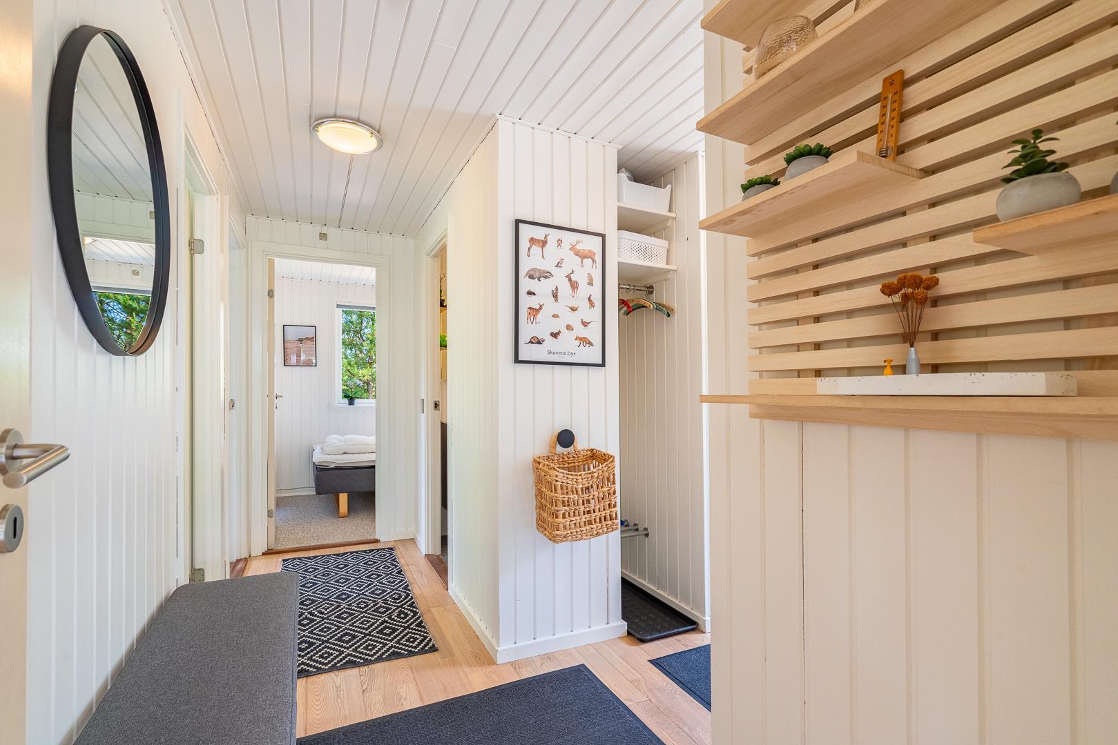 Indenfor byder sommerhuset på en indbydende atmosfære, hvor klassisk dansk hygge møder praktisk komfort – ideelt til familier, par eller venner, der sætter pris på ro og gennemtænkt indretning.